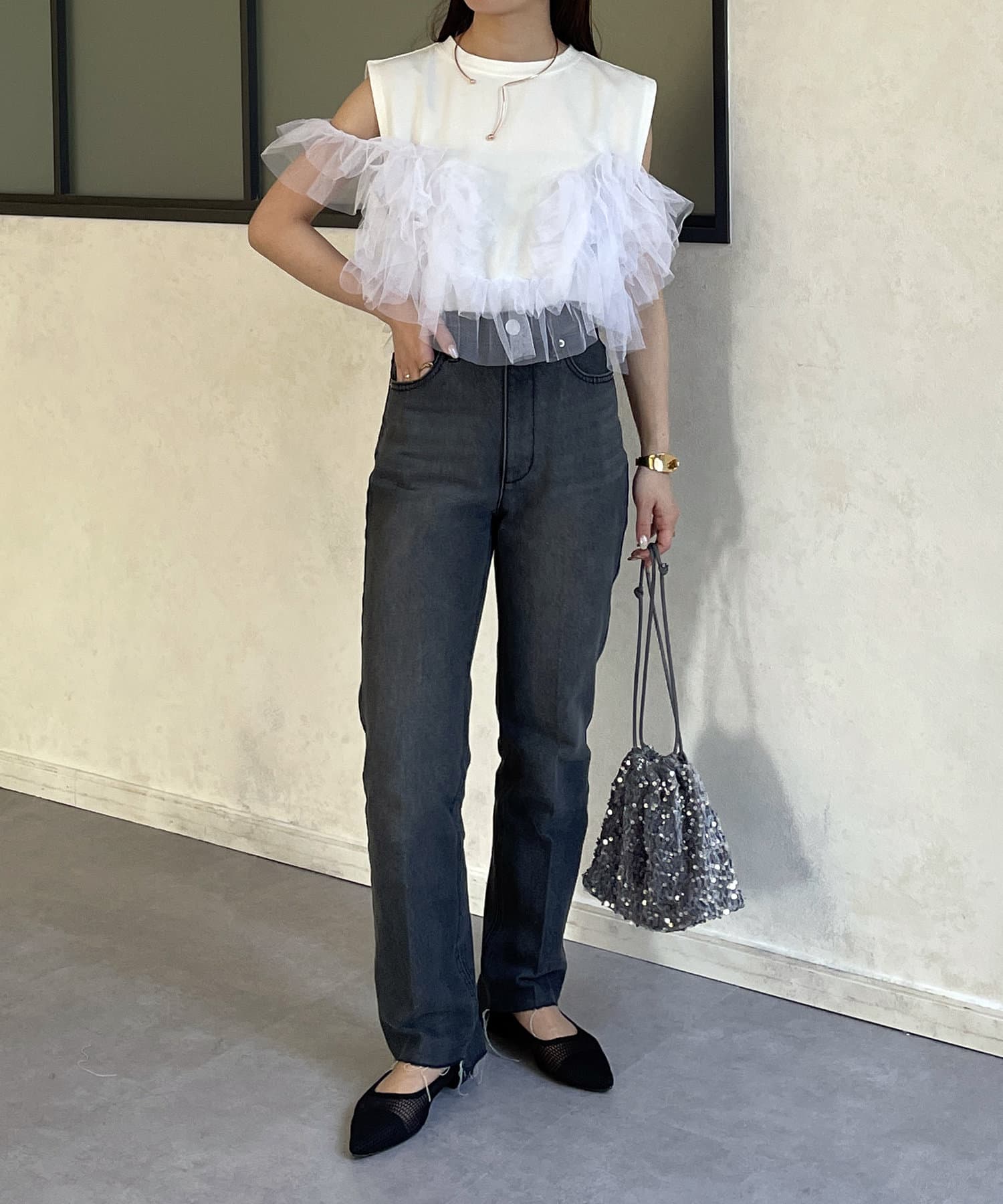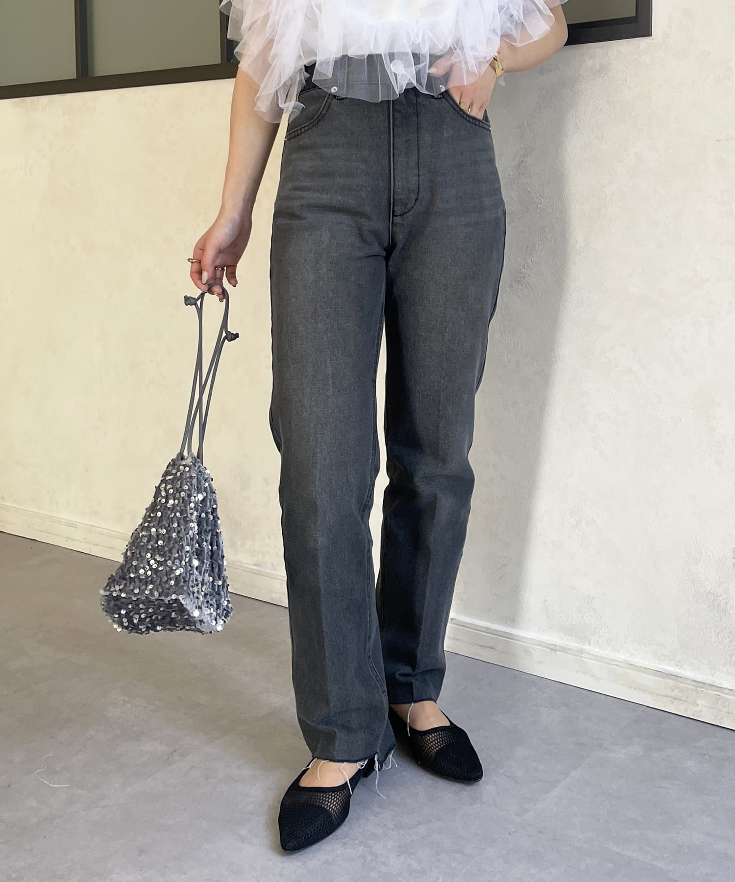 TOP > Thevon. > レディース > パンツ > その他パンツ > 【2サイズ展開】裾段差スリットセンタープレスデニム