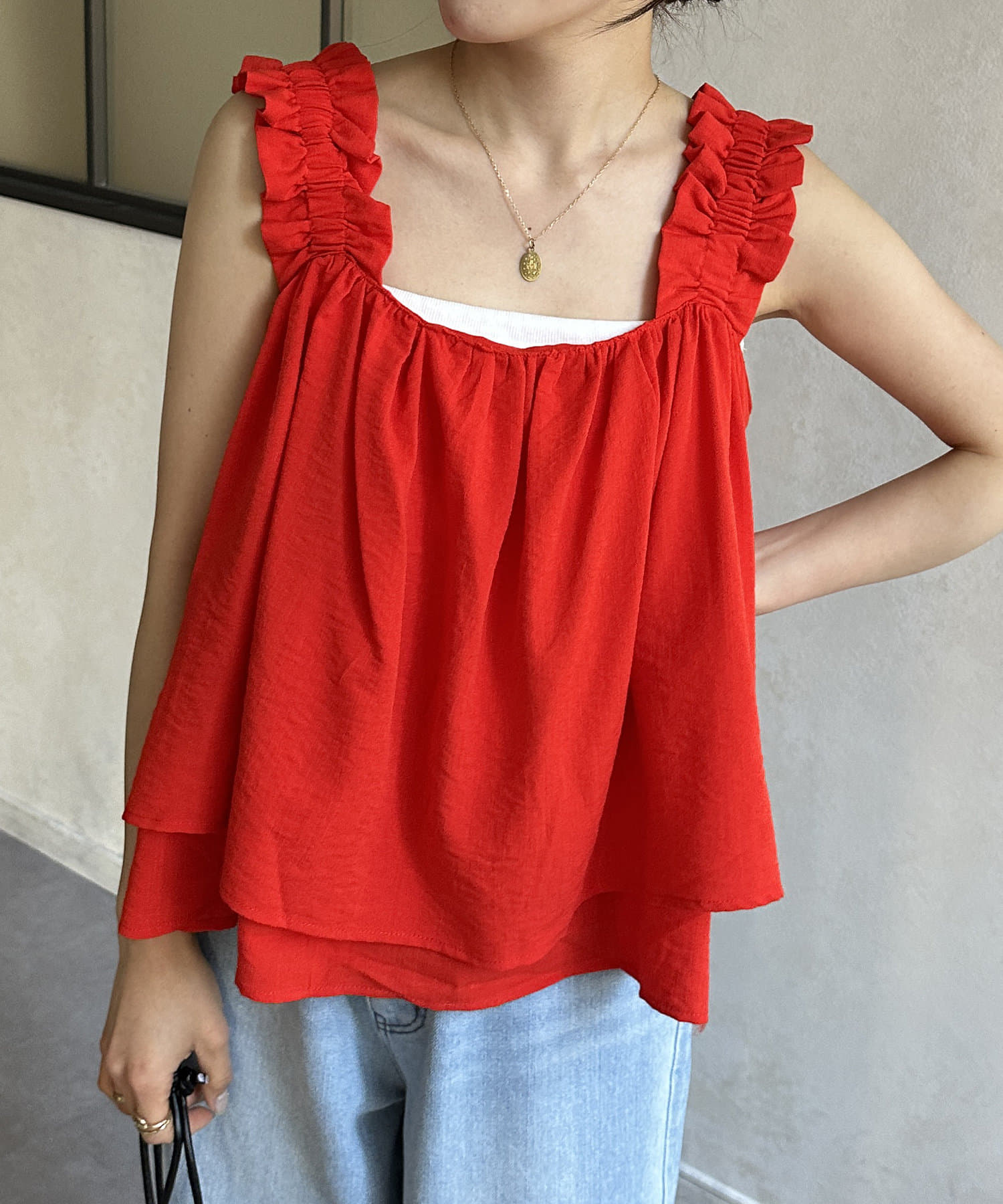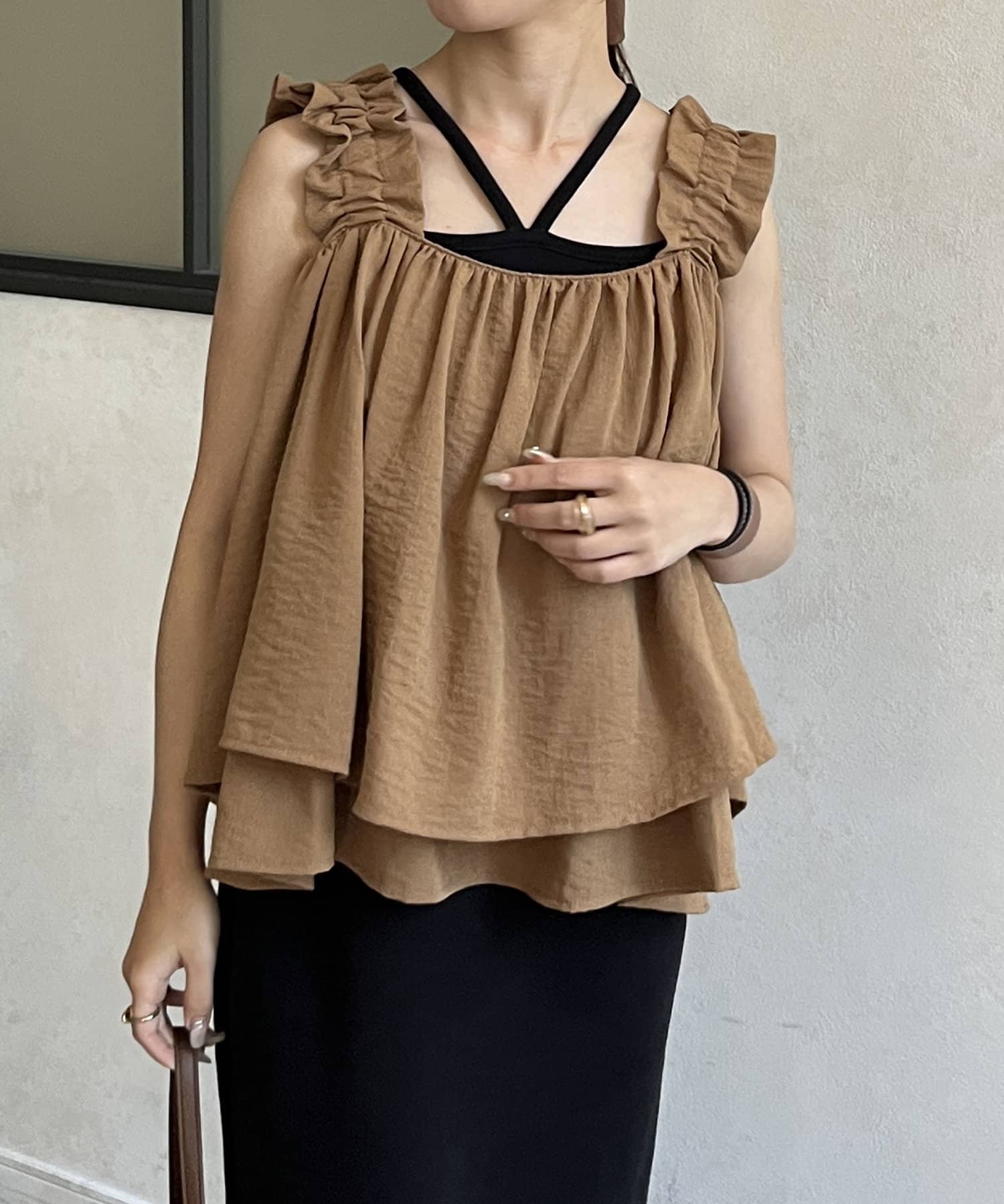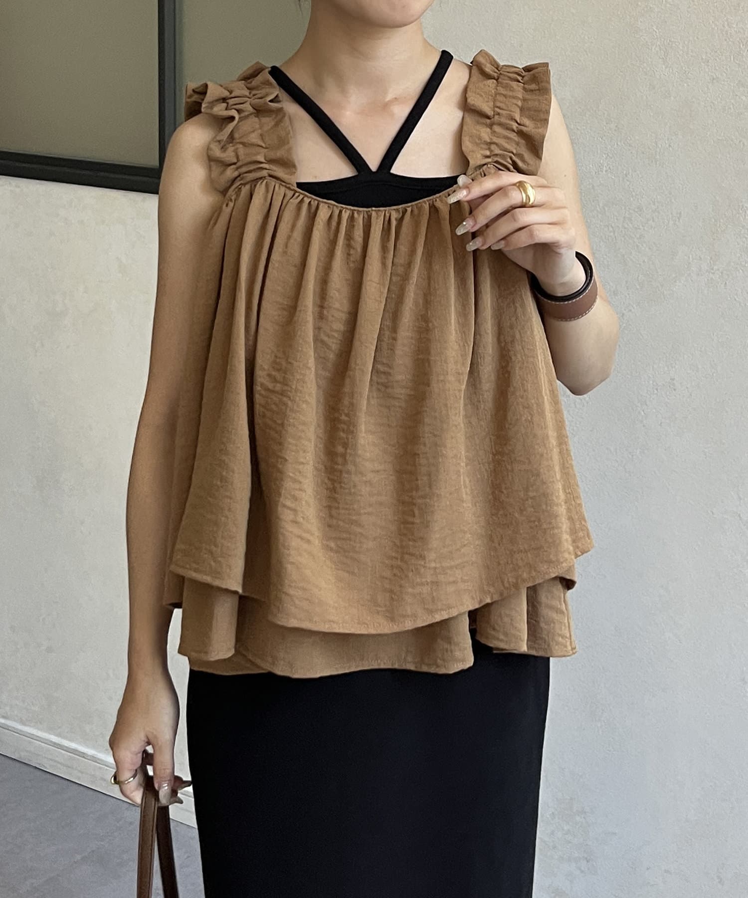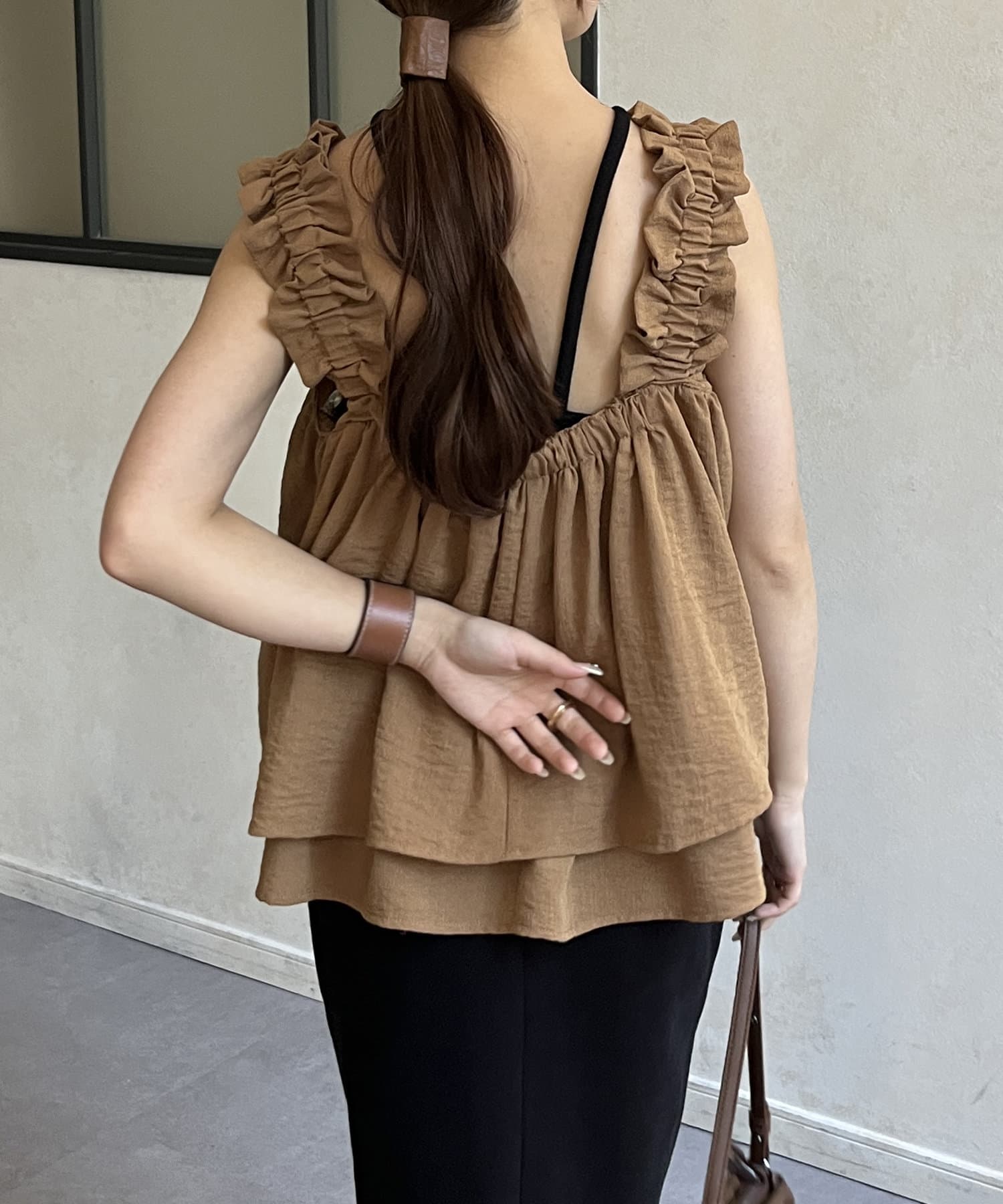 ・胸元と背中が開いているデザインのキャミなので、中にインナーキャミソールを