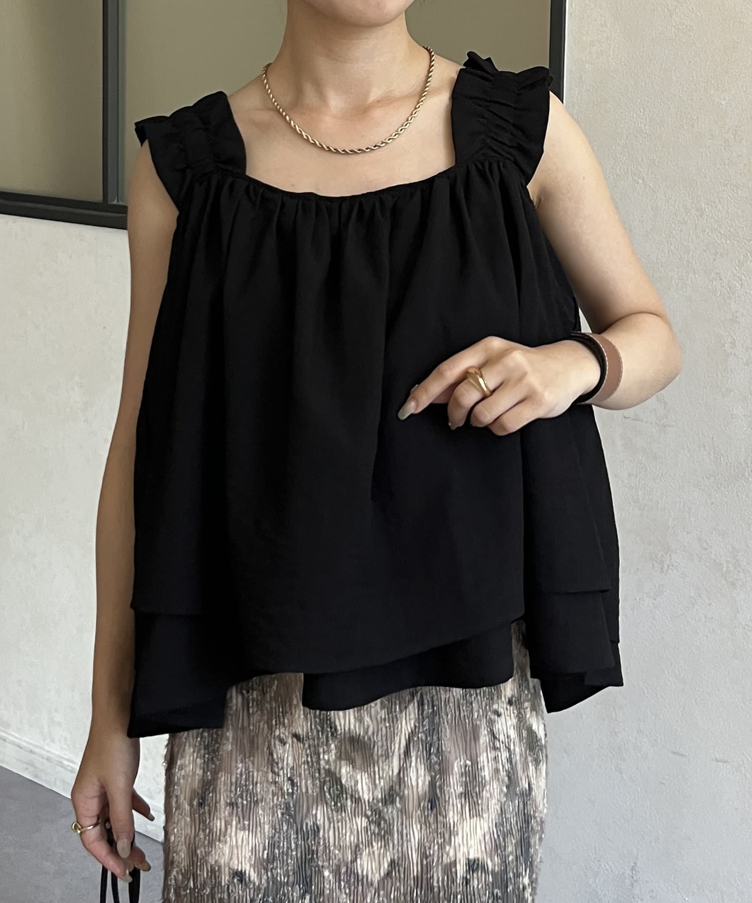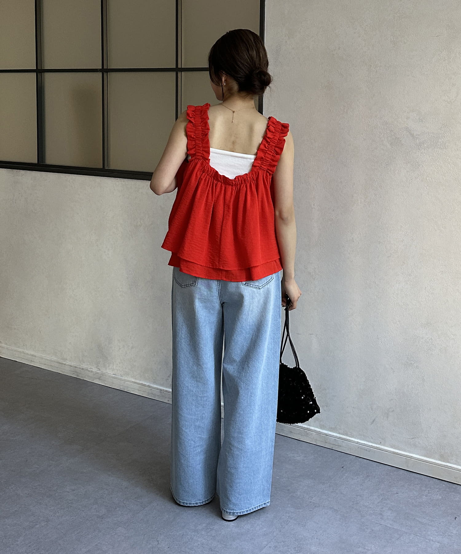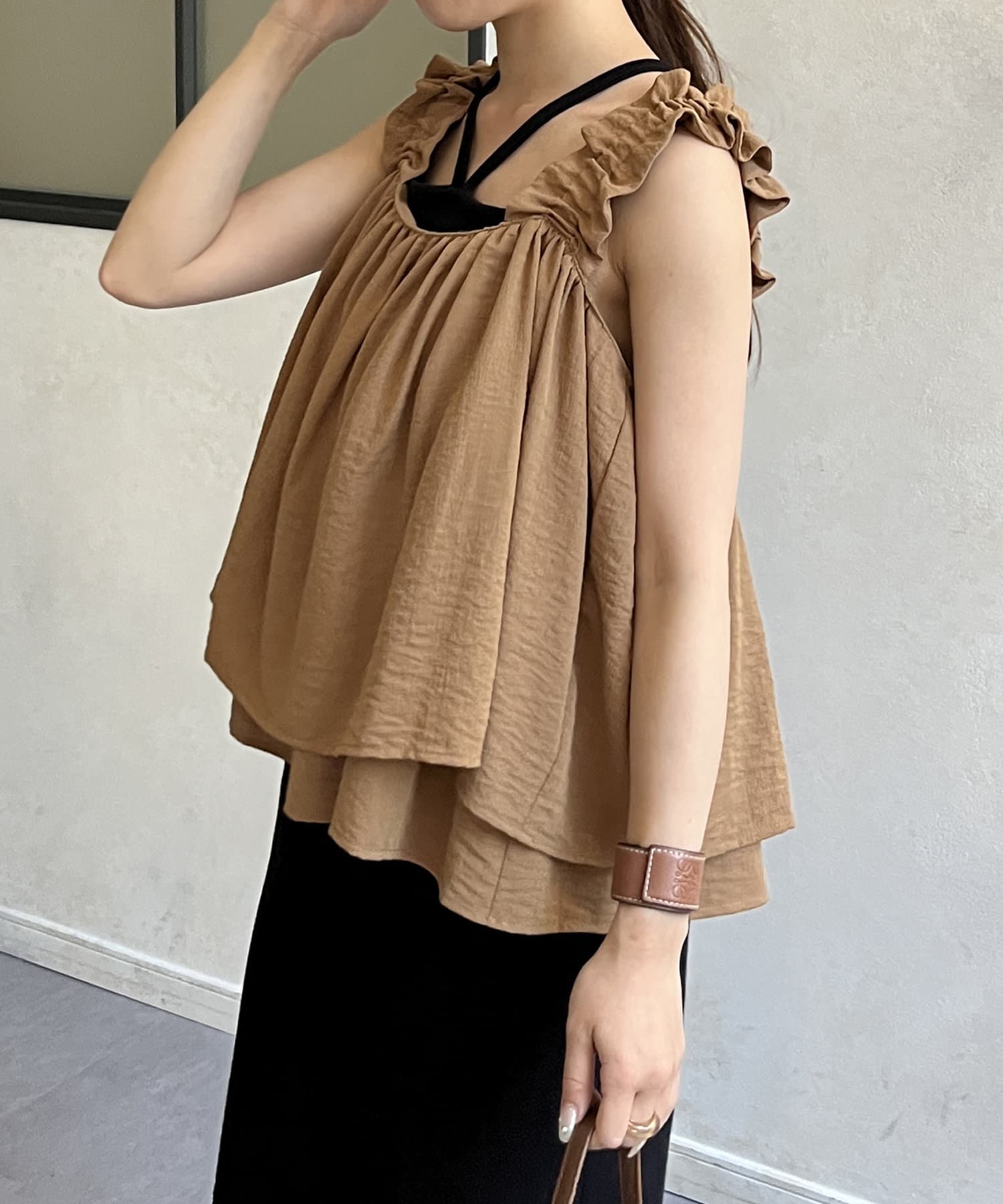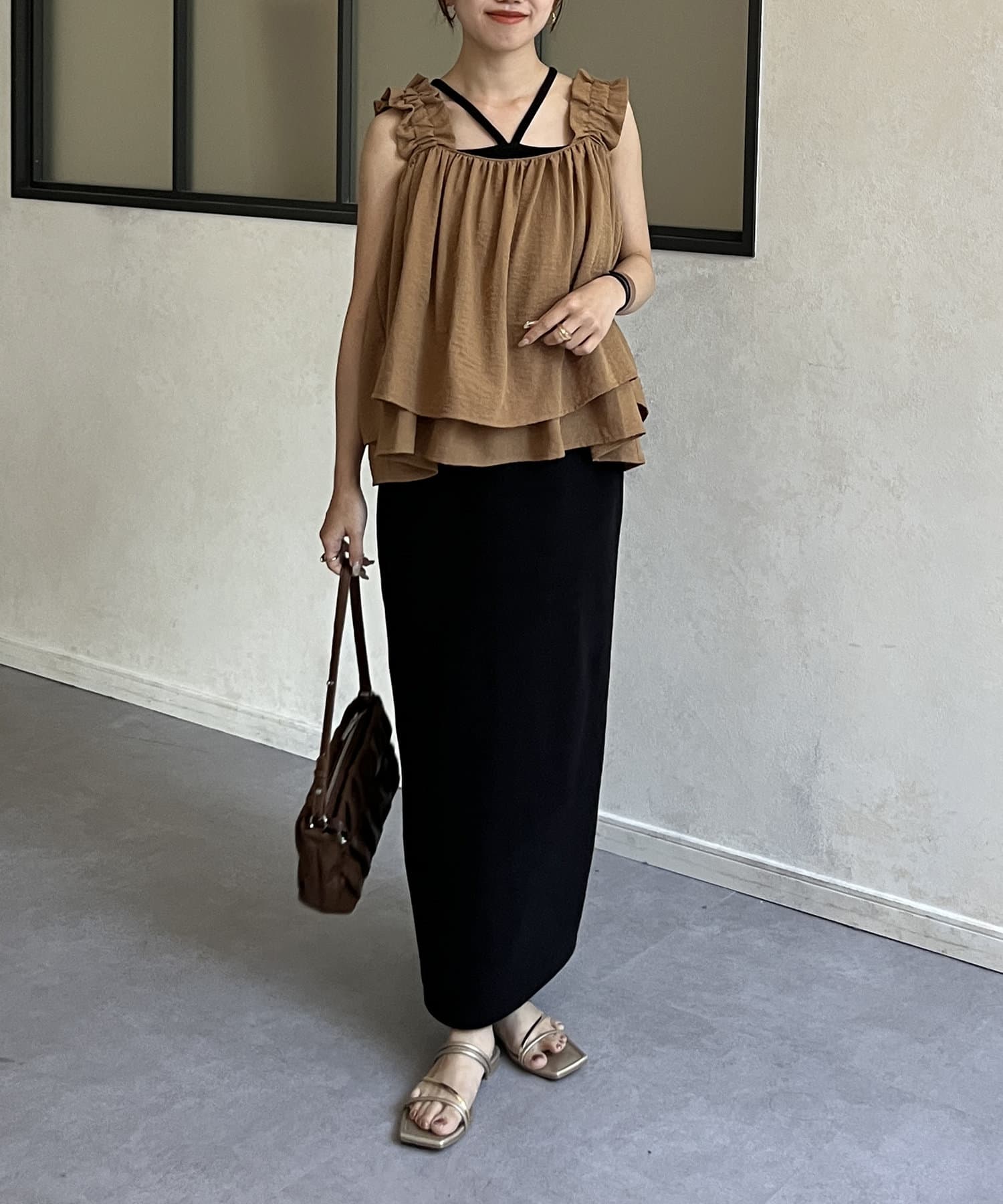 ・胸元と背中が開いているデザインのキャミなので、中にインナーキャミソールを
