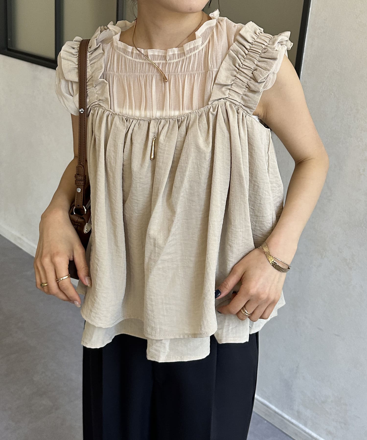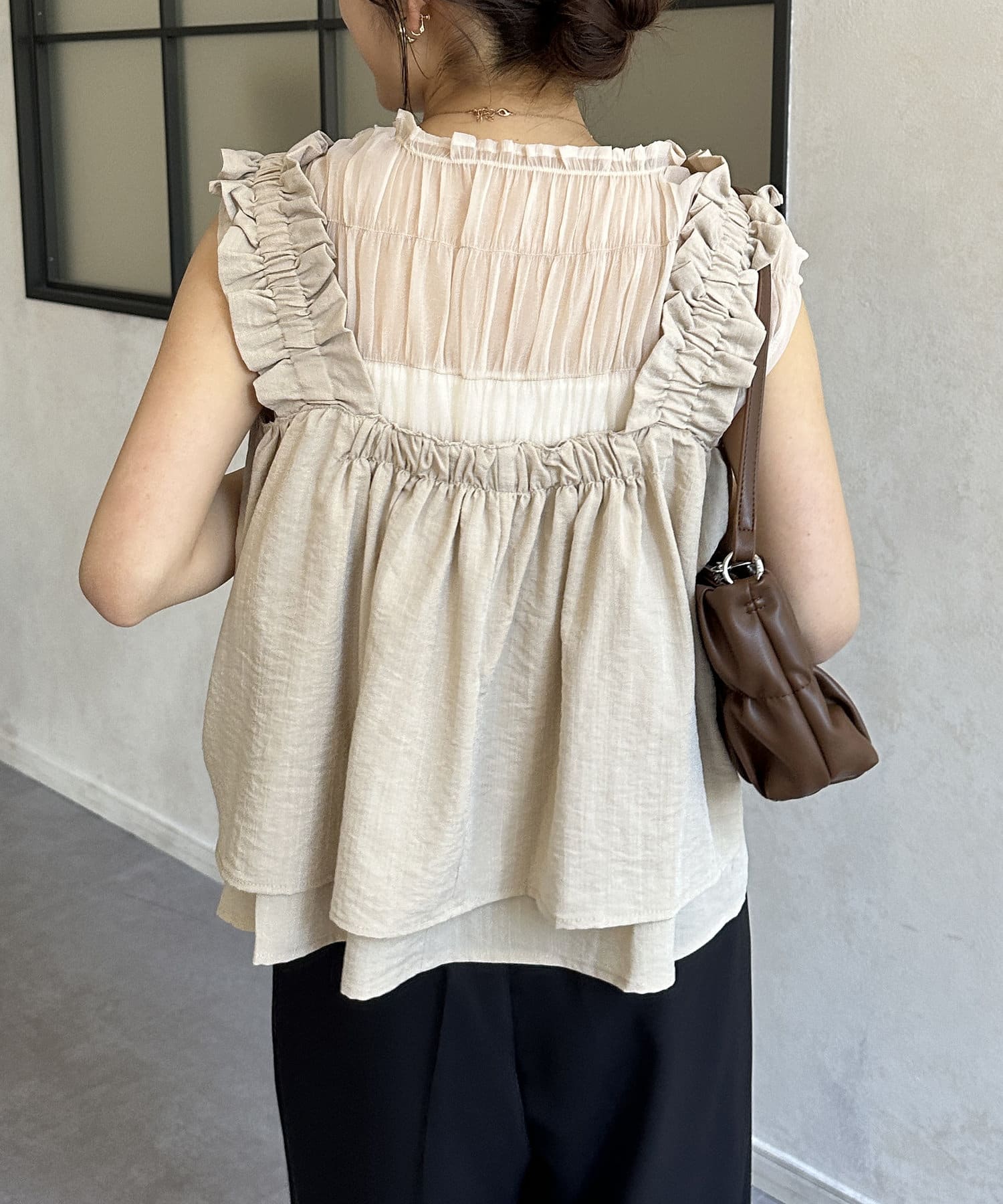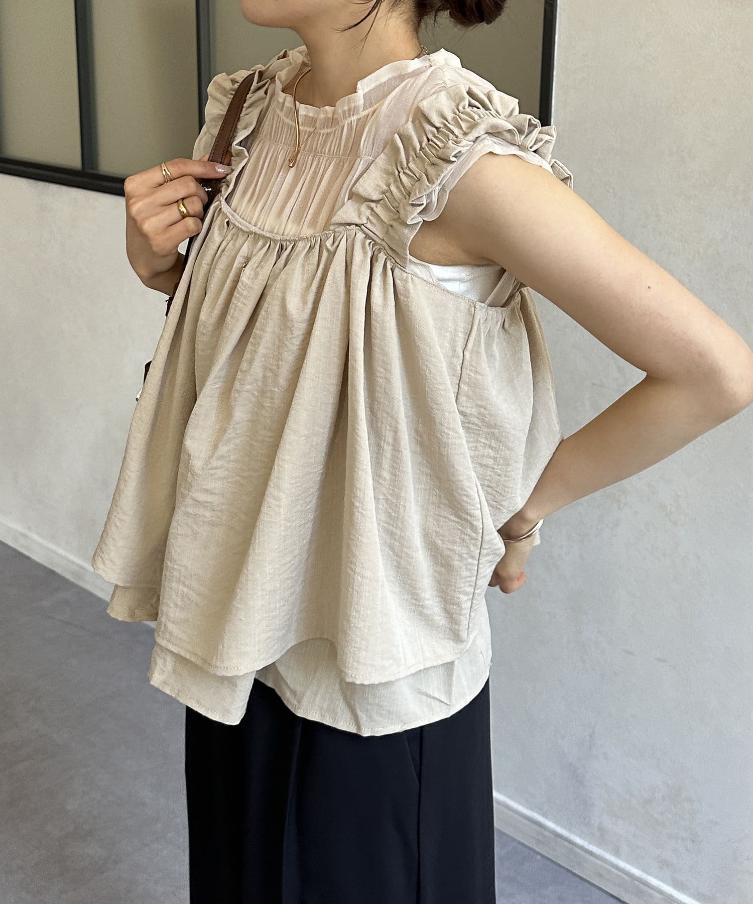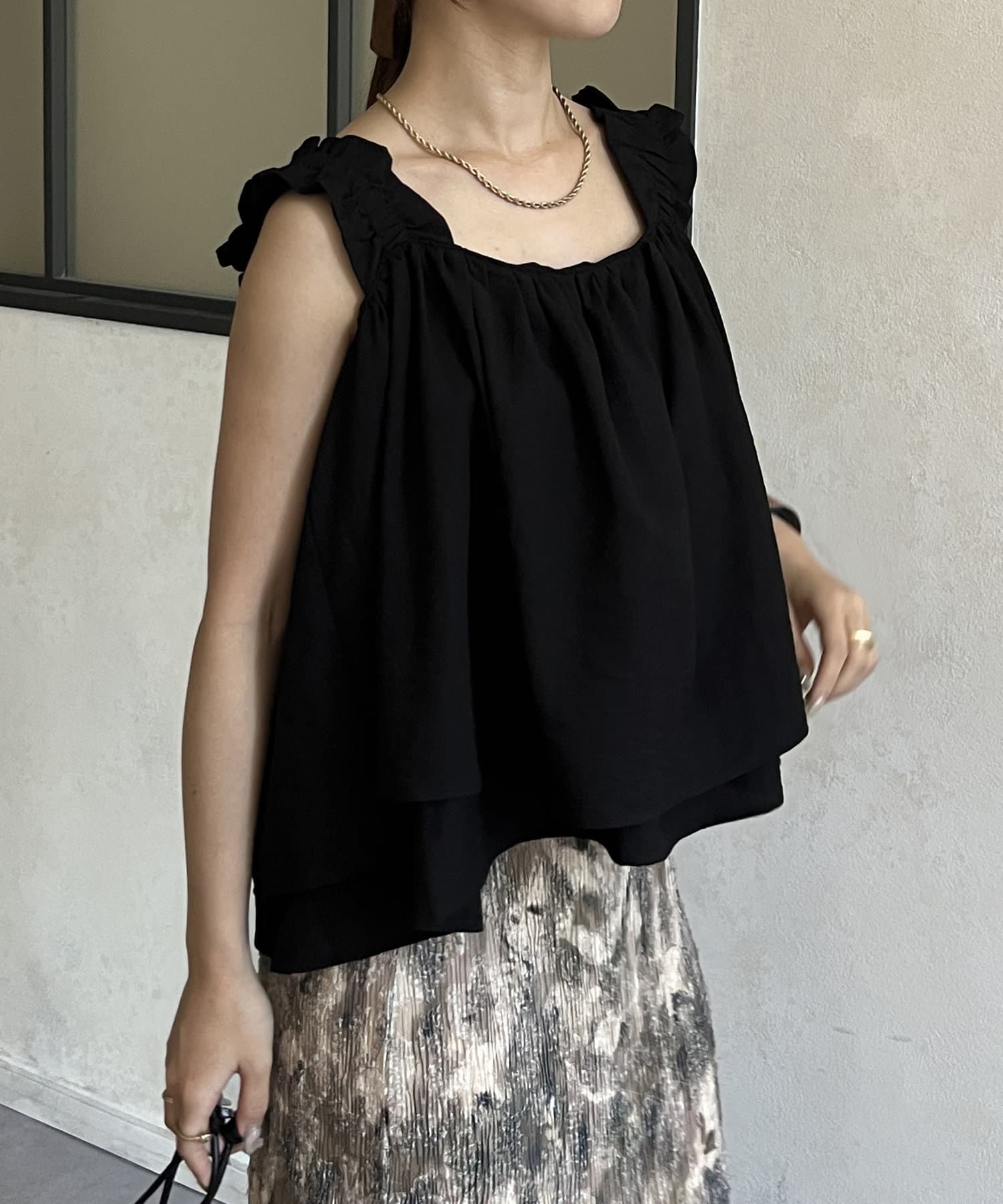 ・胸元と背中が開いているデザインのキャミなので、中にインナーキャミソールを