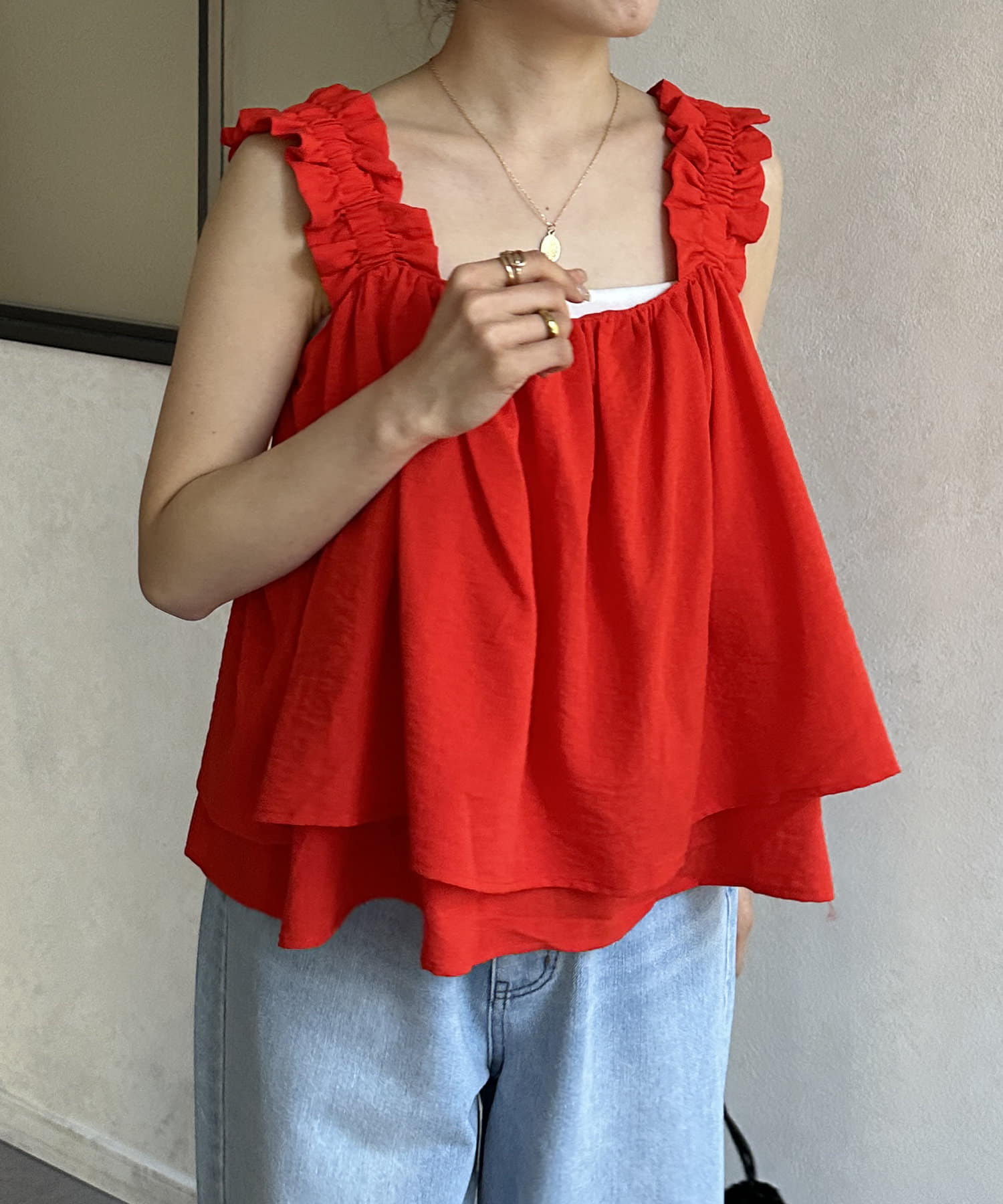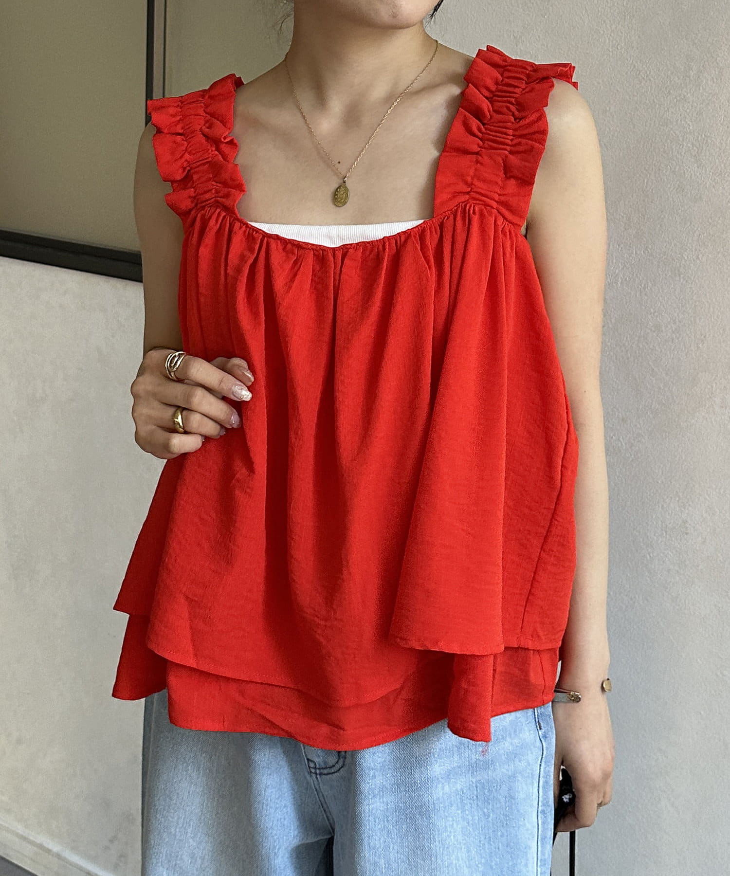 レーヨンスラブシャーリングキャミ