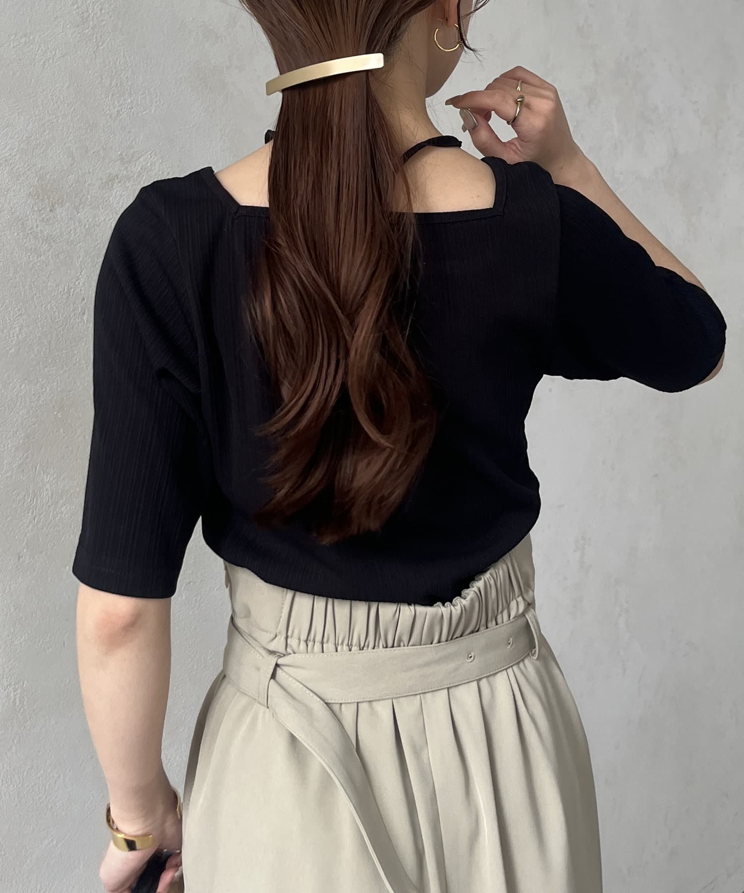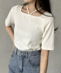 ・スクエアネックにで鎖骨ラインをきれいに演出