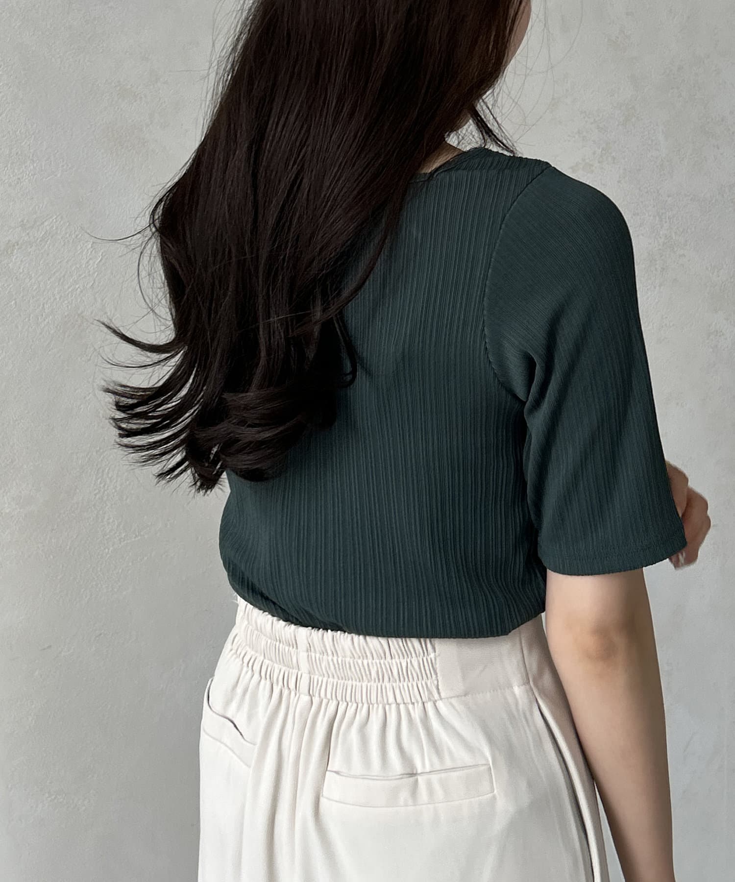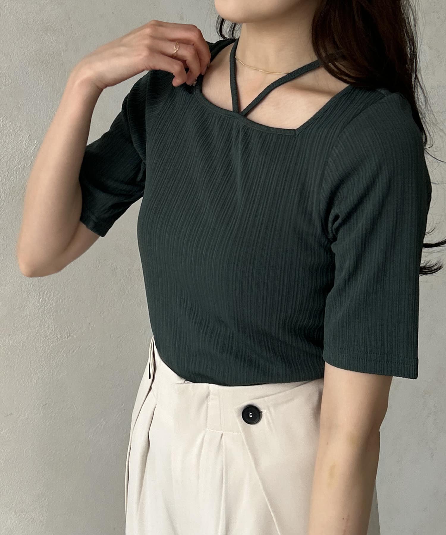 TOP > Thevon. > レディース > トップス > Tシャツ/カットソー > ランダムリブホルターネック5分袖プルオーバー