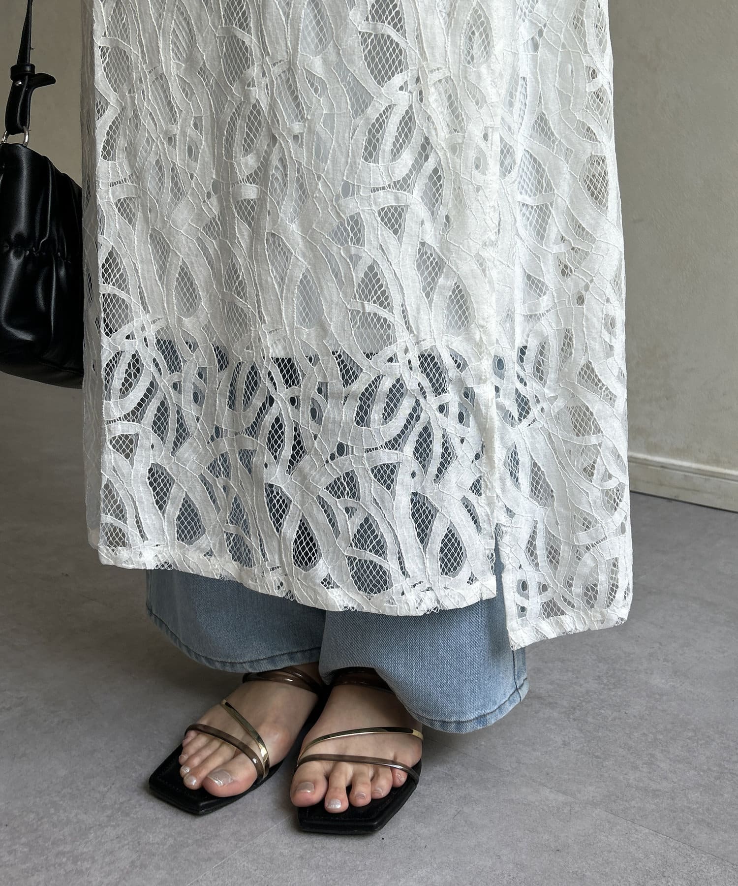・ペチコート付きですが、透け感があるのでデニムやパンツ等の