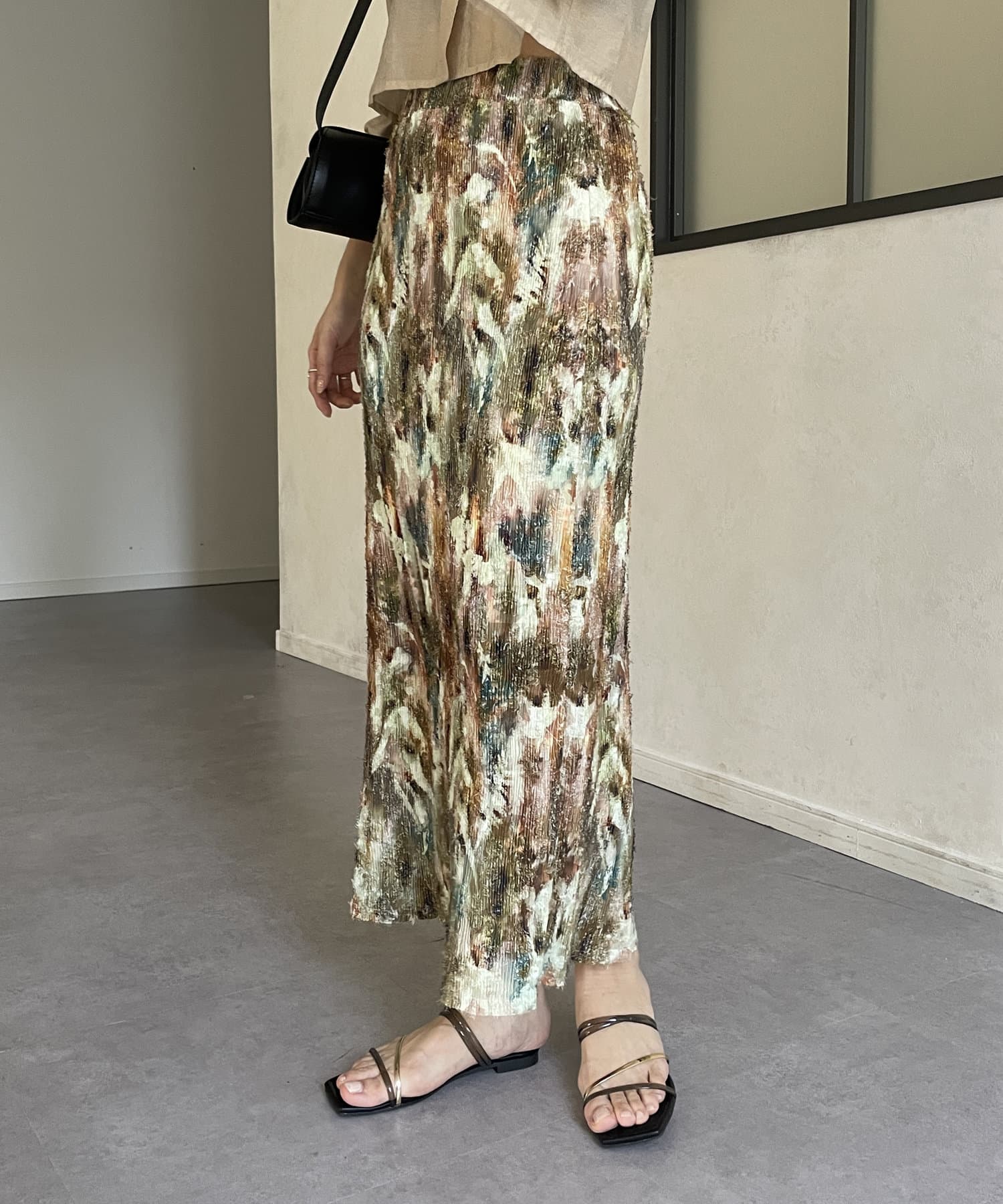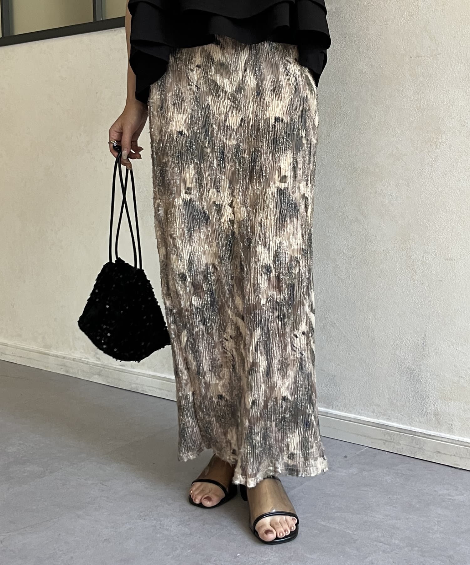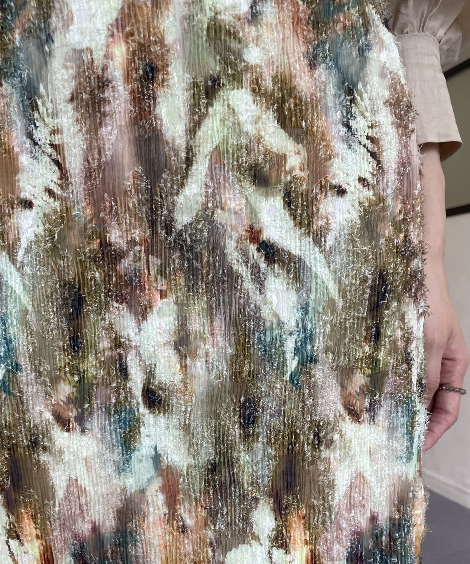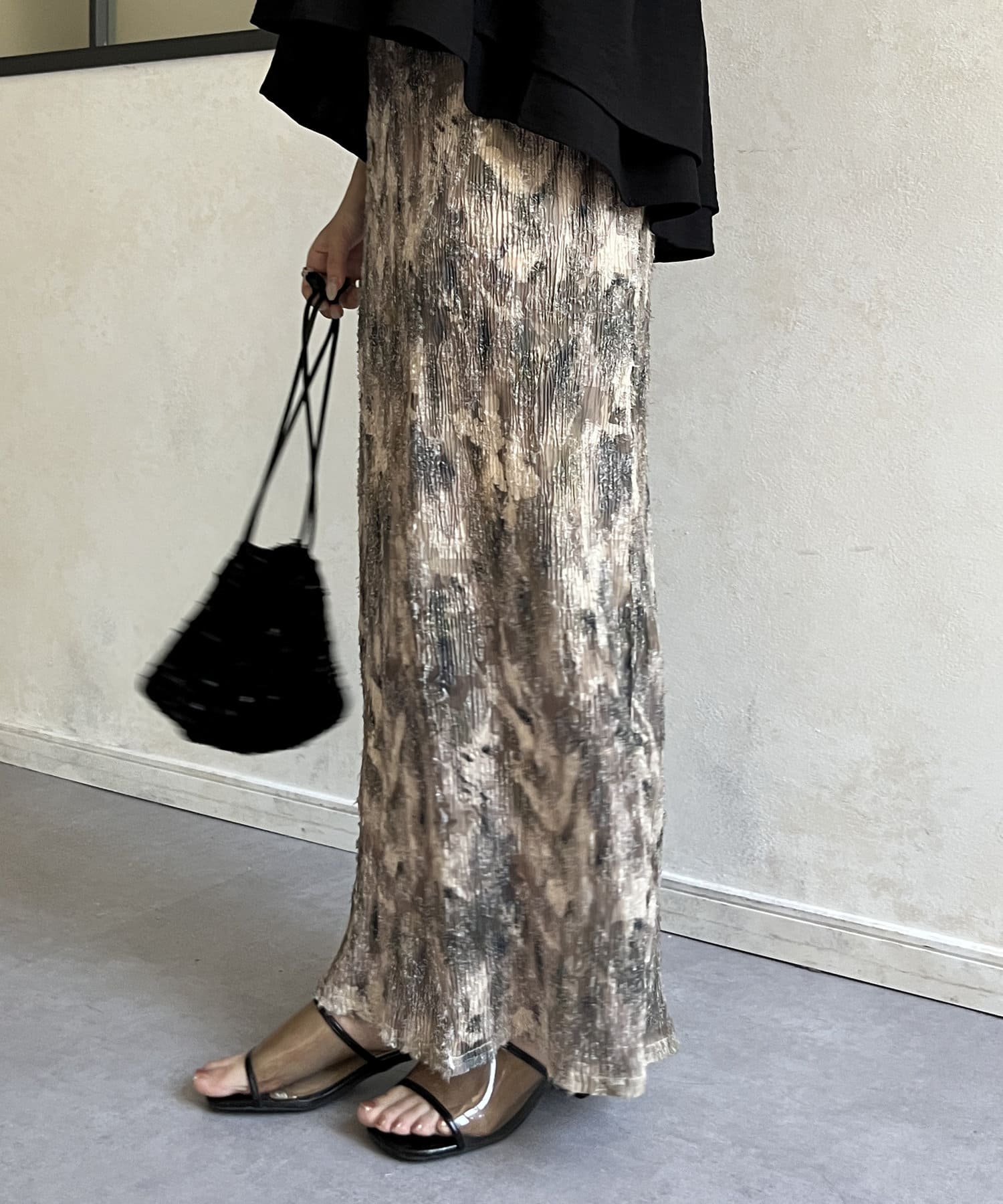 • Thevon.(ゼヴォン) ニュアンス柄プリーツナロースカート