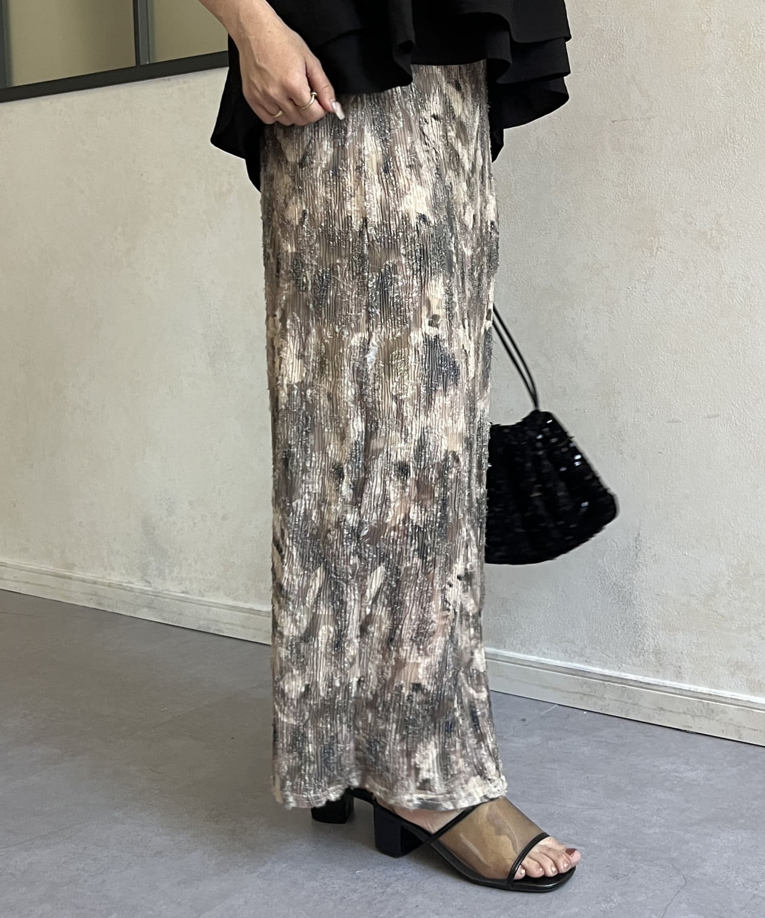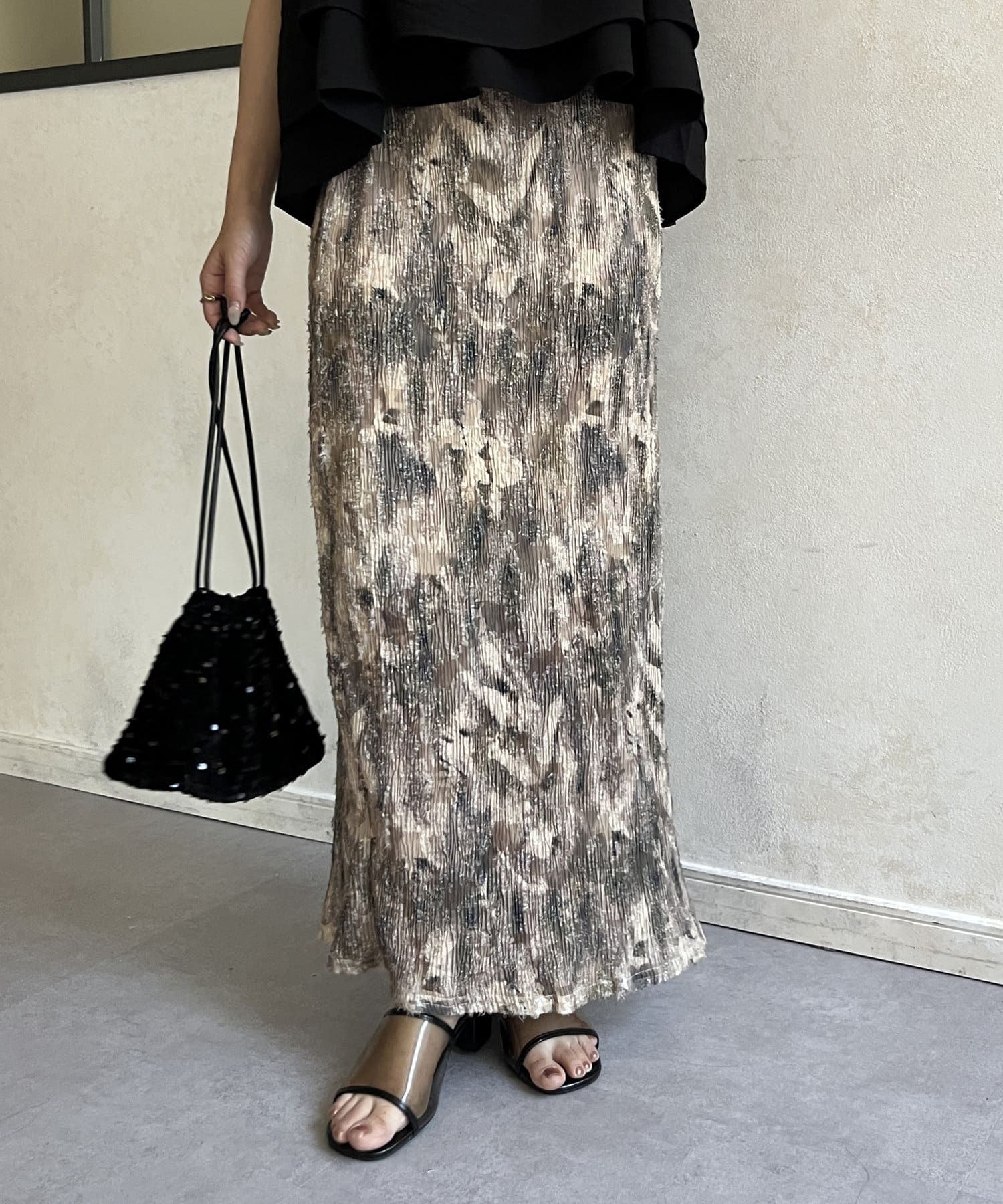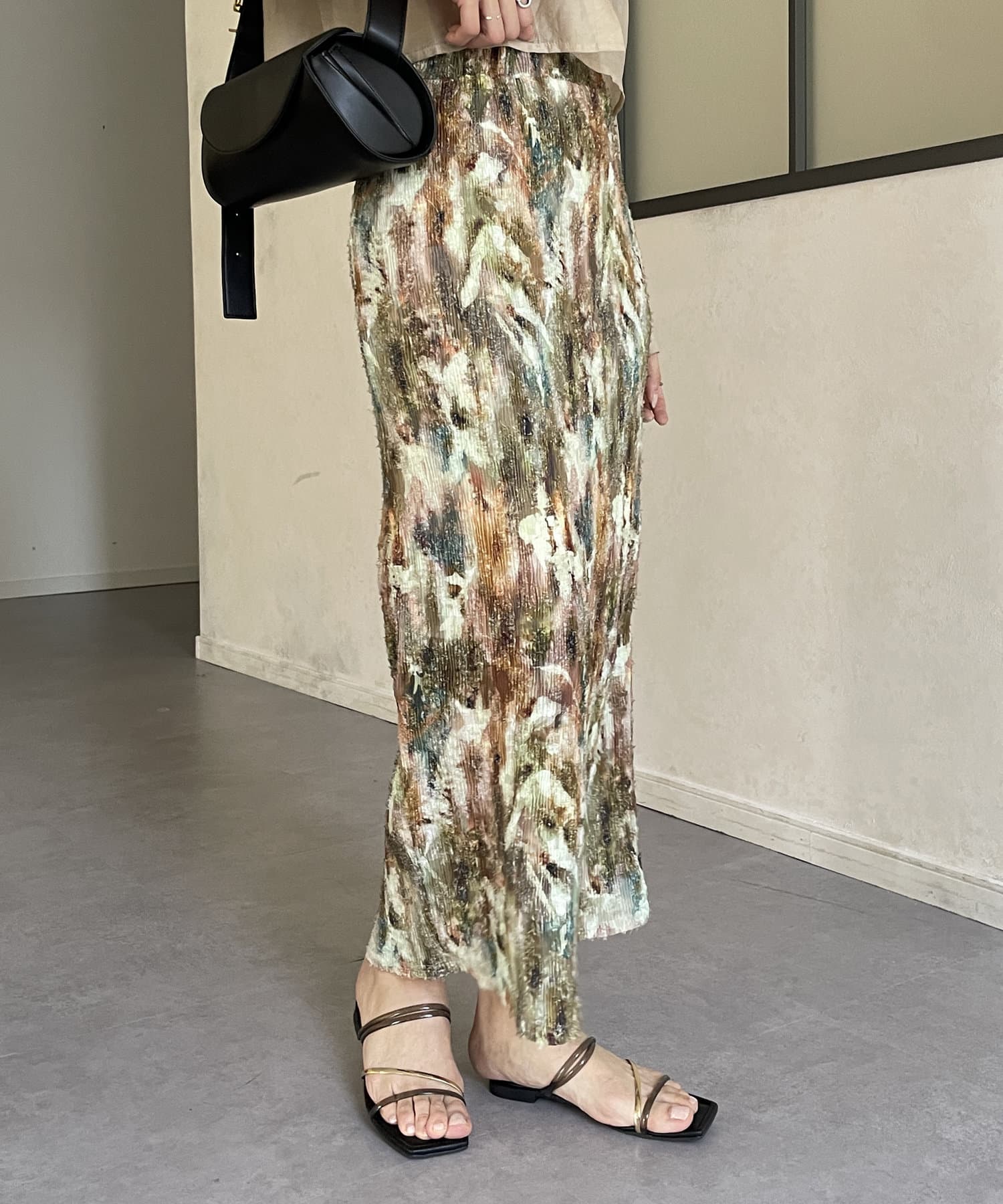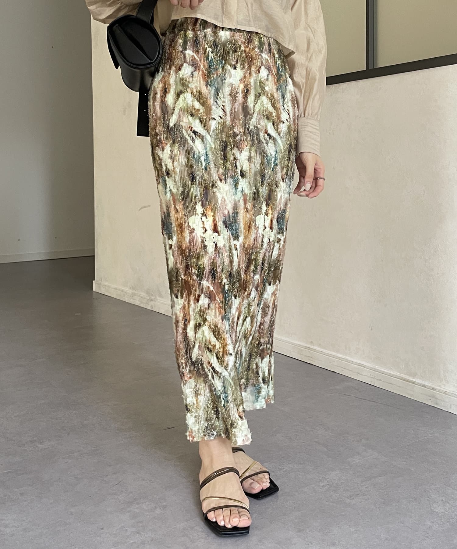 • Thevon.(ゼヴォン) ニュアンス柄プリーツナロースカート