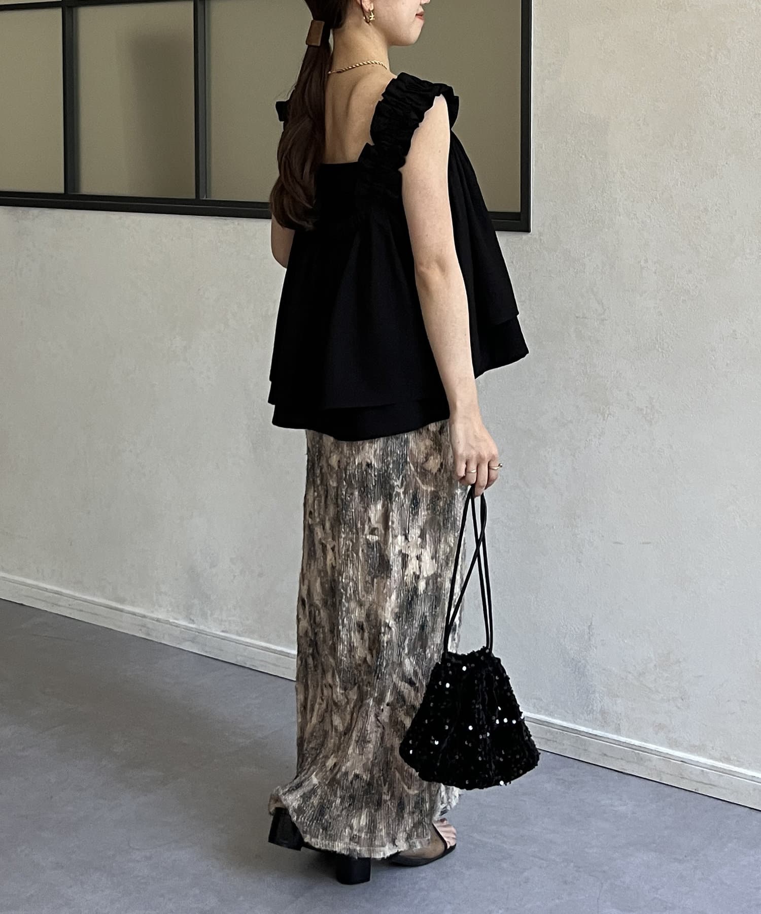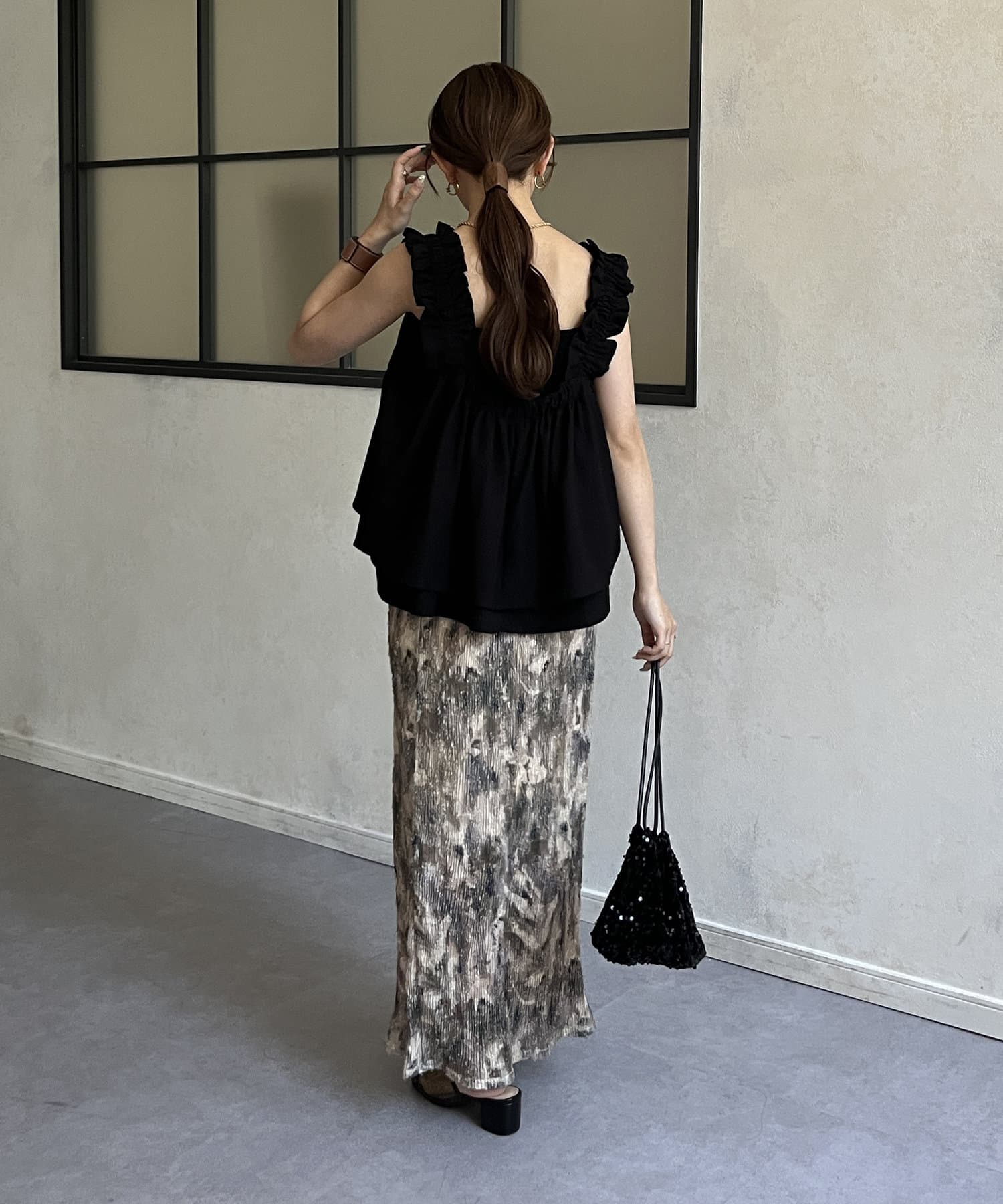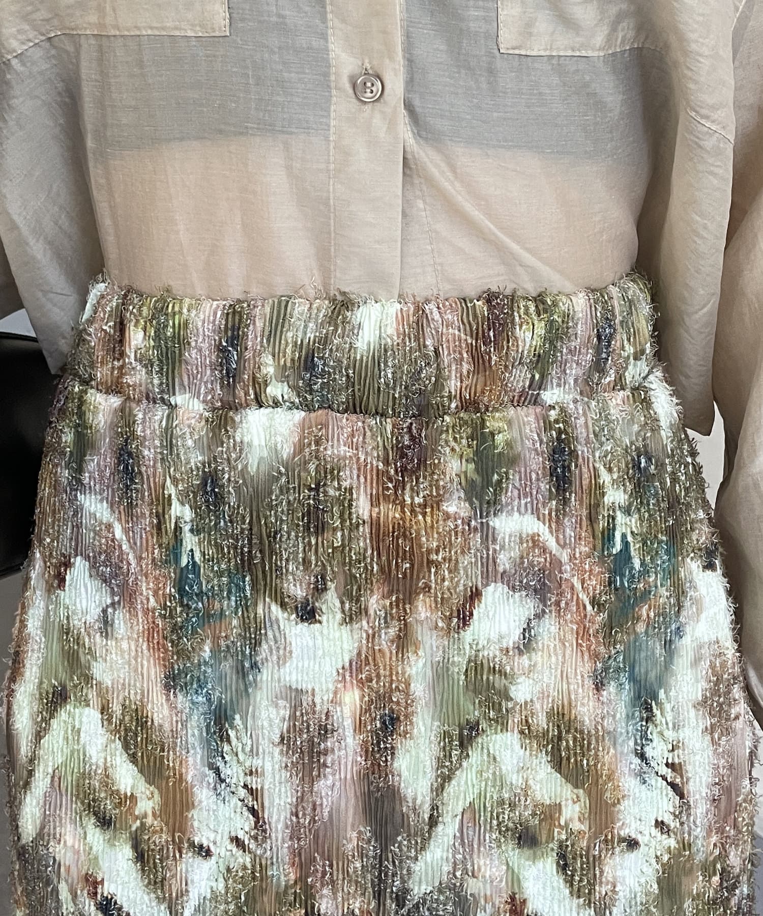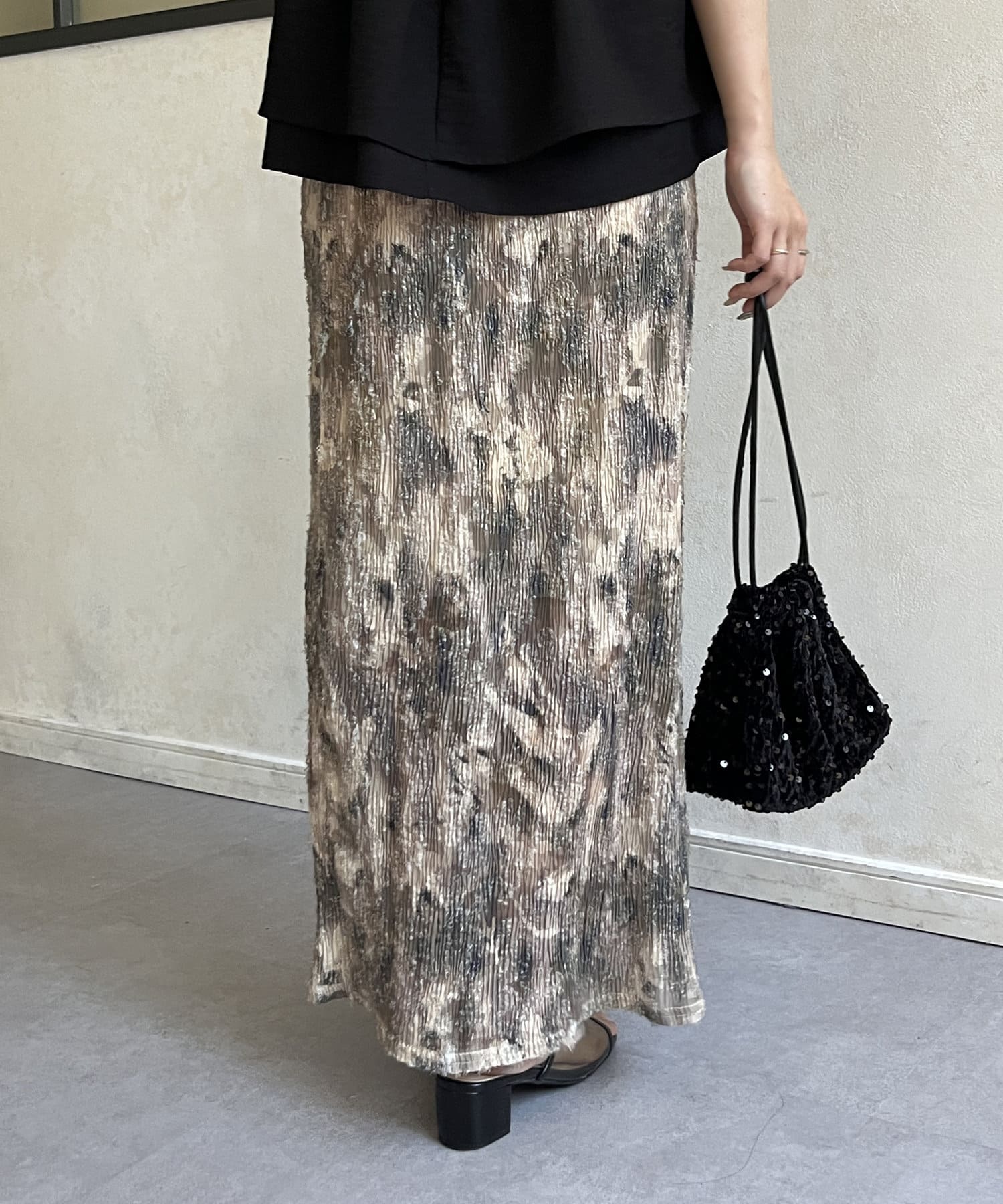 • Thevon.(ゼヴォン) ニュアンス柄プリーツナロースカート