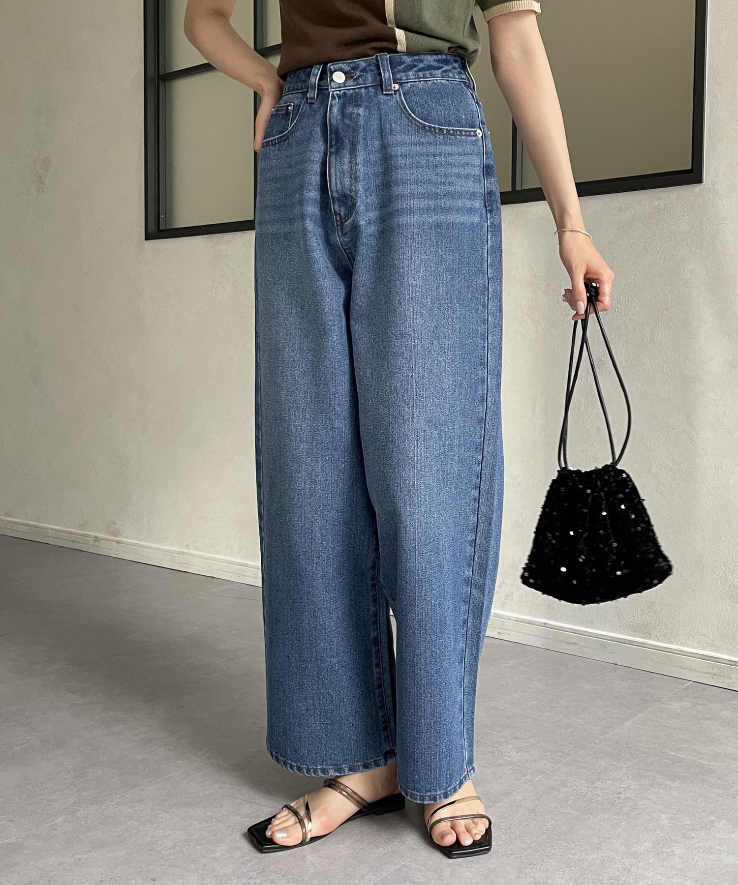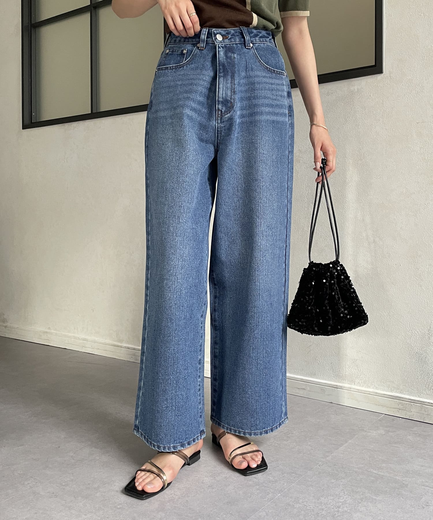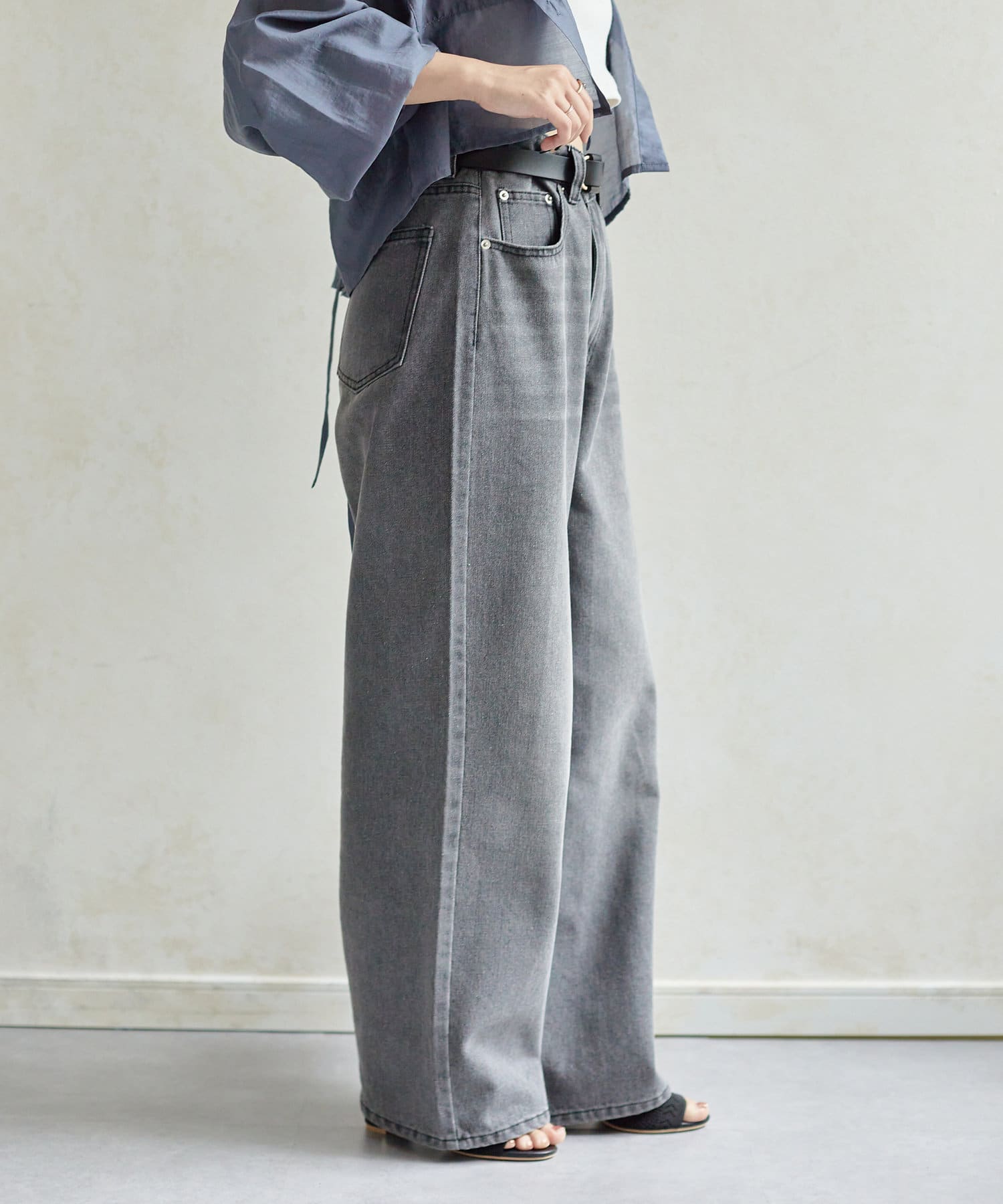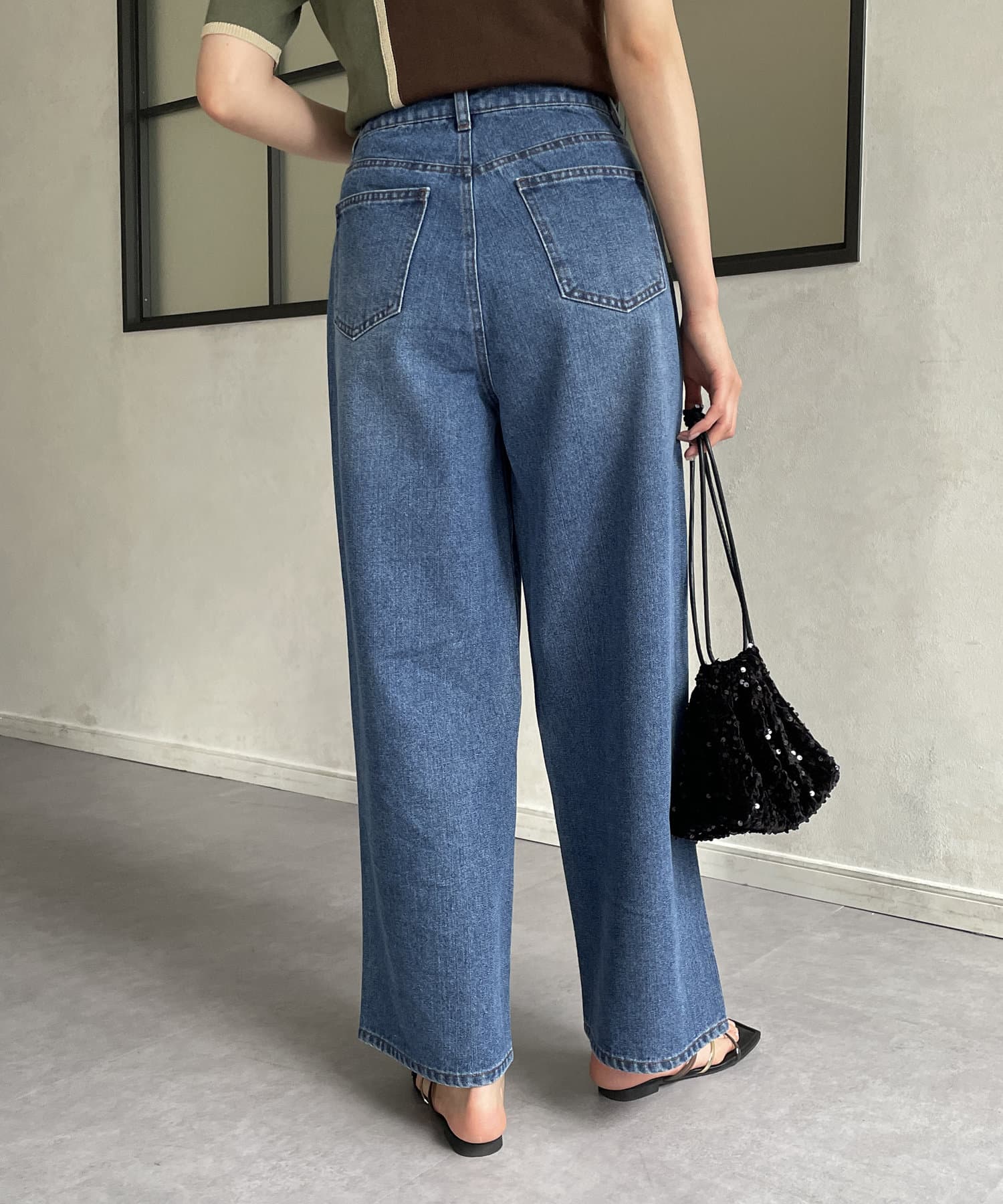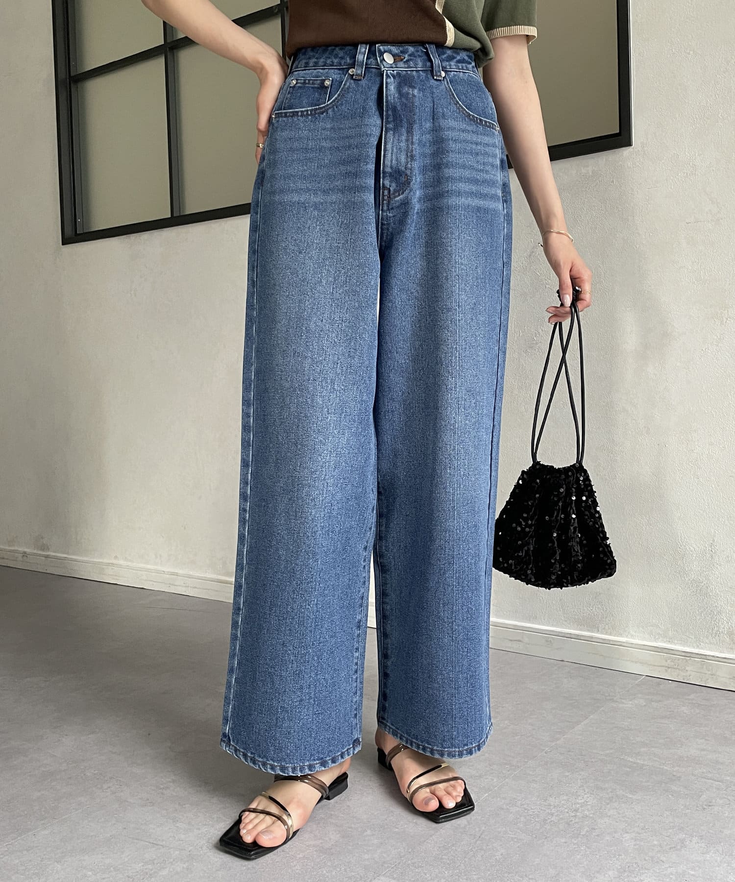 【2サイズ展開/身長別サイズ比較動画あり】ハイウエストワイドデニム