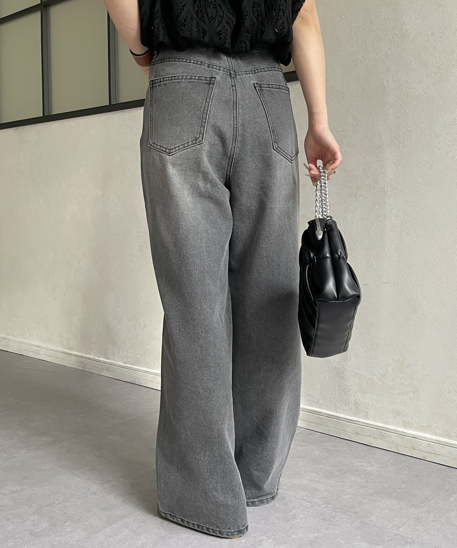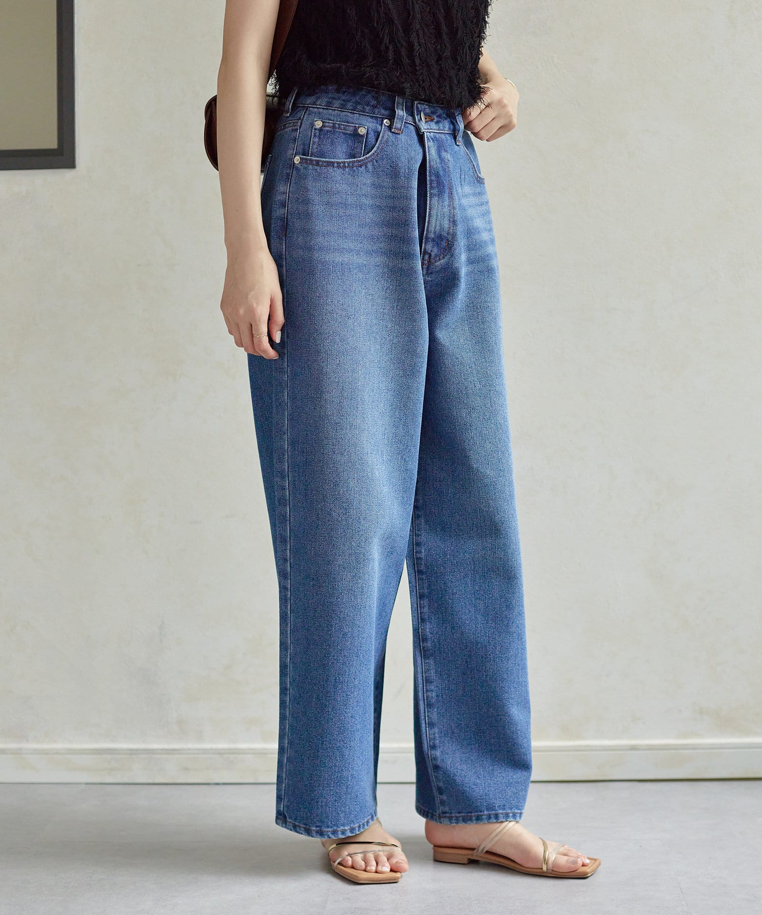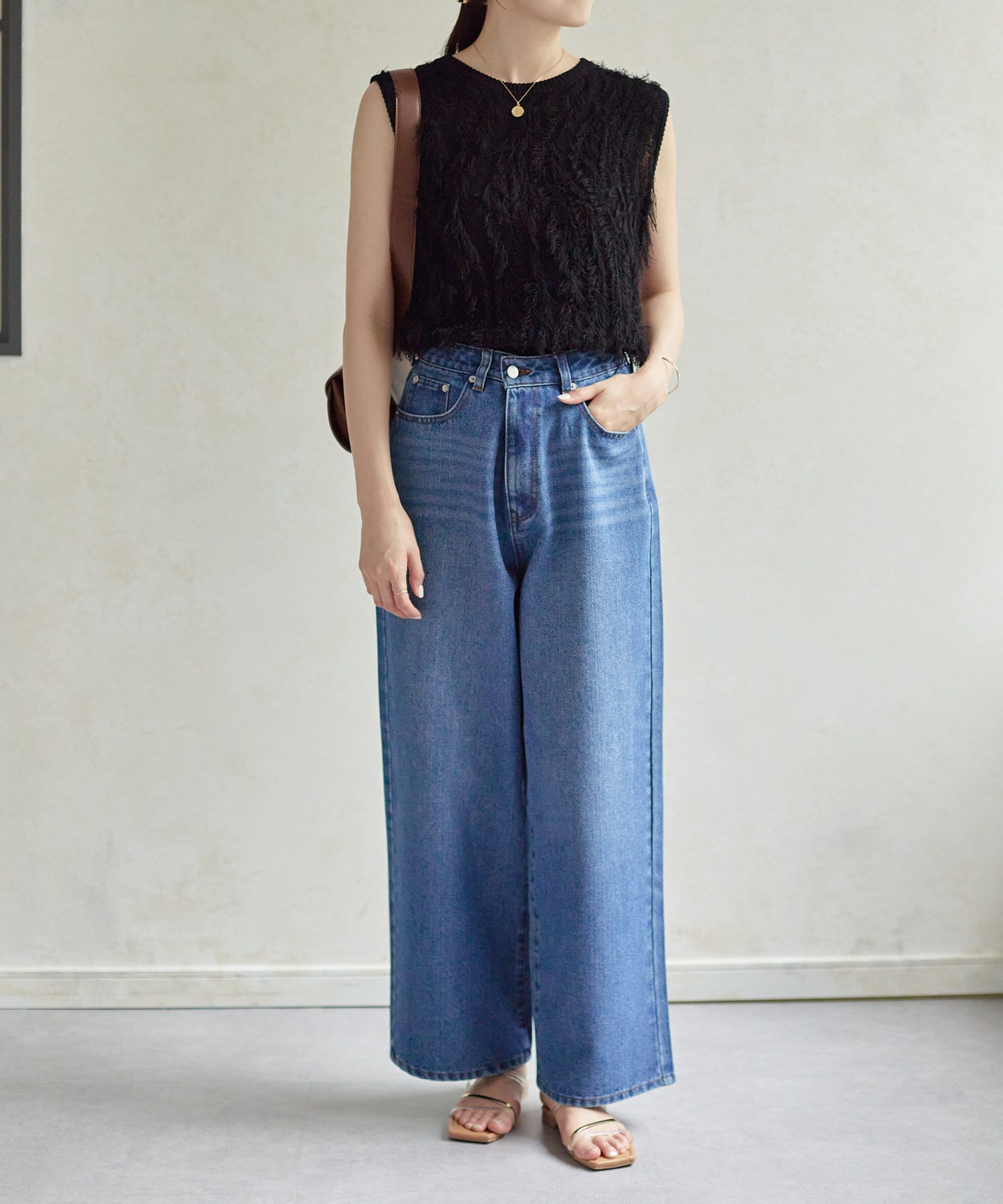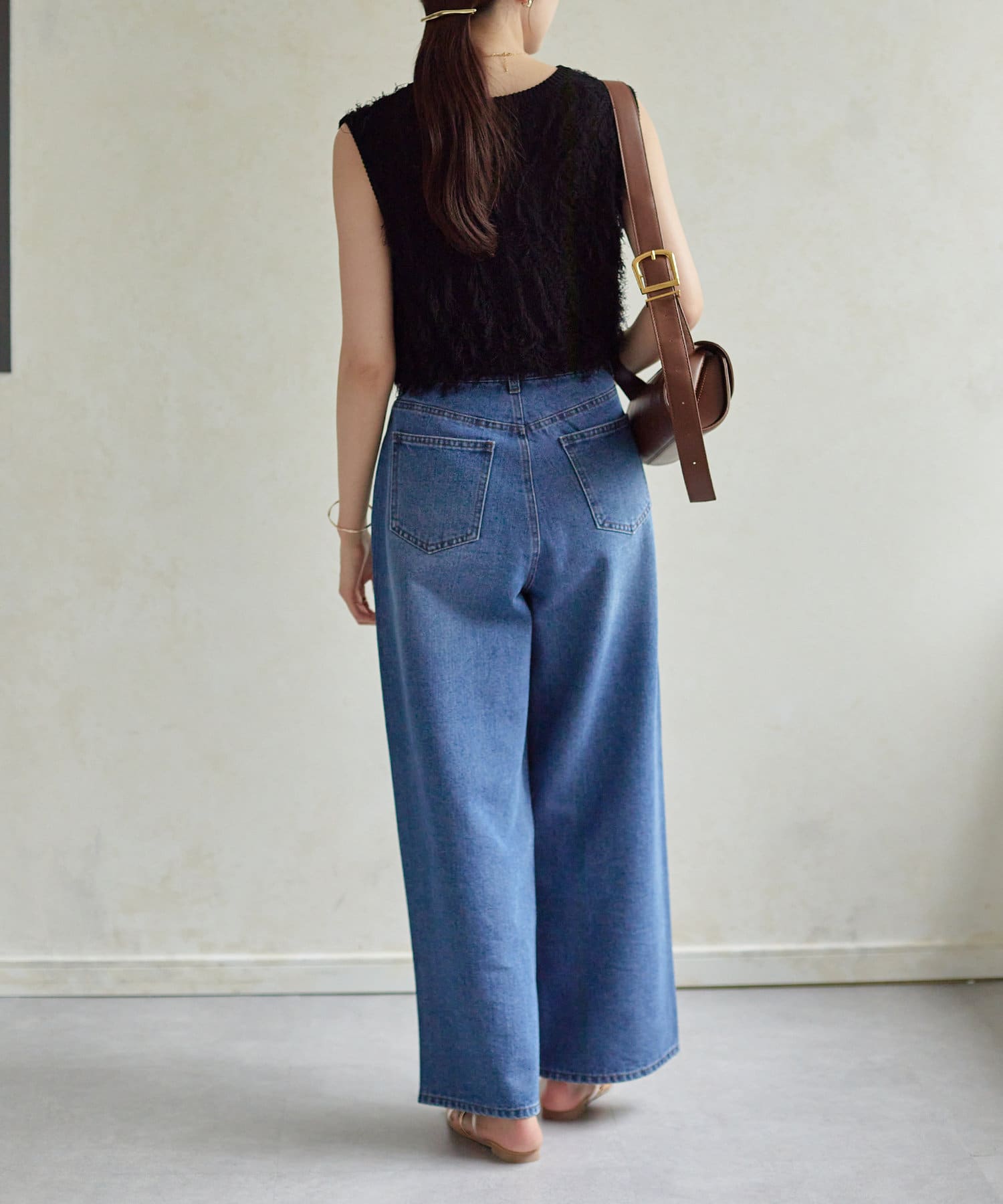 【2サイズ展開/身長別サイズ比較動画あり】ハイウエストワイドデニム