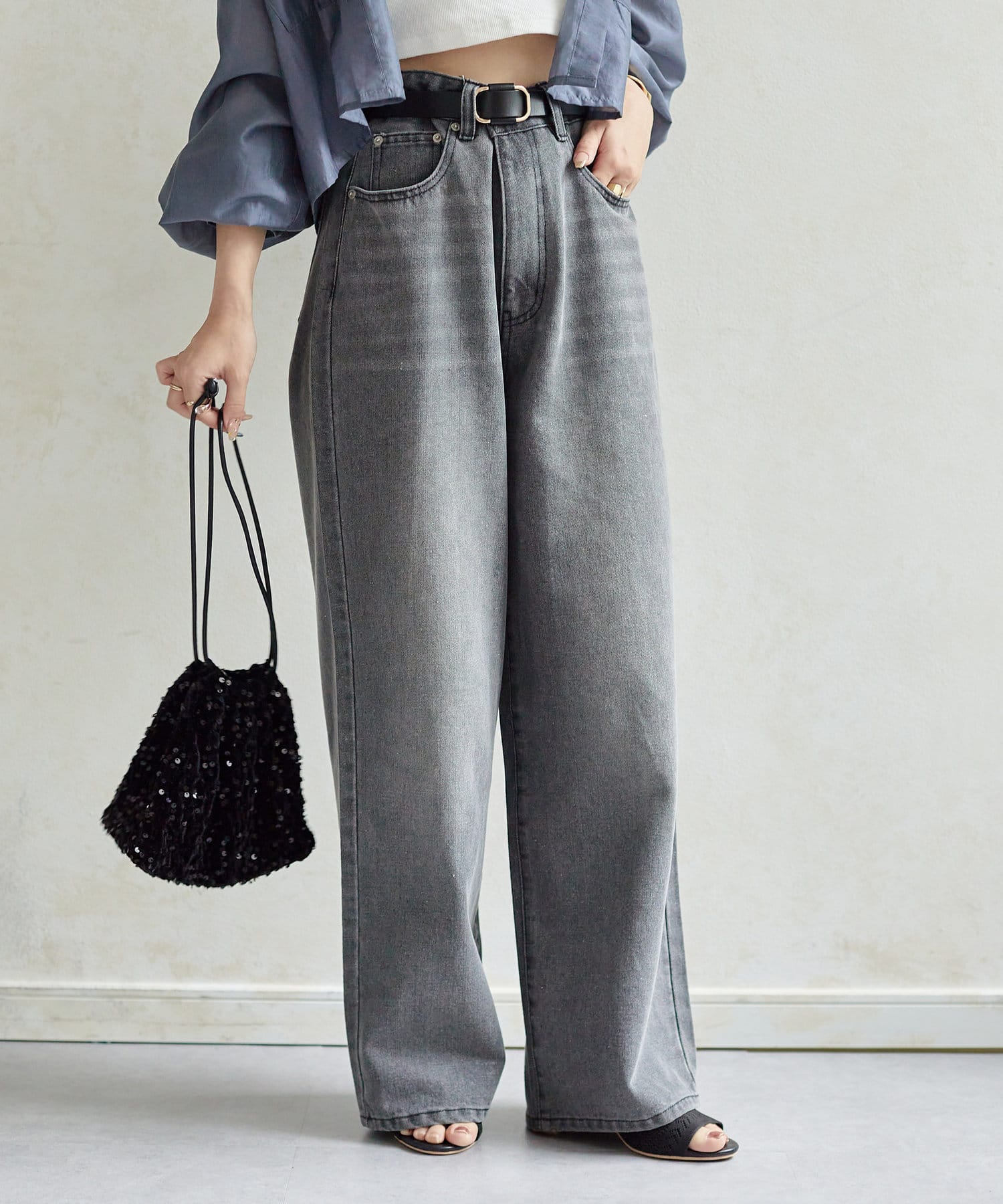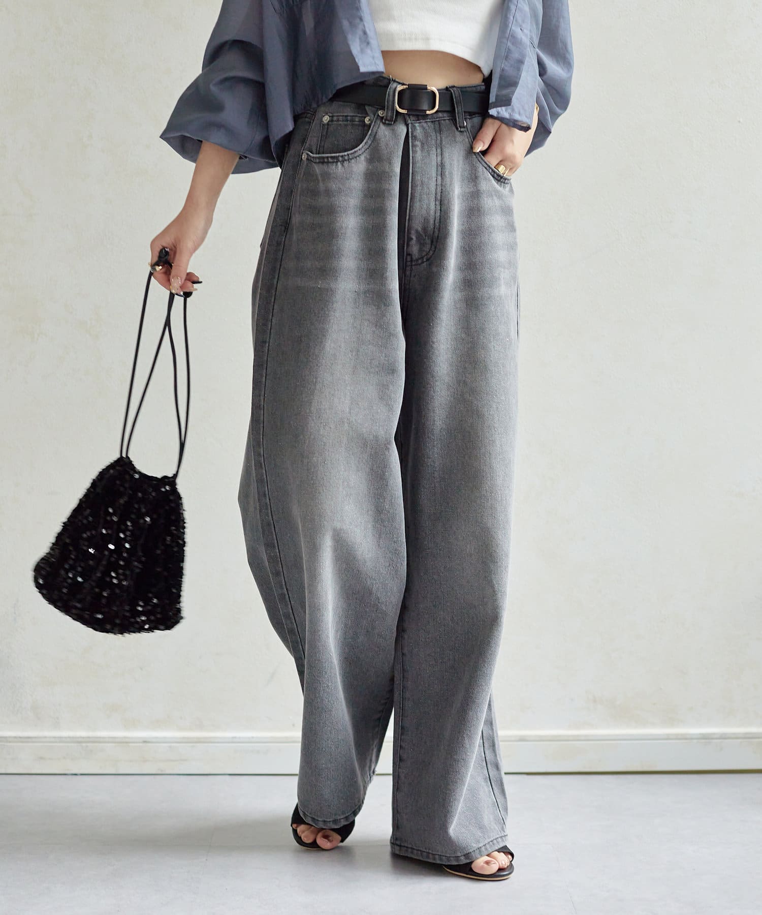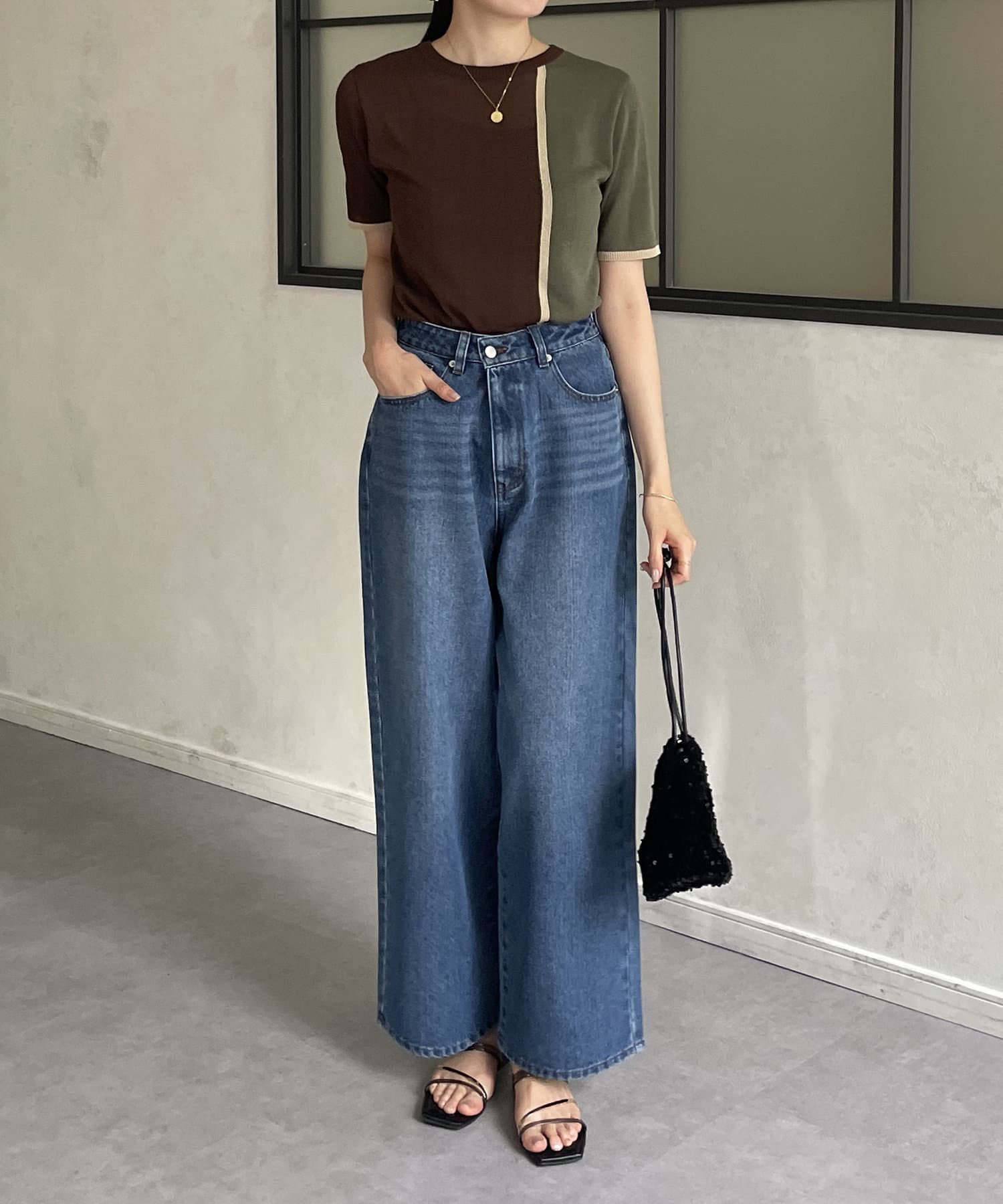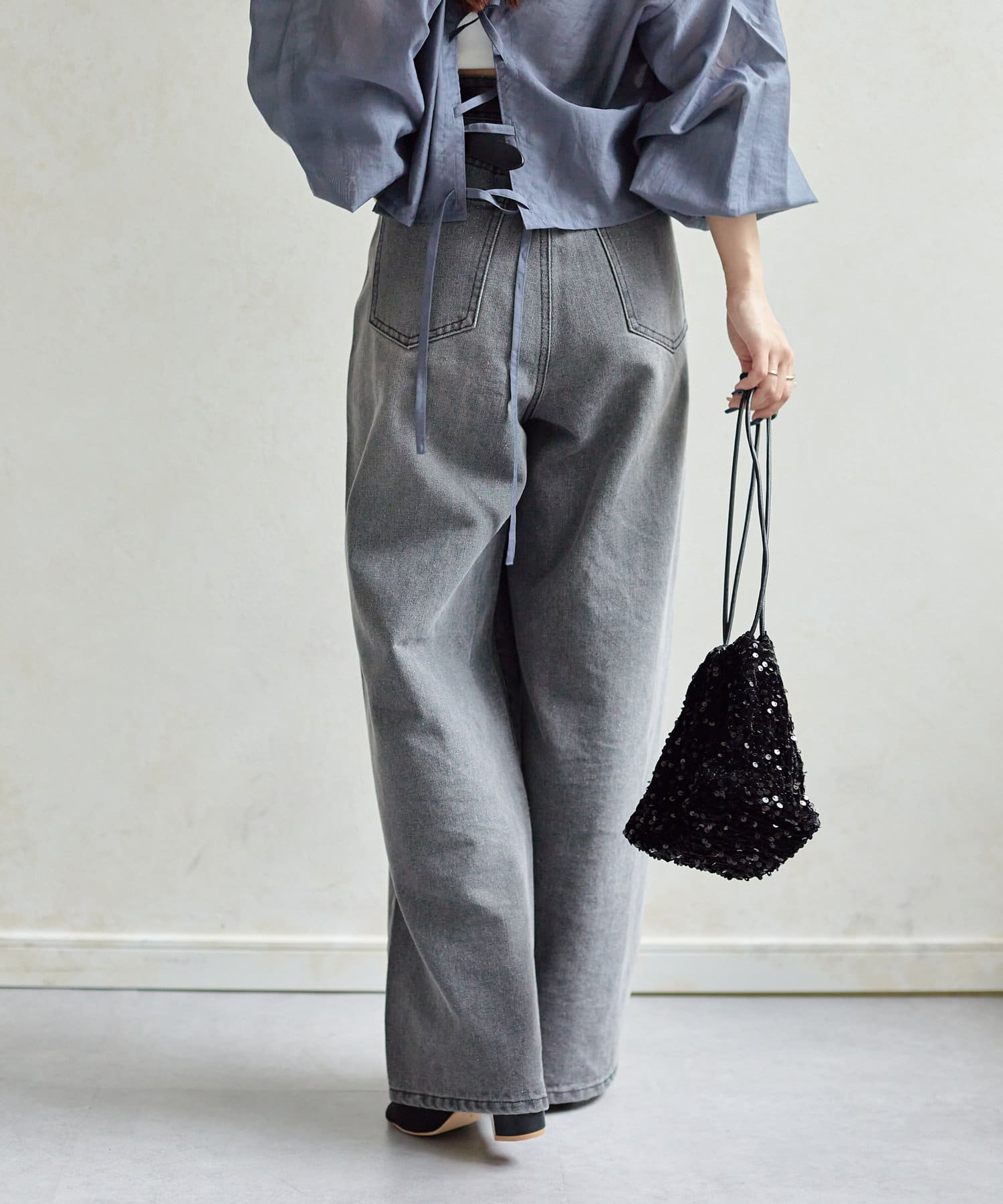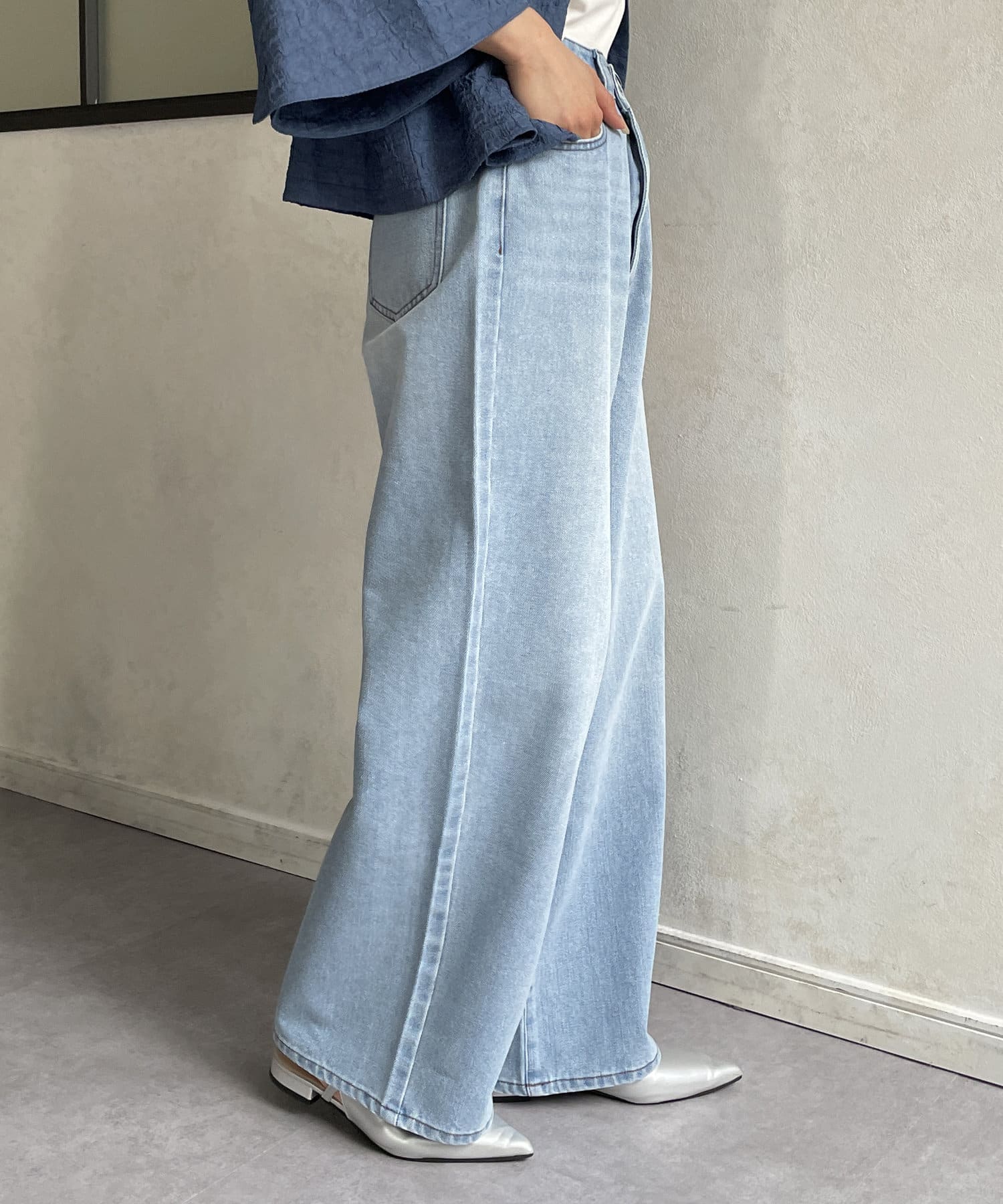 【2サイズ展開/身長別サイズ比較動画あり】ハイウエストワイドデニム