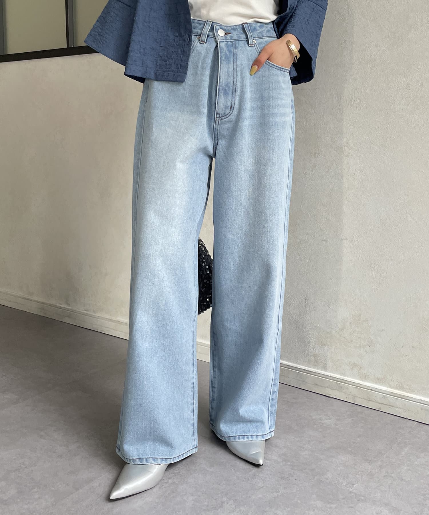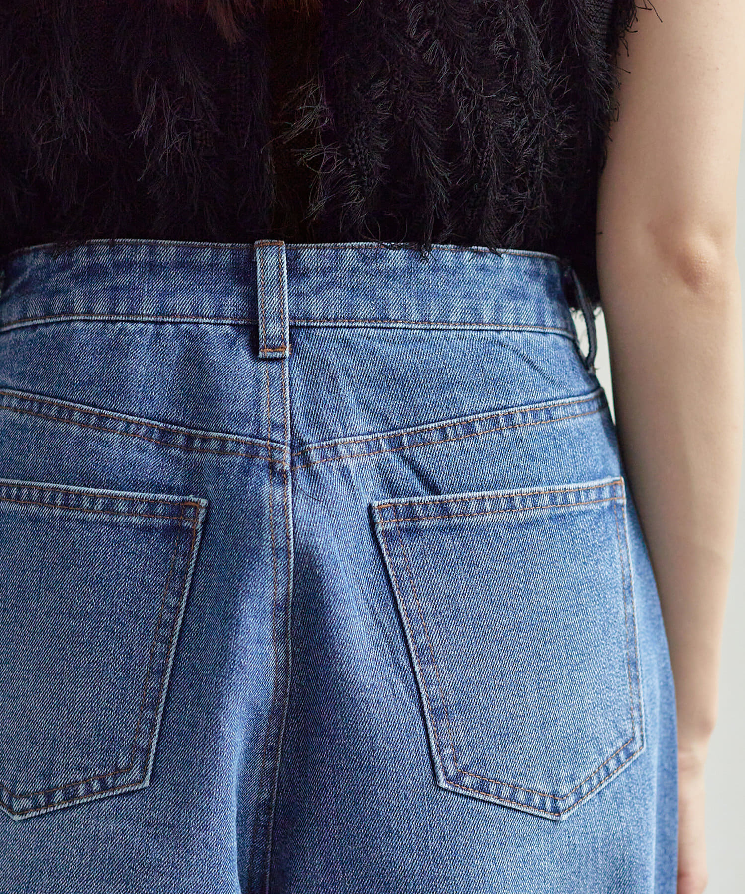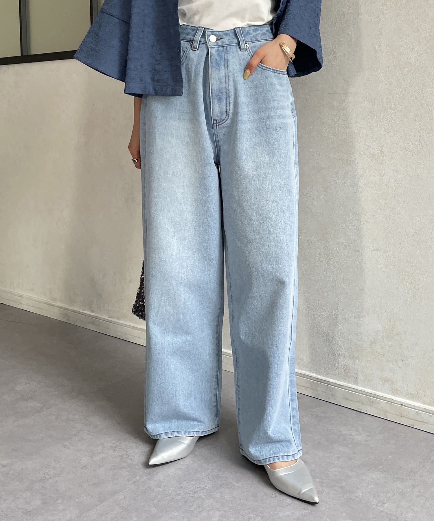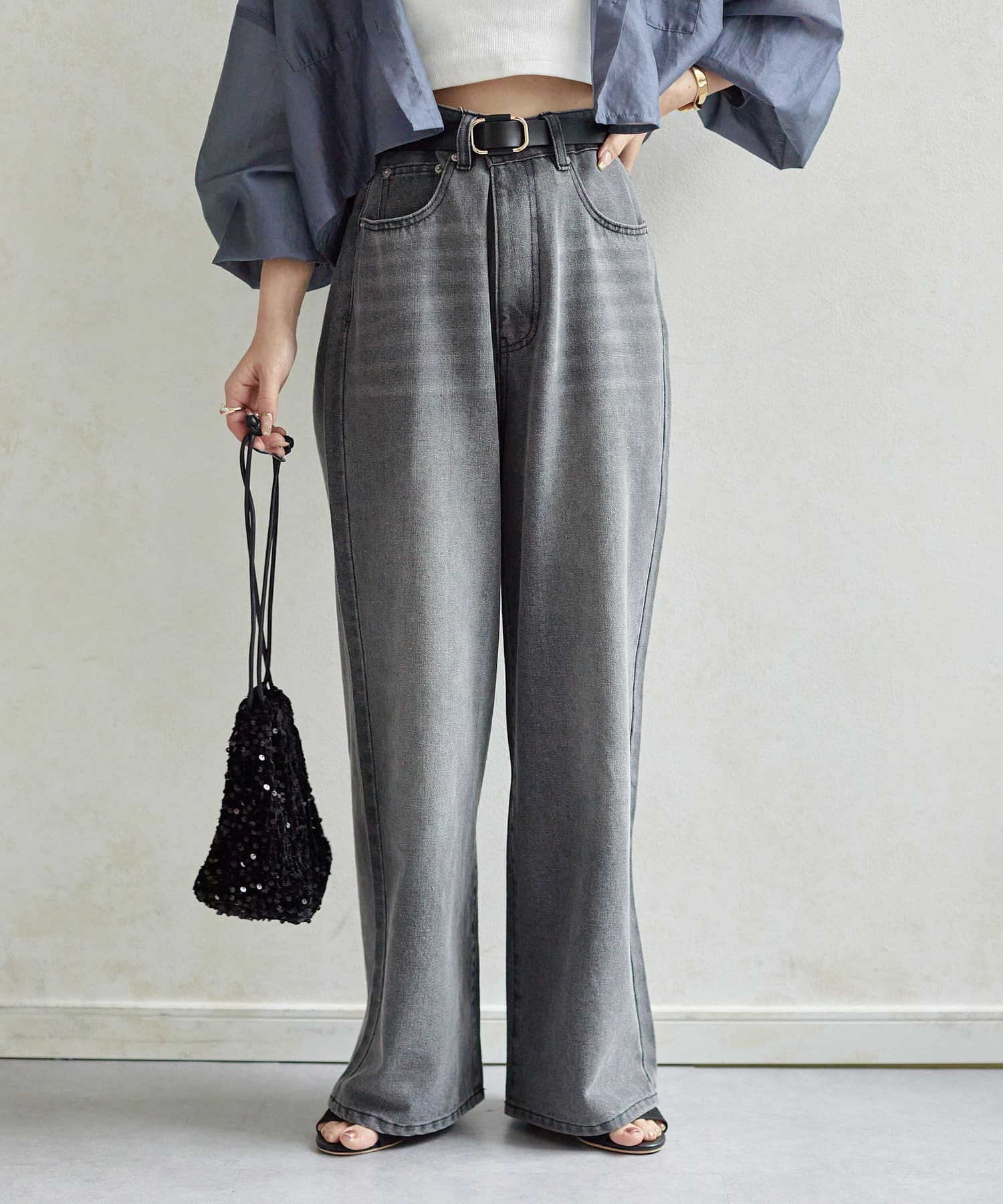 【2サイズ展開/身長別サイズ比較動画あり】ハイウエストワイドデニム