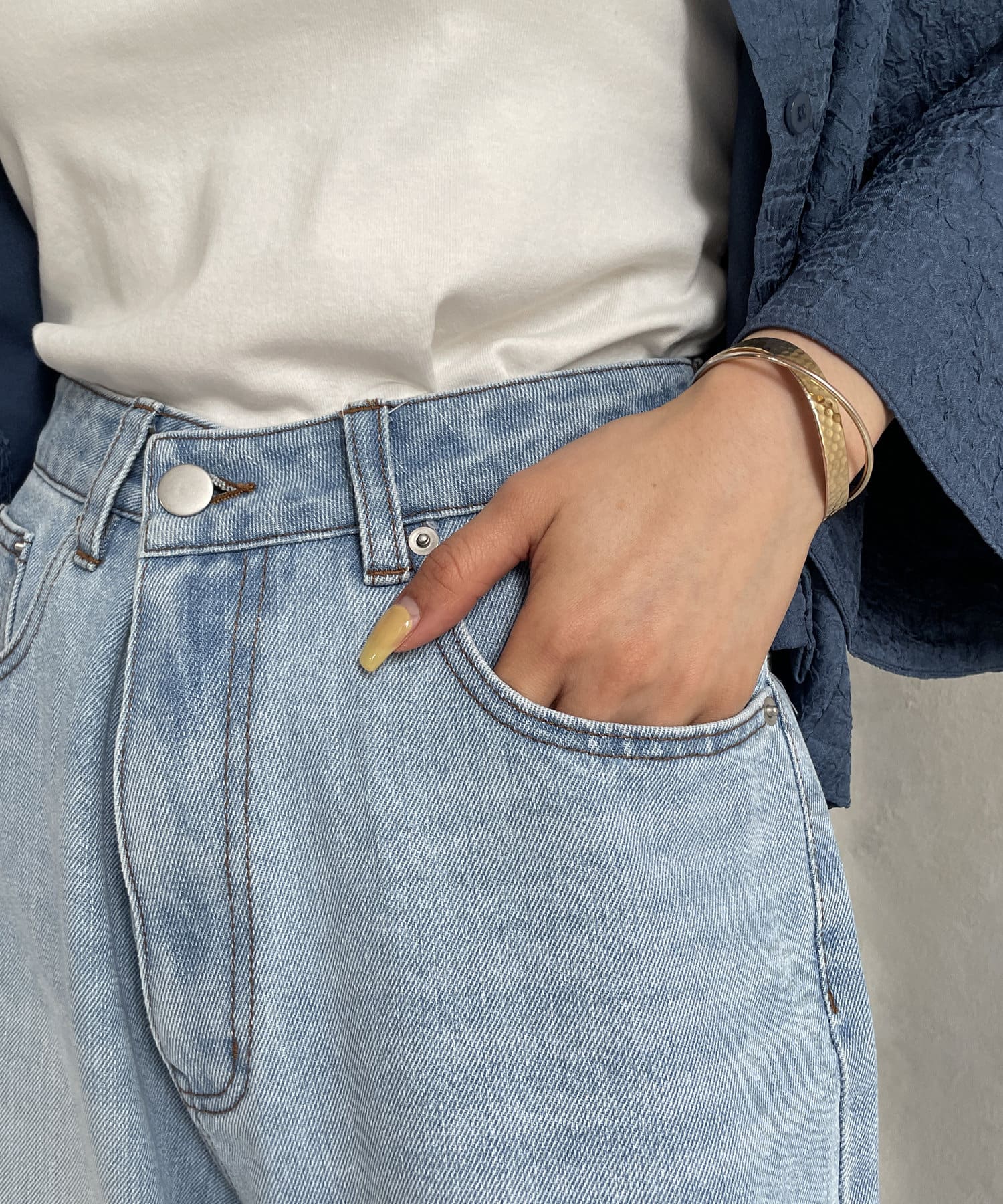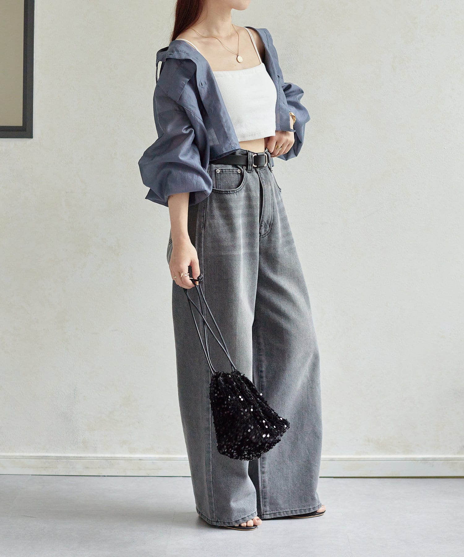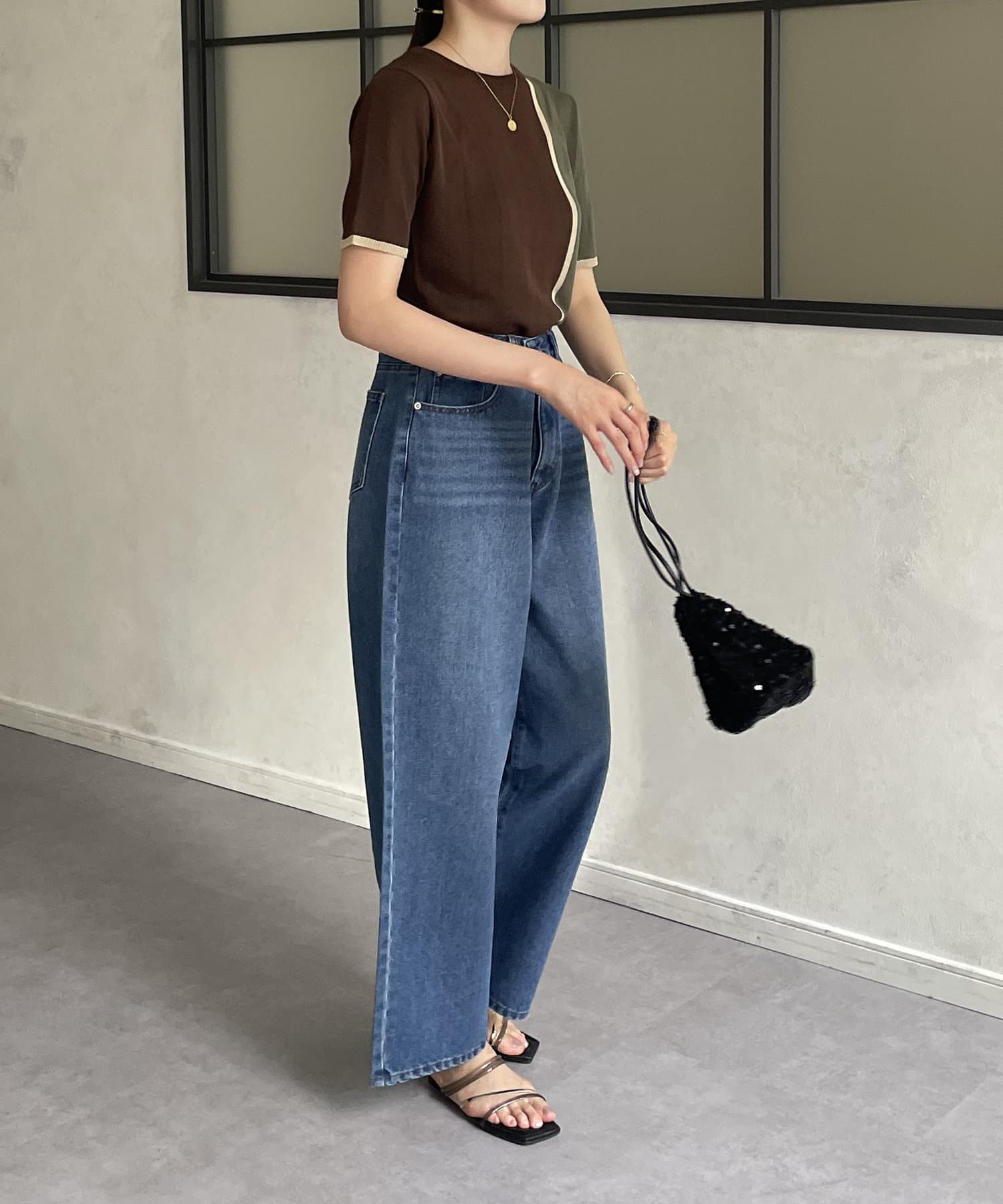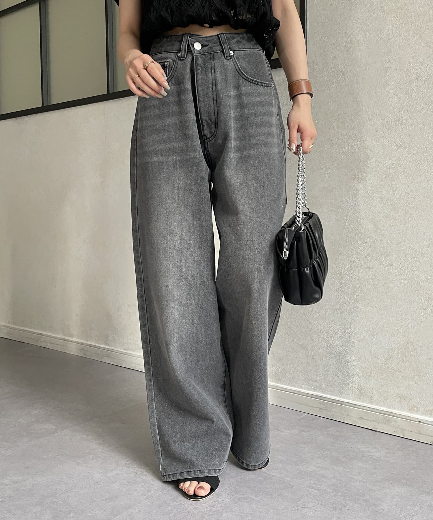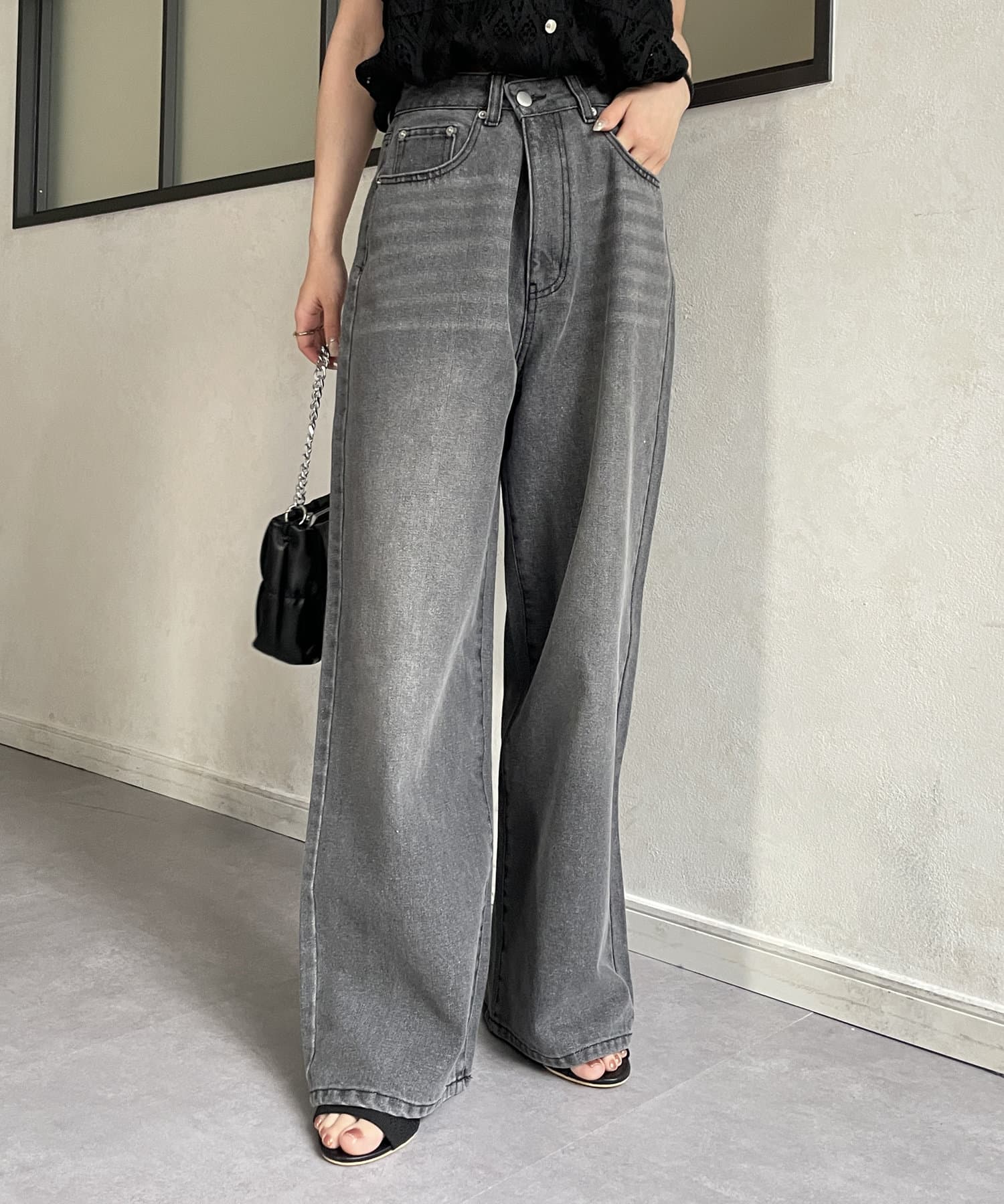 【2サイズ展開/身長別サイズ比較動画あり】ハイウエストワイドデニム