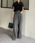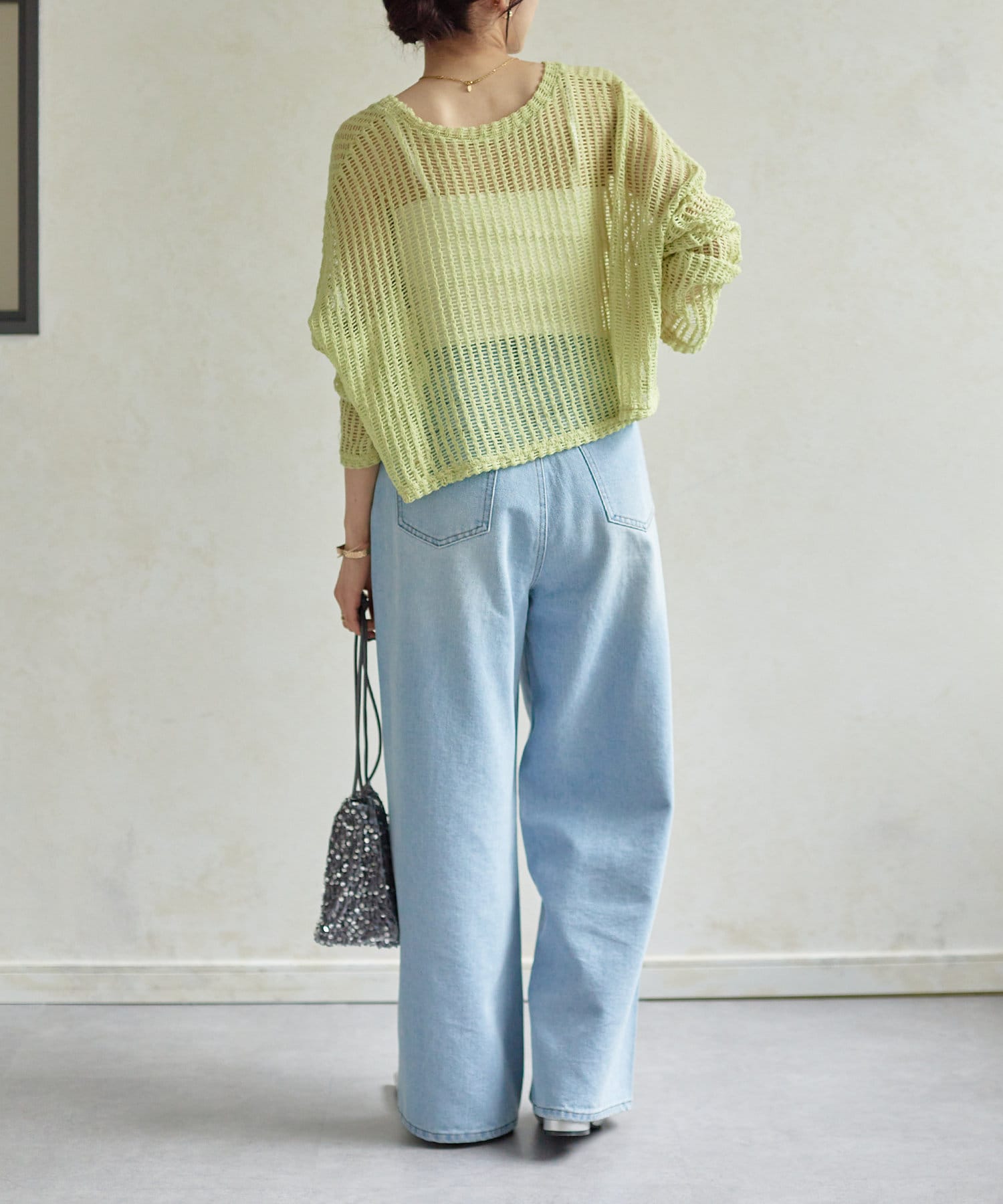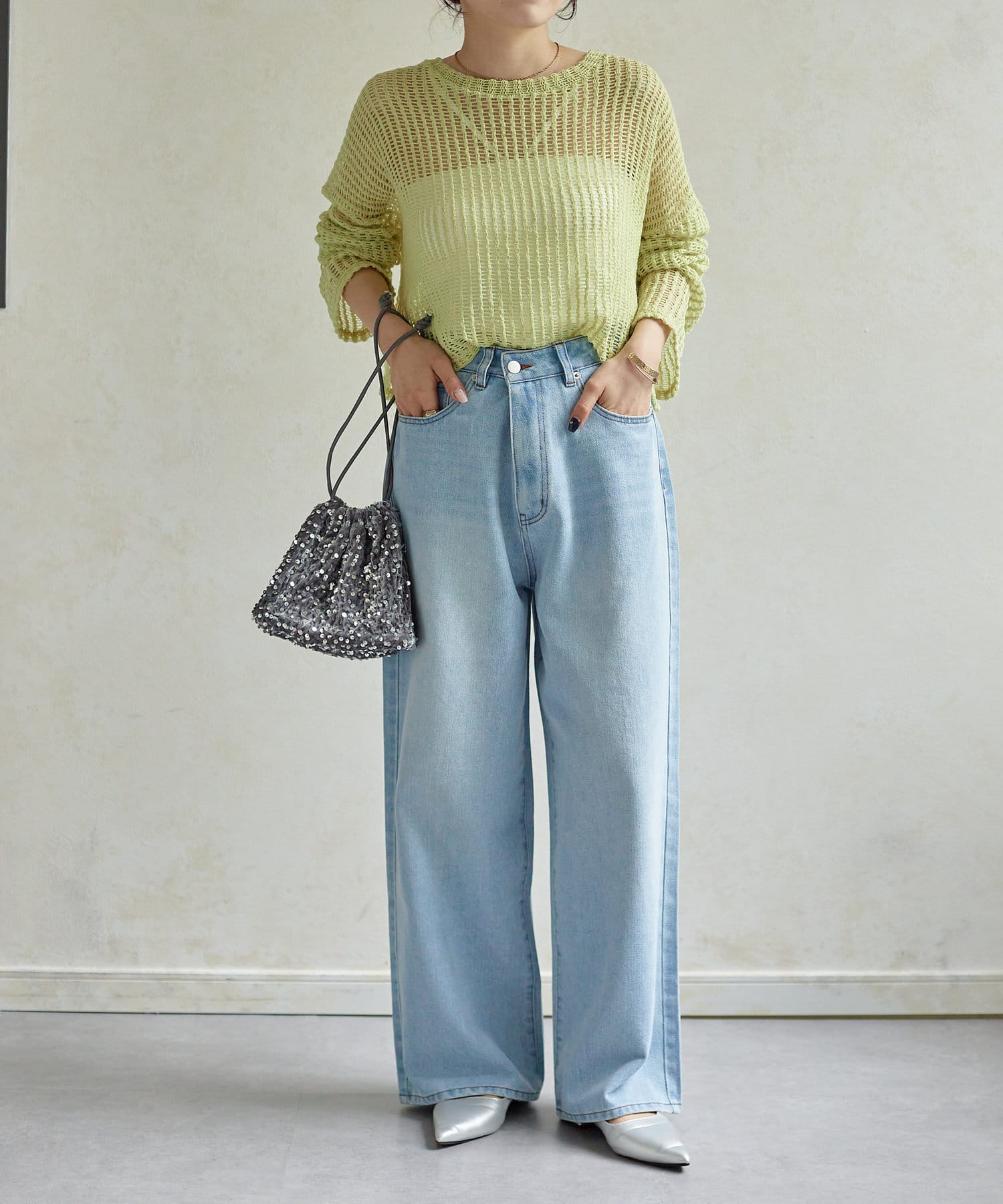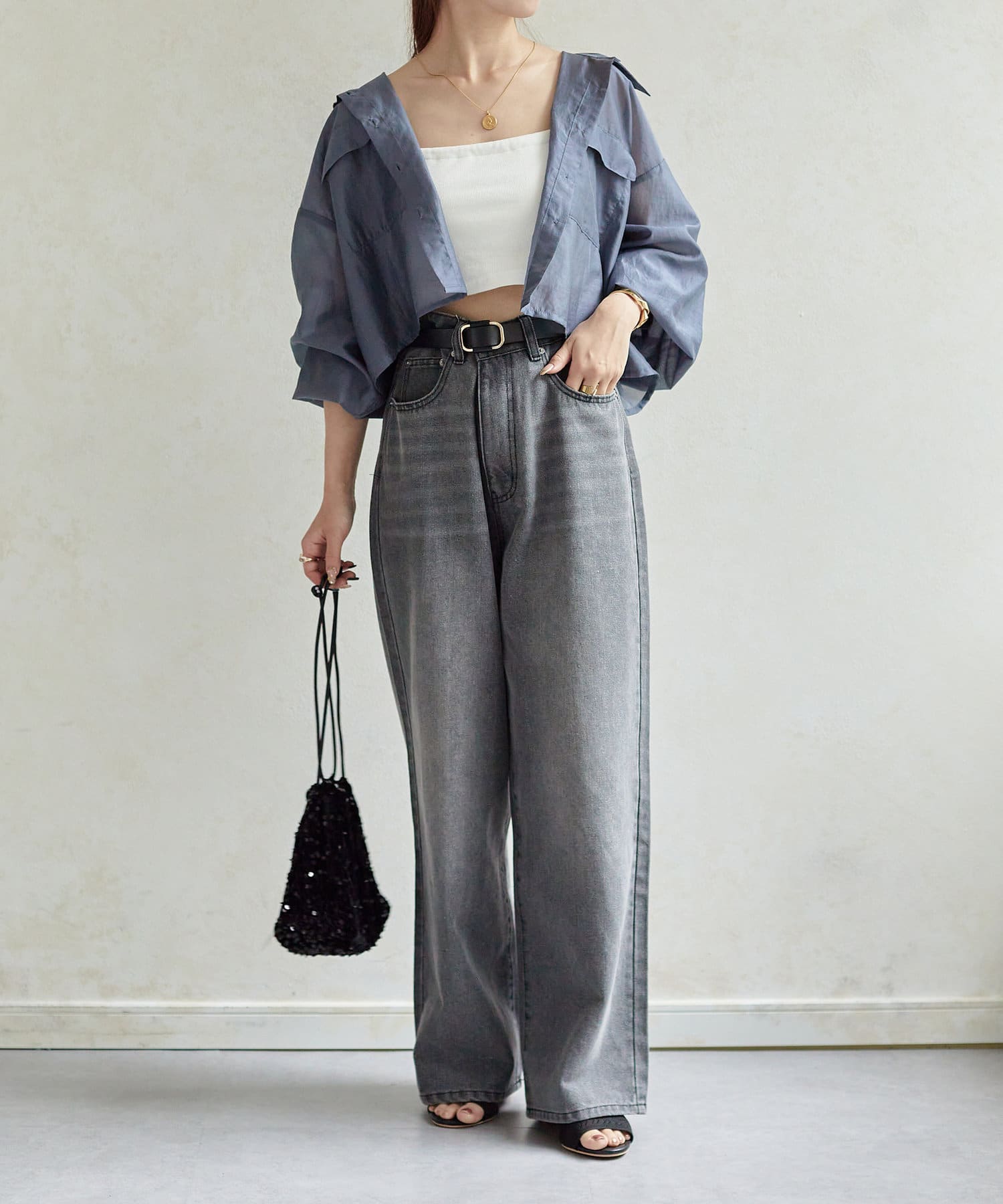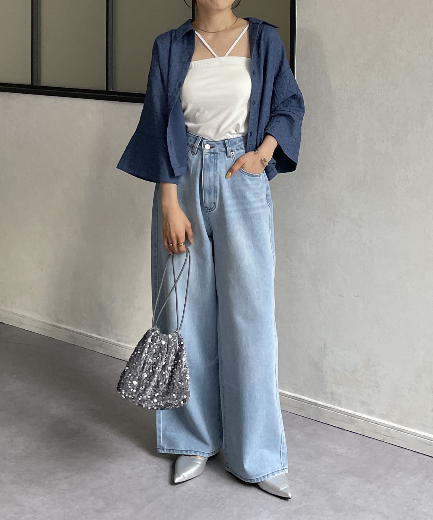 【2サイズ展開/身長別サイズ比較動画あり】ハイウエストワイドデニム