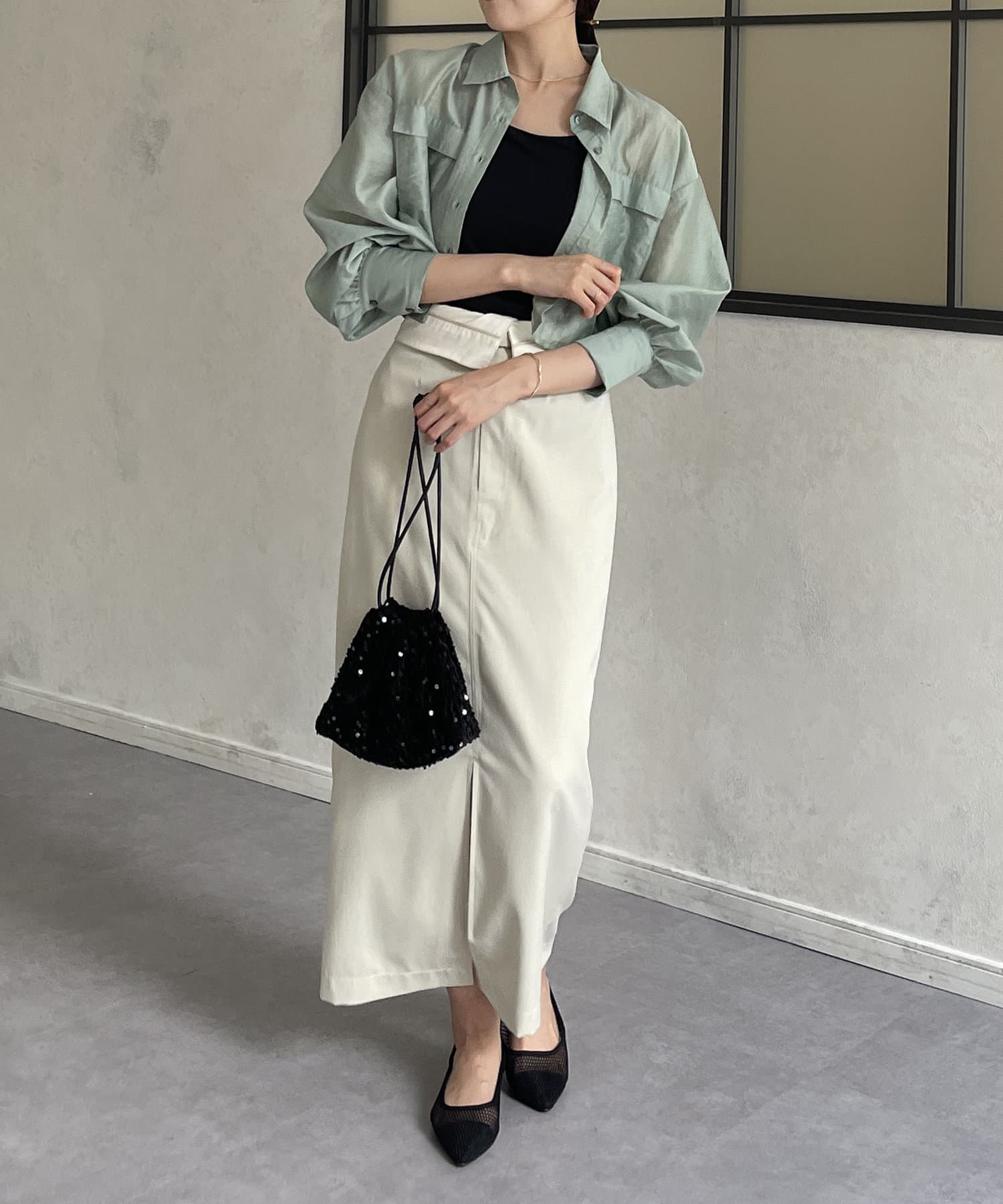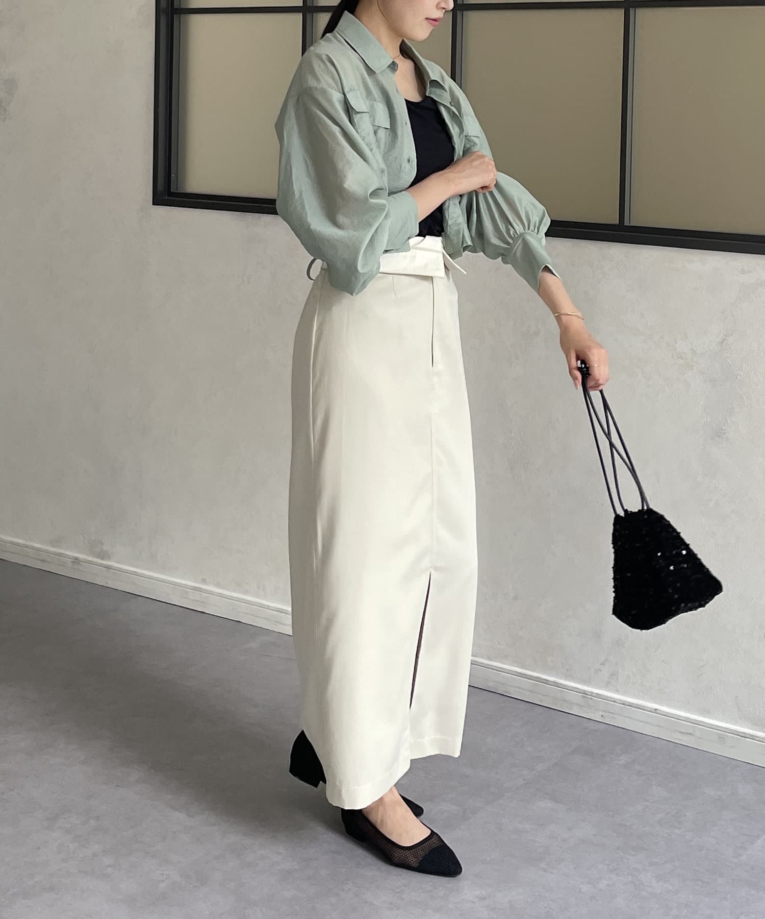 スカートに合わせてきれいめにも着れる万能シャツです!