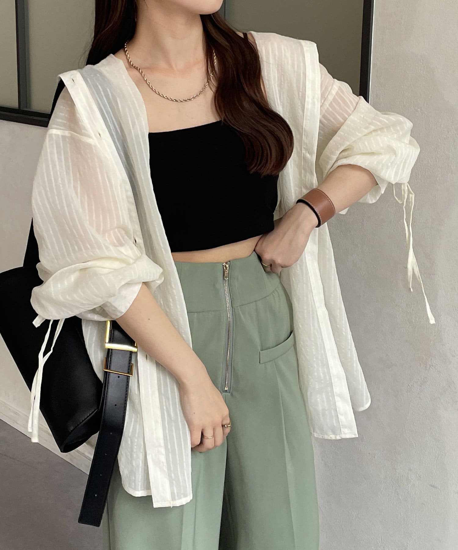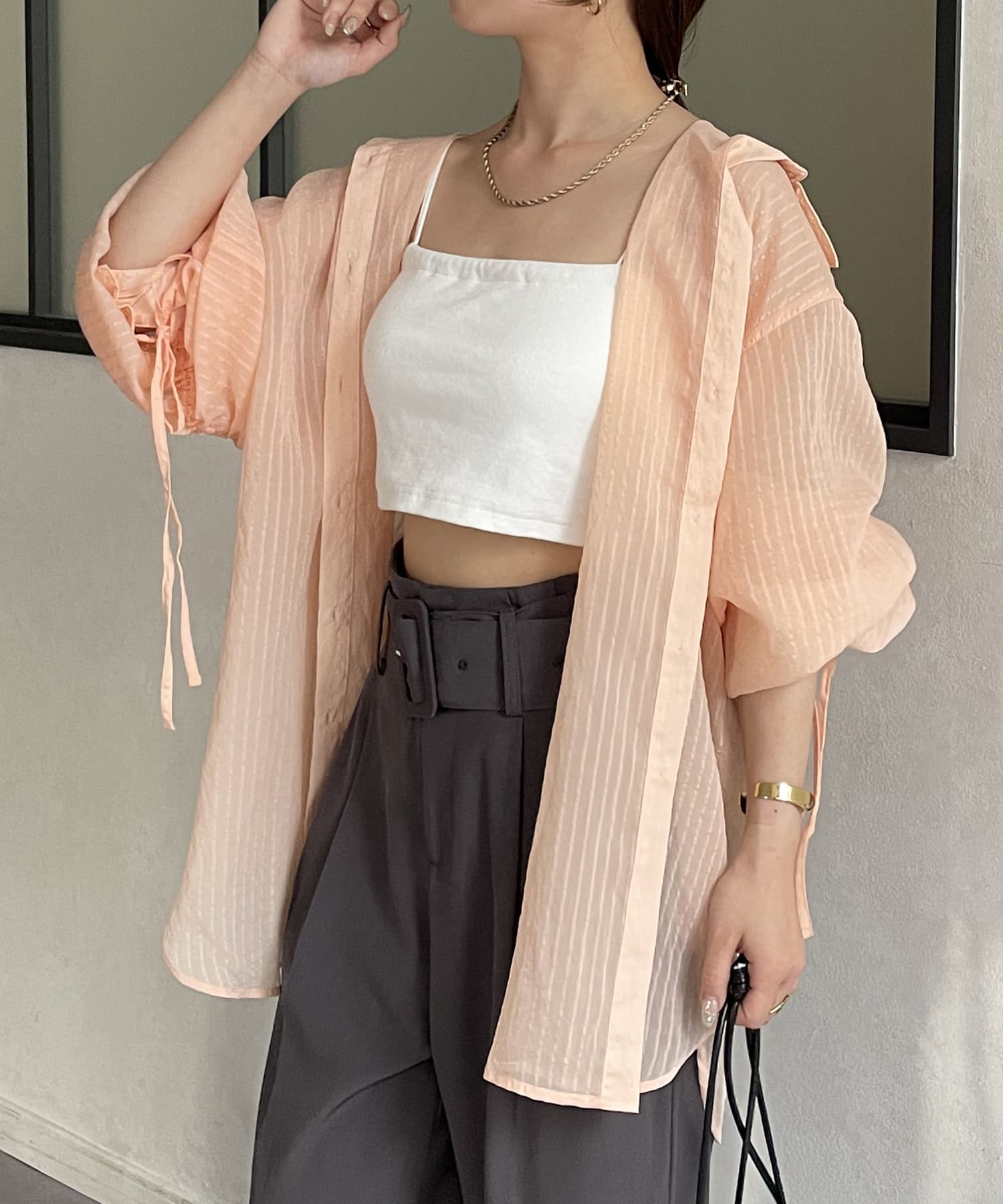 ・キャミソールやタンクトップの上に羽織って