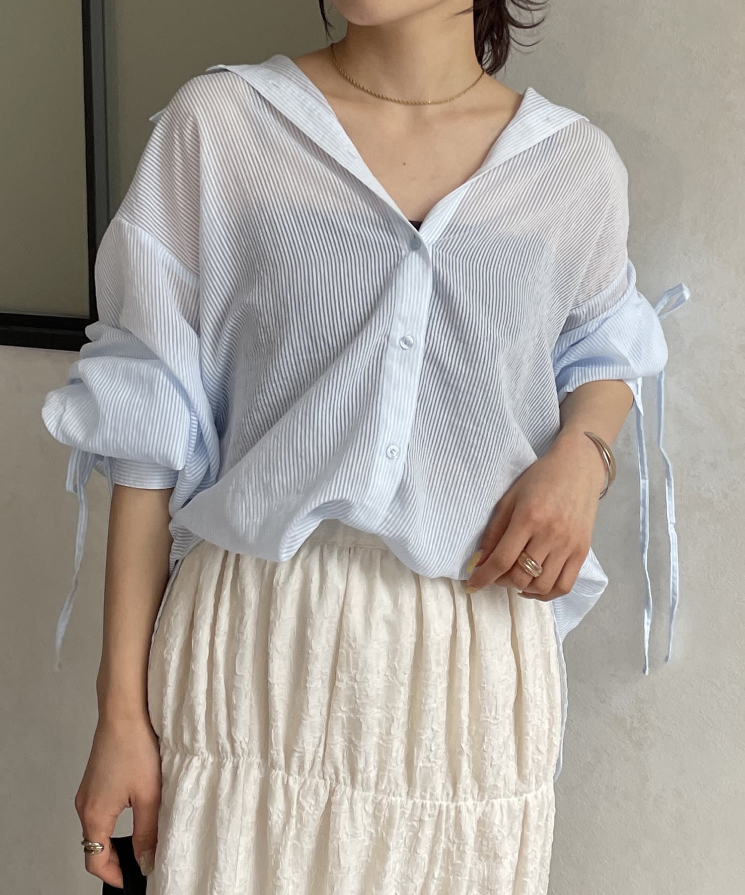 #ストライプ #シアー #シャツ #透け感 #肌見せ