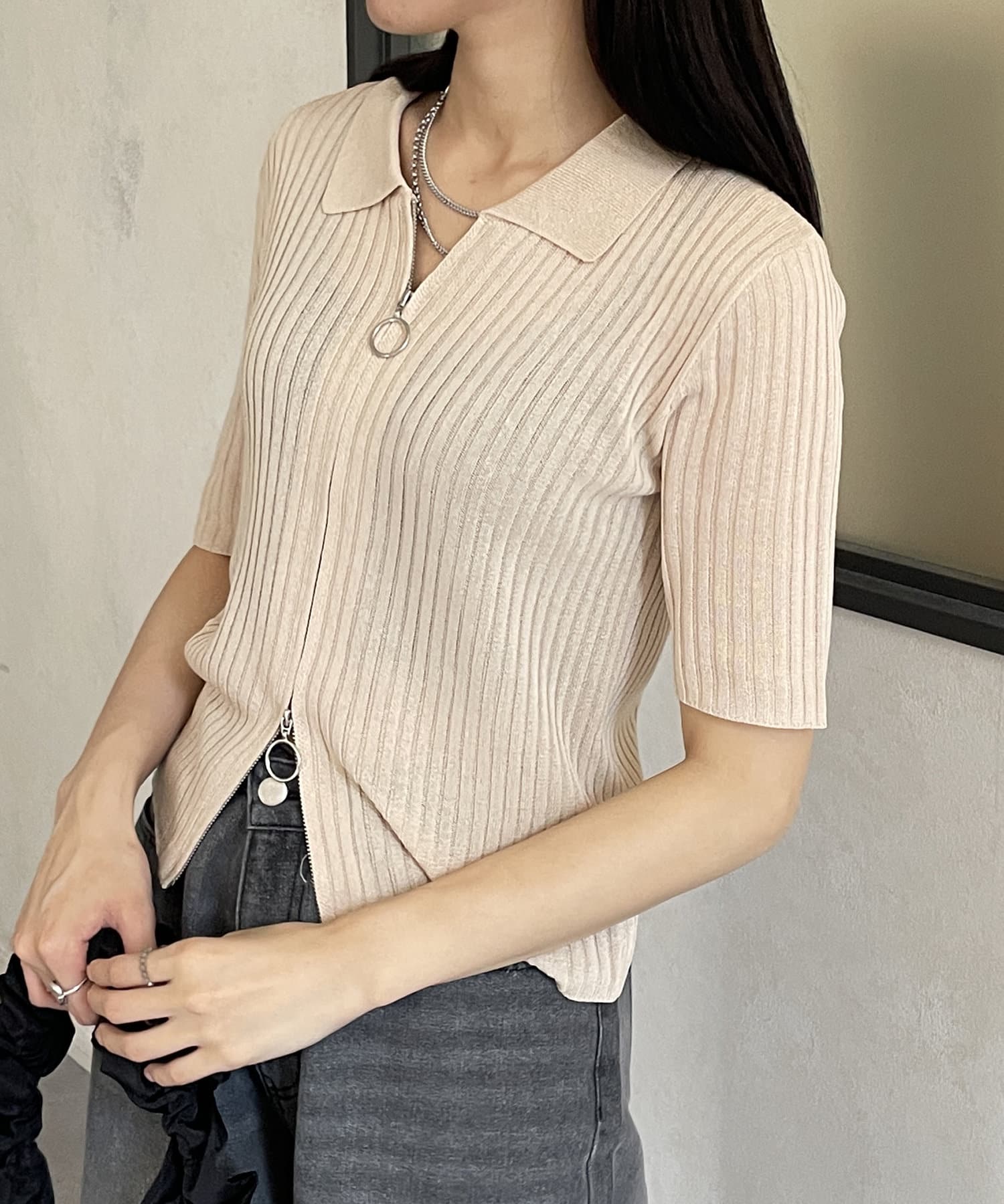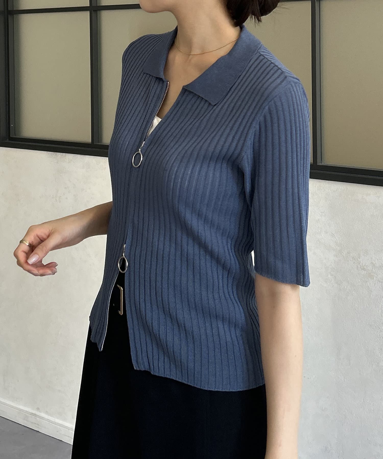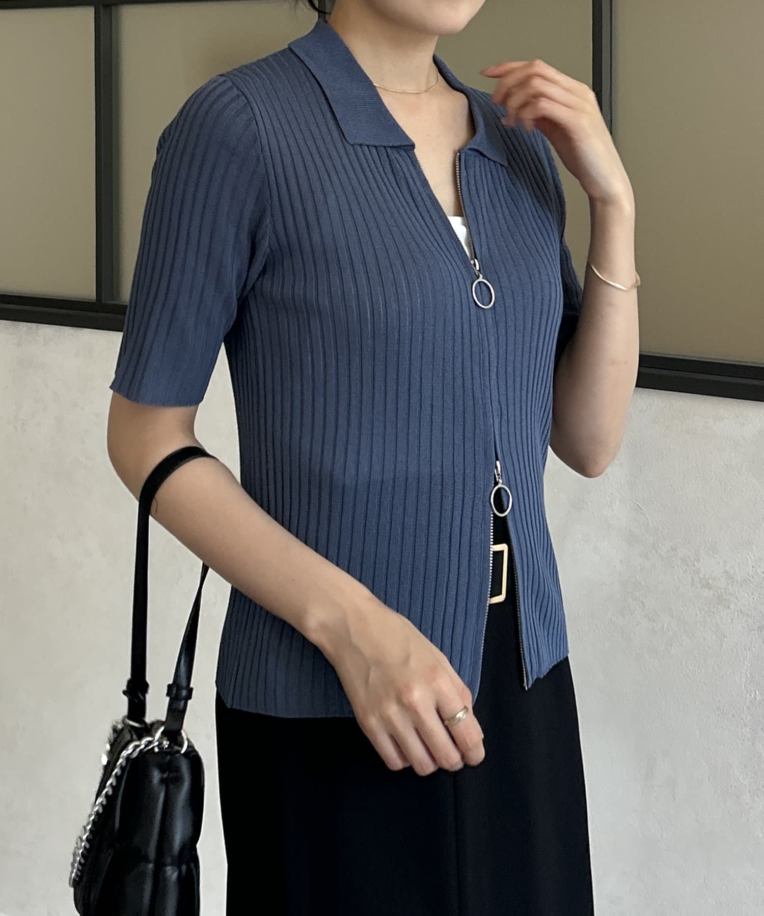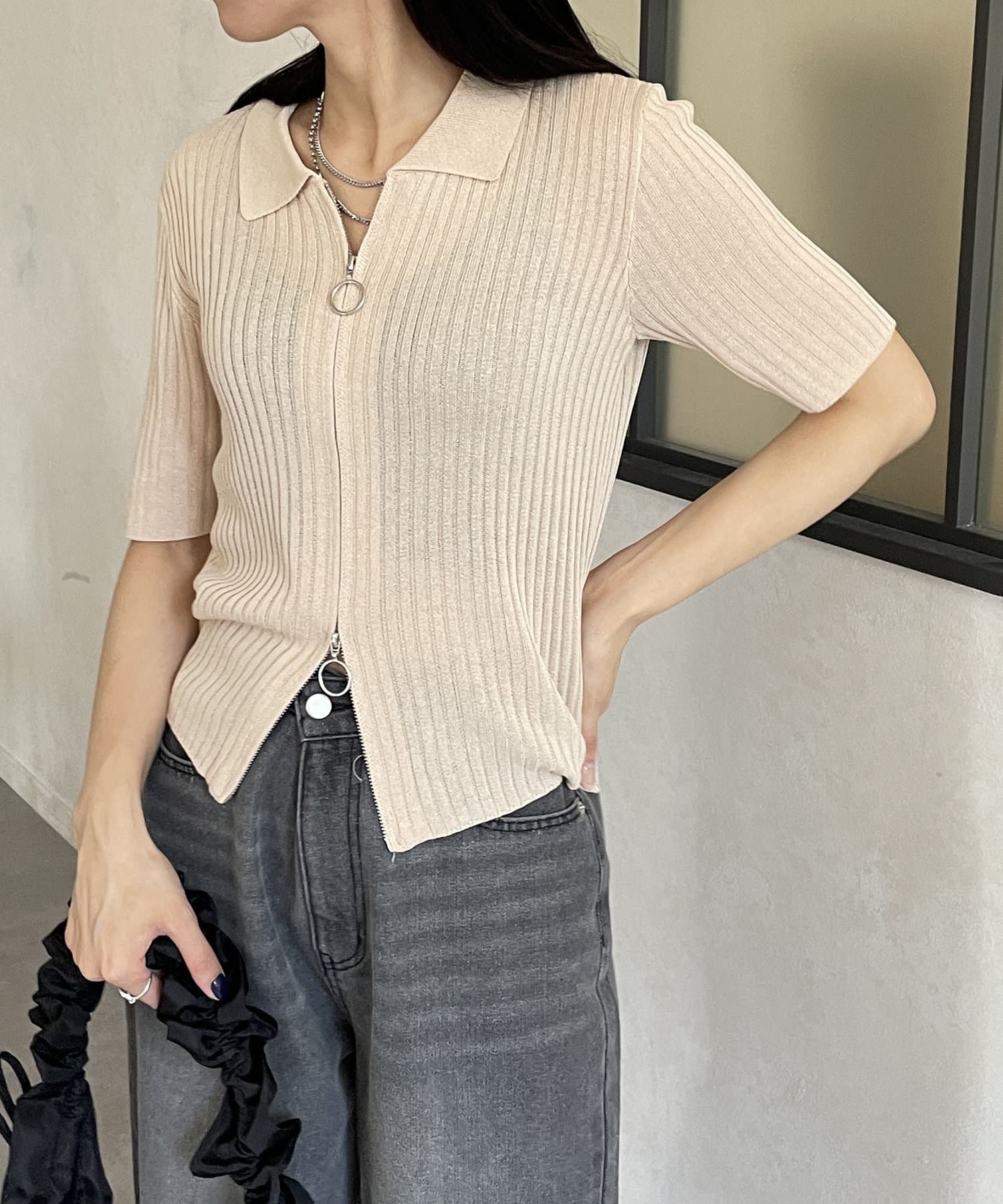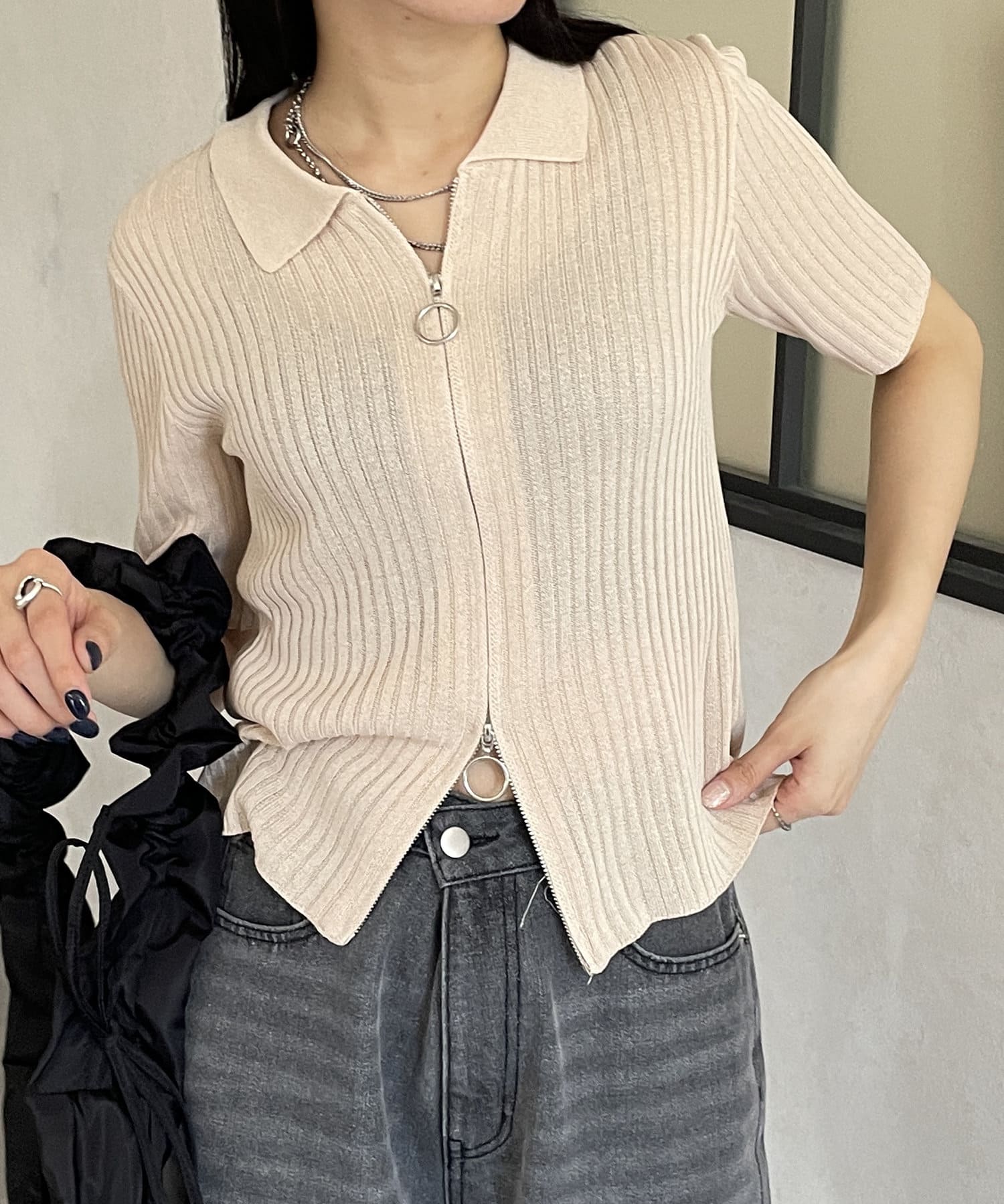 #襟付きニット #ダブルジップ #春夏ニット #半袖ニット