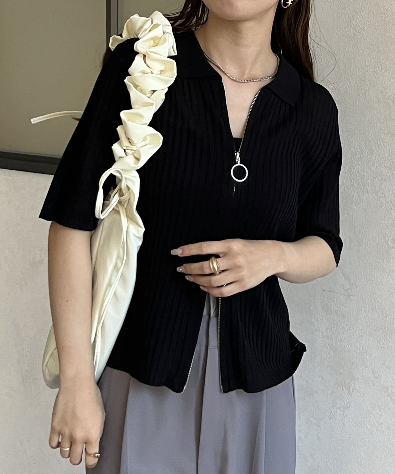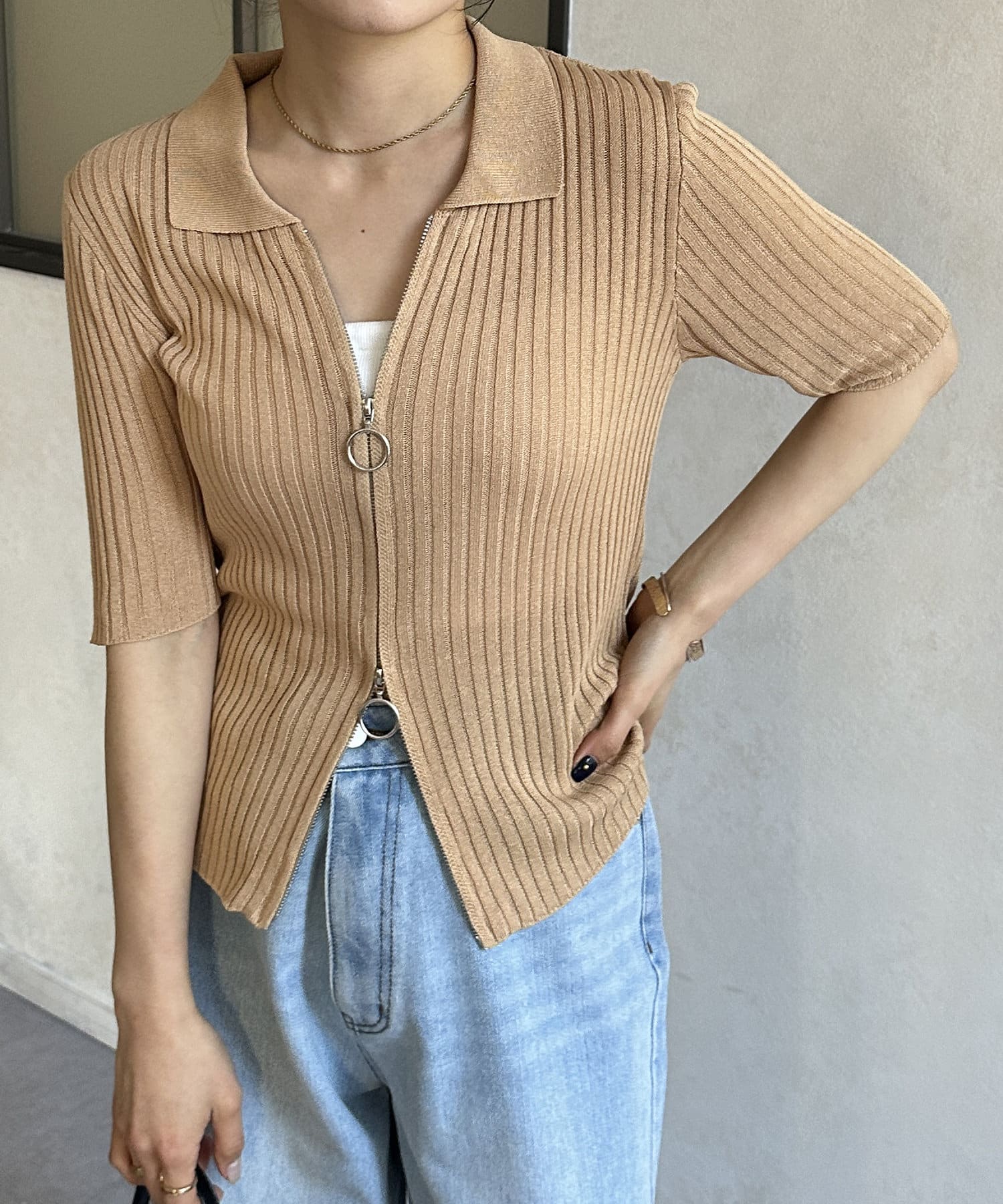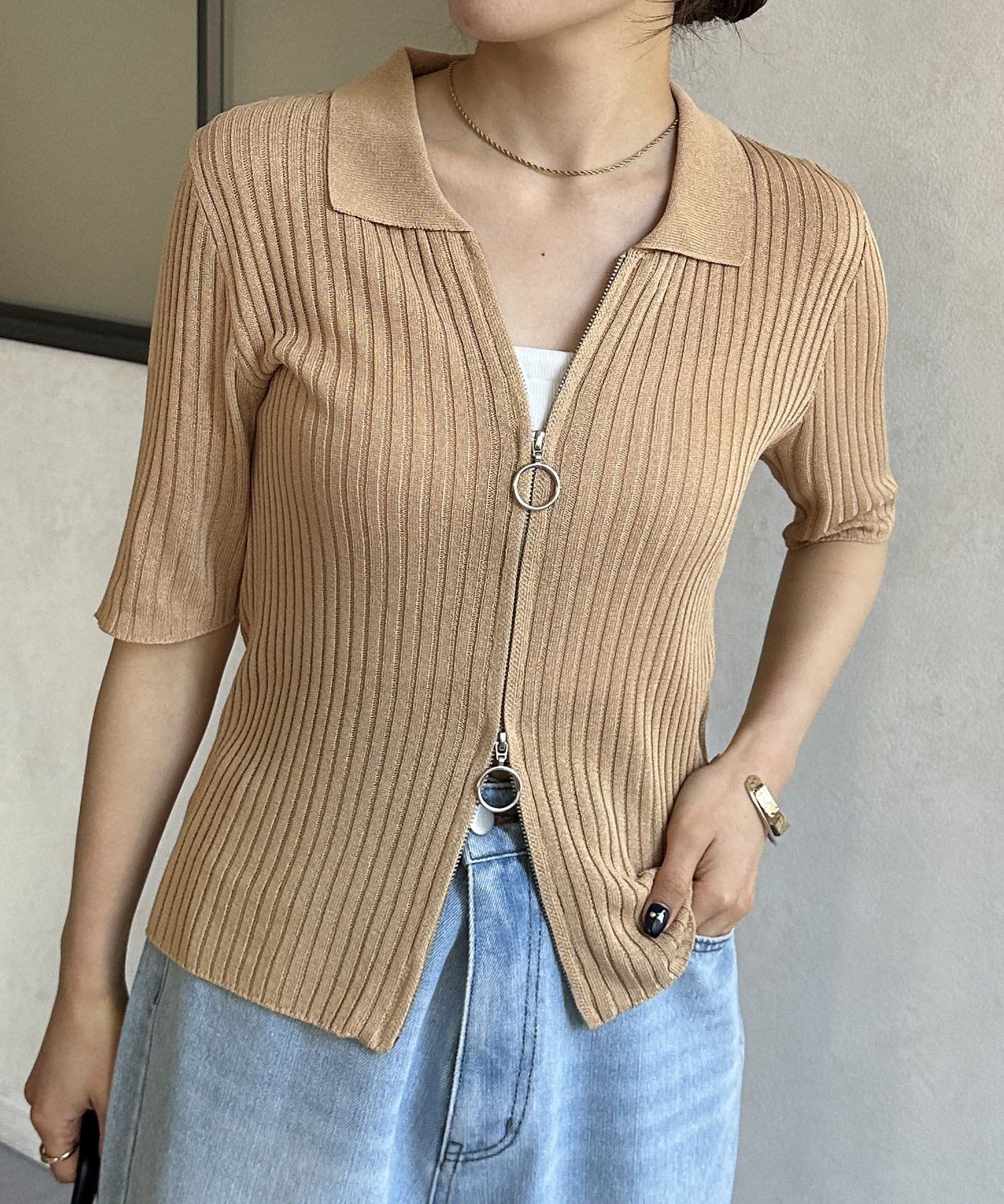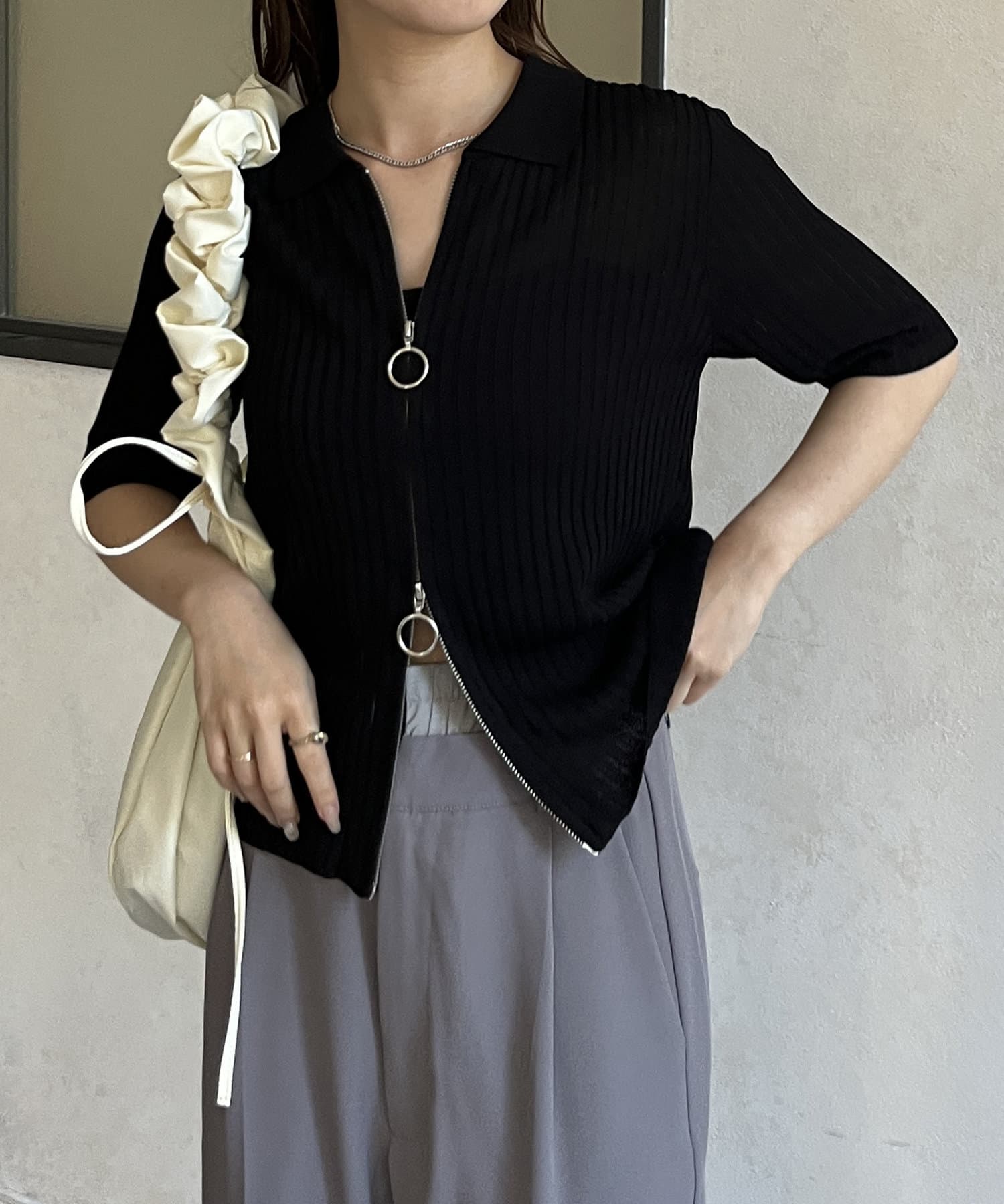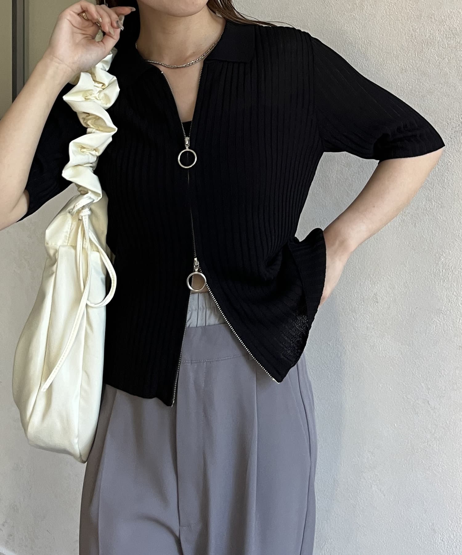 #襟付きニット #ダブルジップ #春夏ニット #半袖ニット