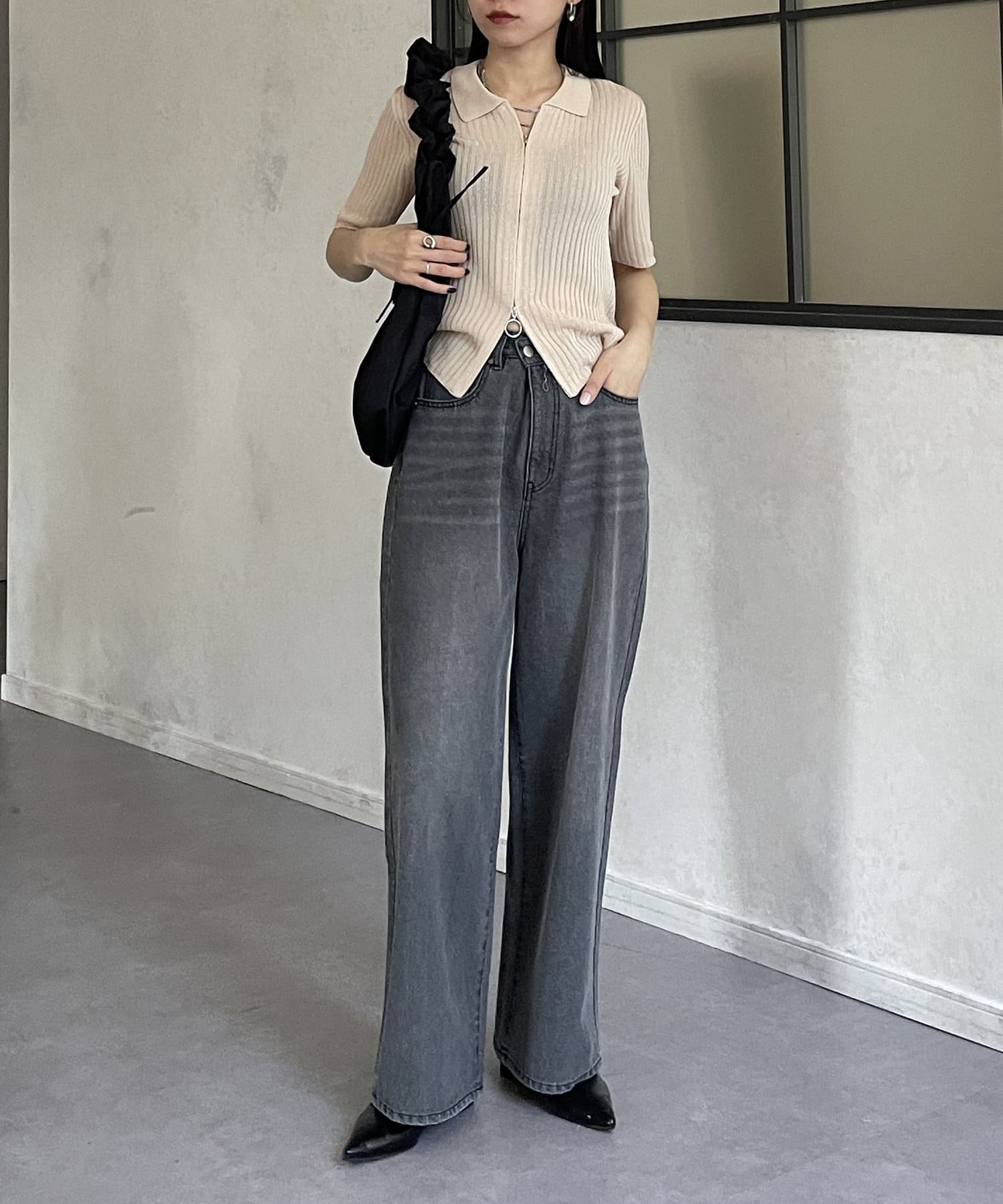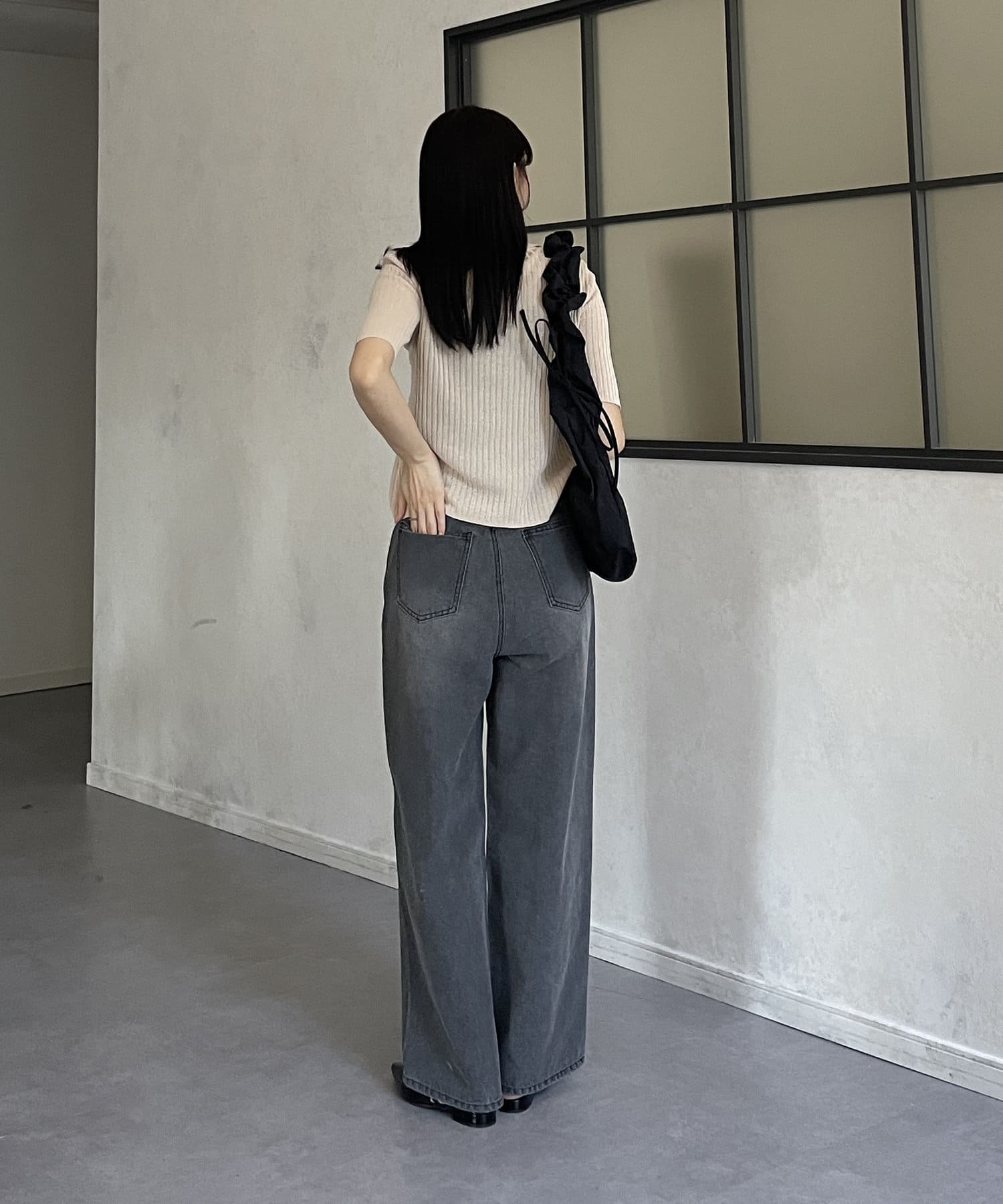 タイトなシルエットなのでワイドデニムやカーゴパンツとも