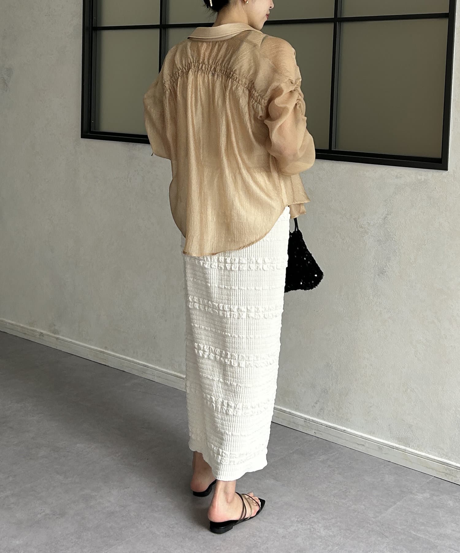 シンプルなブラウスやTシャツと合わせるのがおすすめです◎