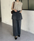 ・春夏はブラウスやTシャツ、秋冬はニットを合わせて