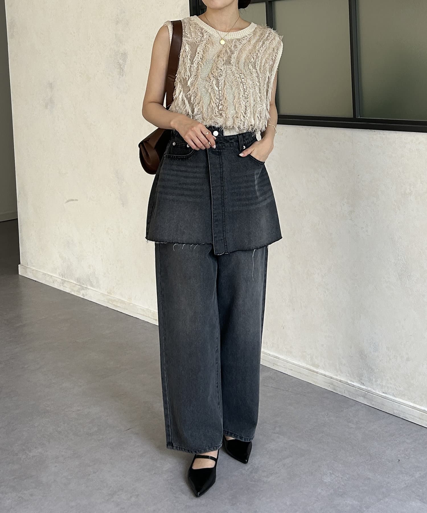 ・スカートの切りっぱなし加工がラフな雰囲気に