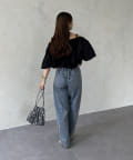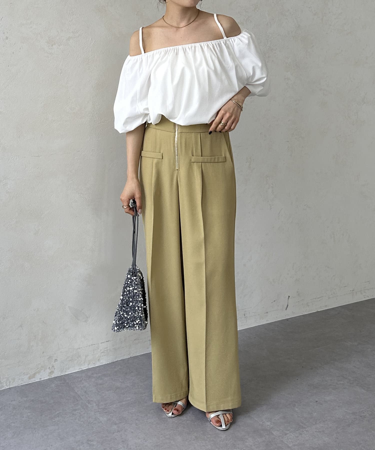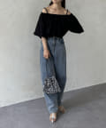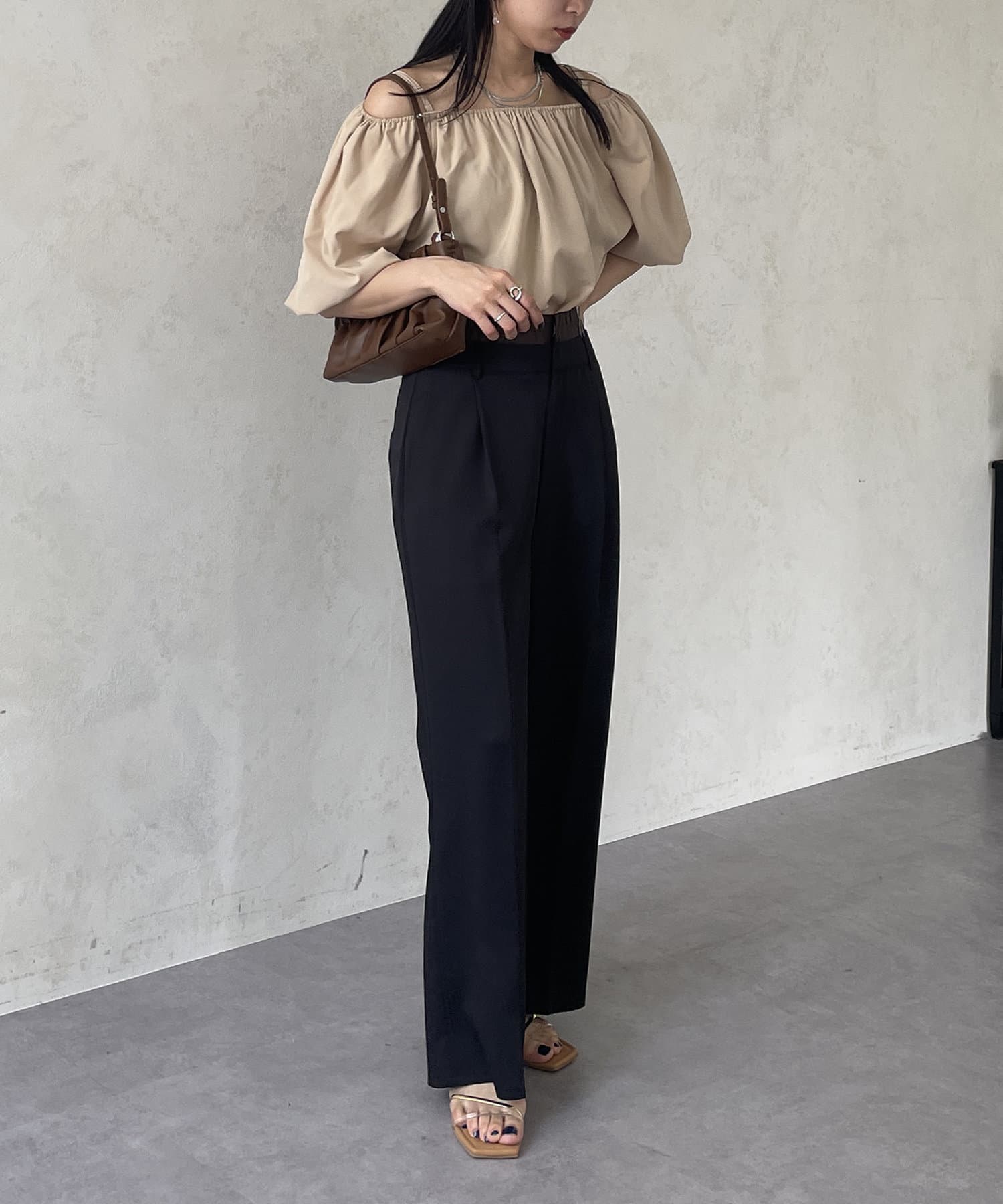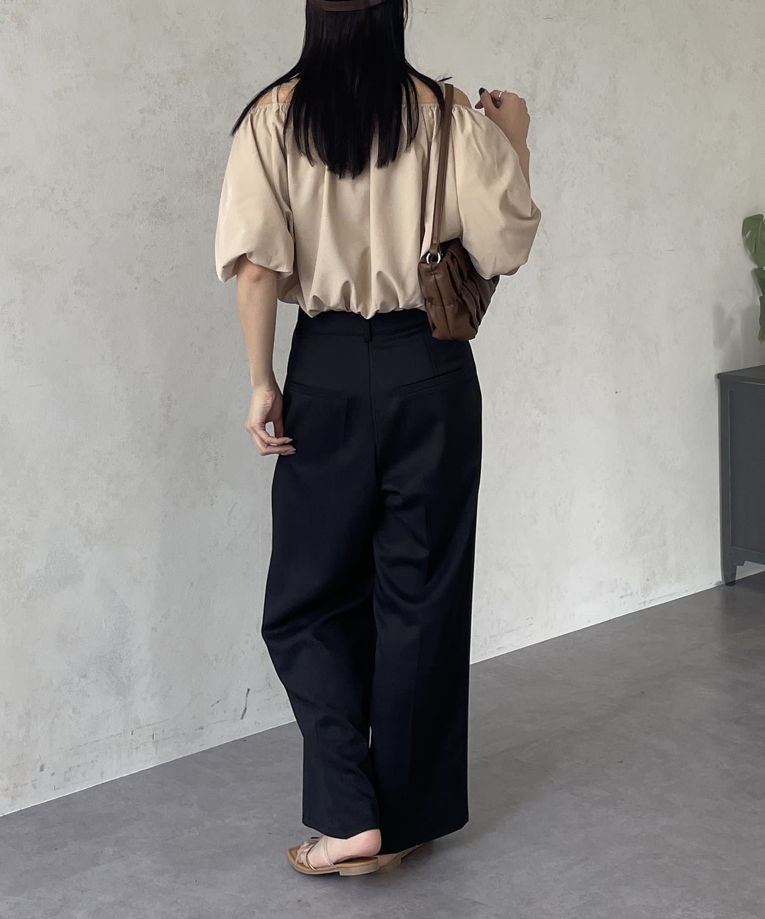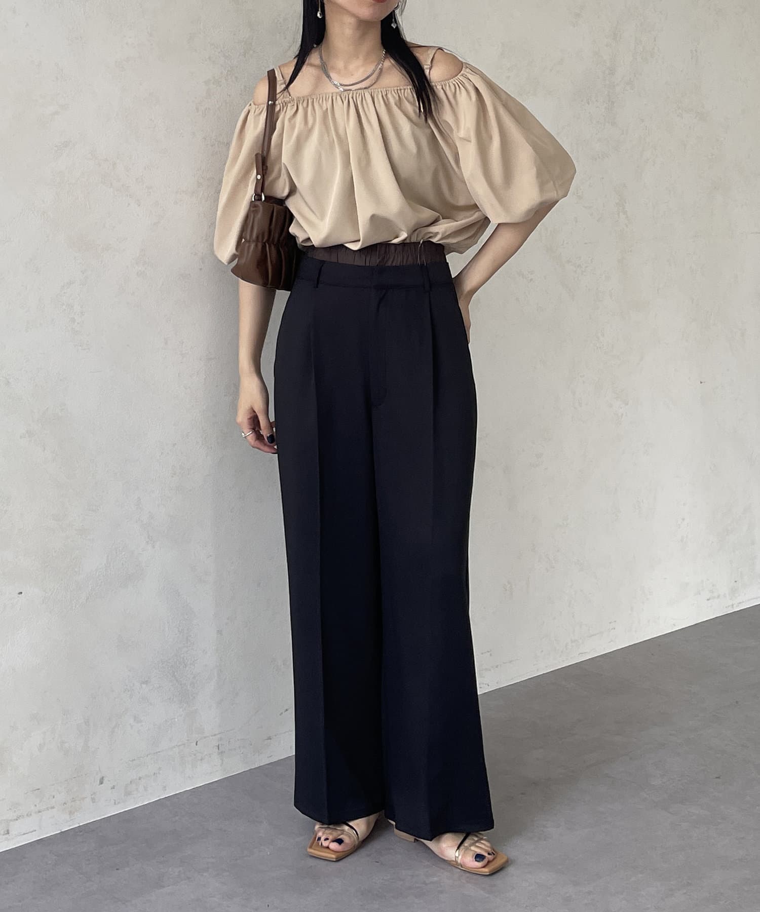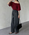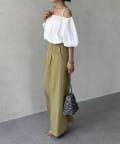 ボリュームのあるブラウスなので、ボトムスはすっきりしたものが◎