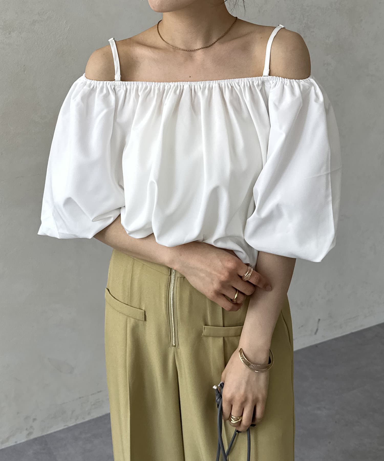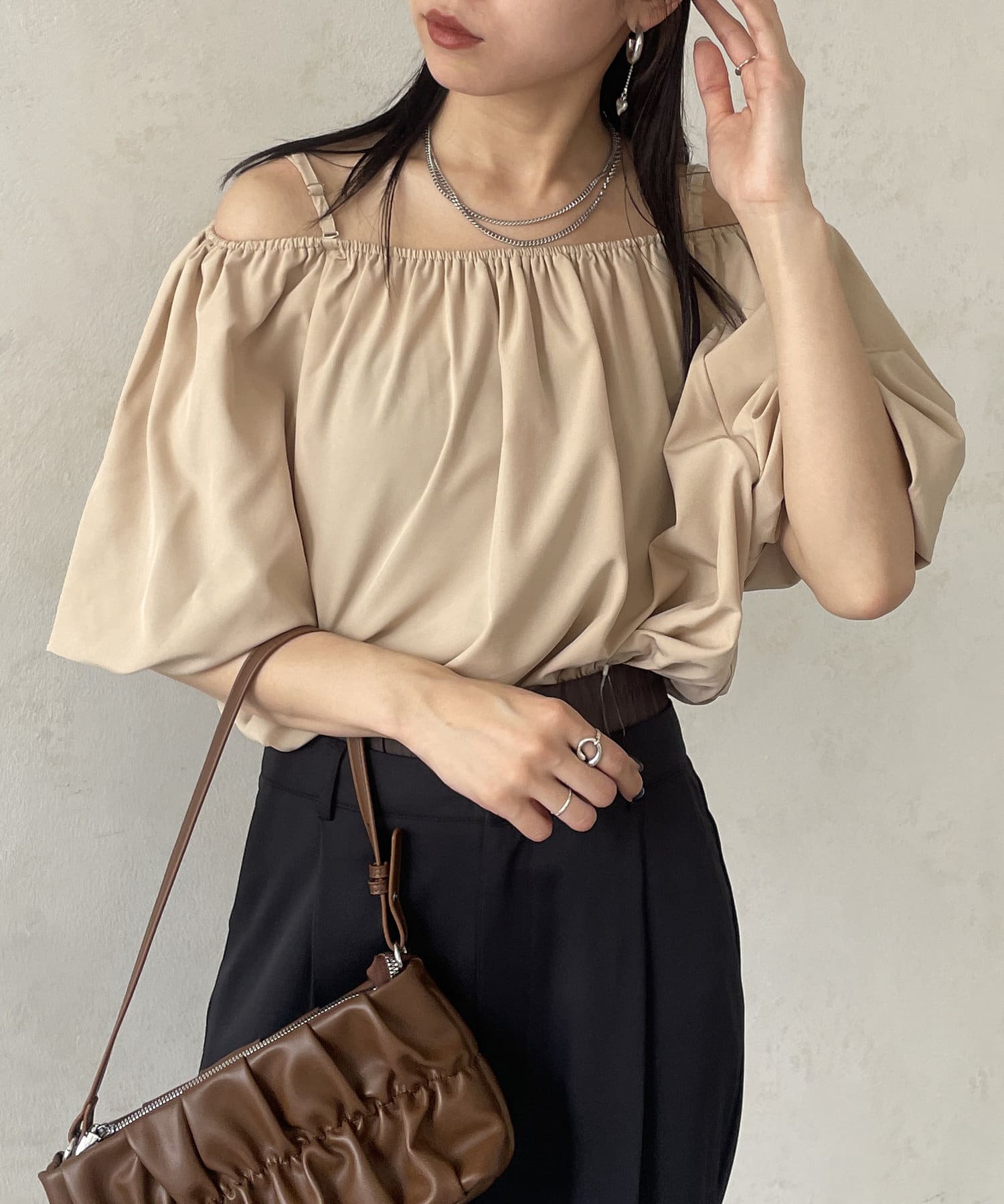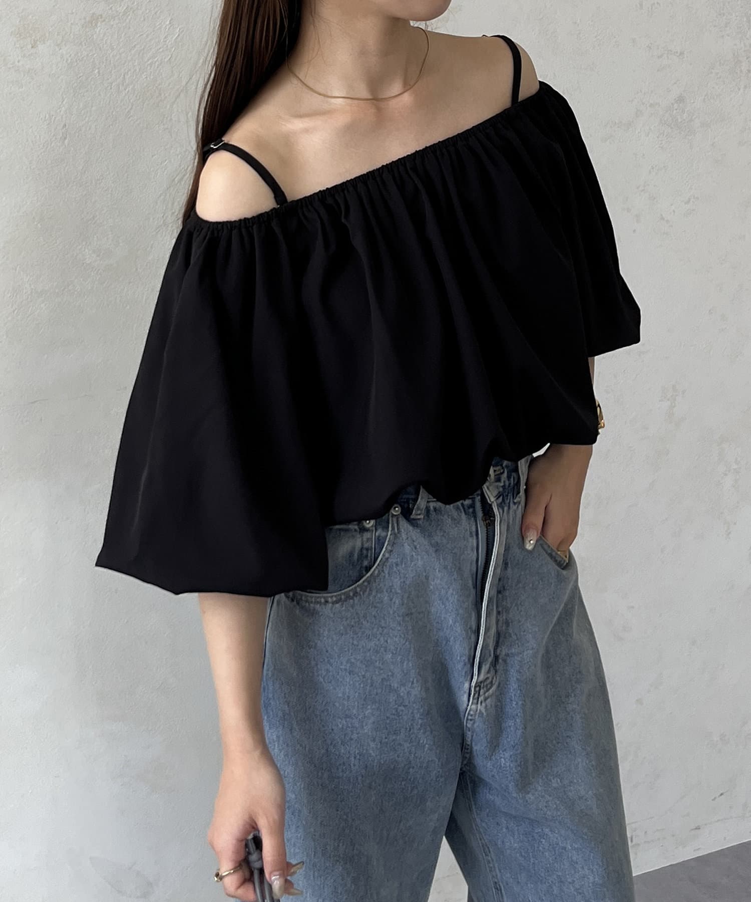 オフショルギャザーブラウス