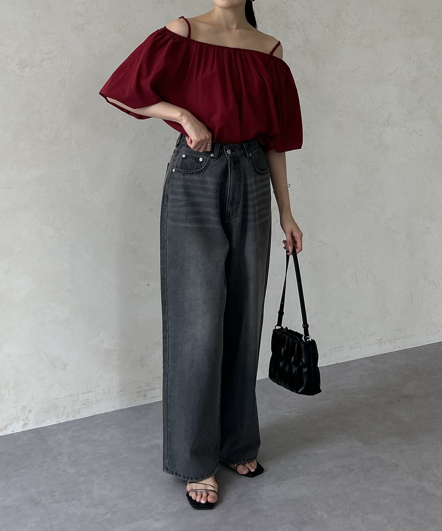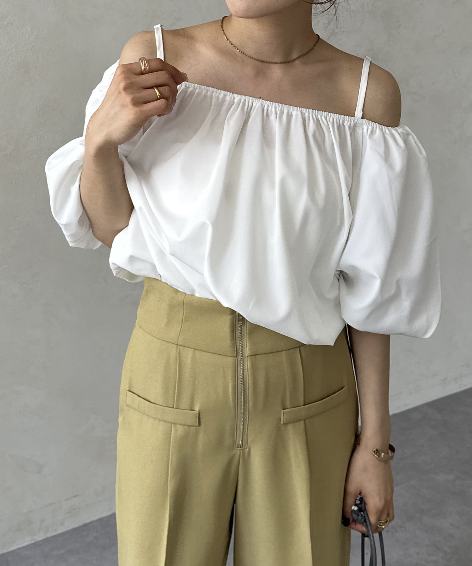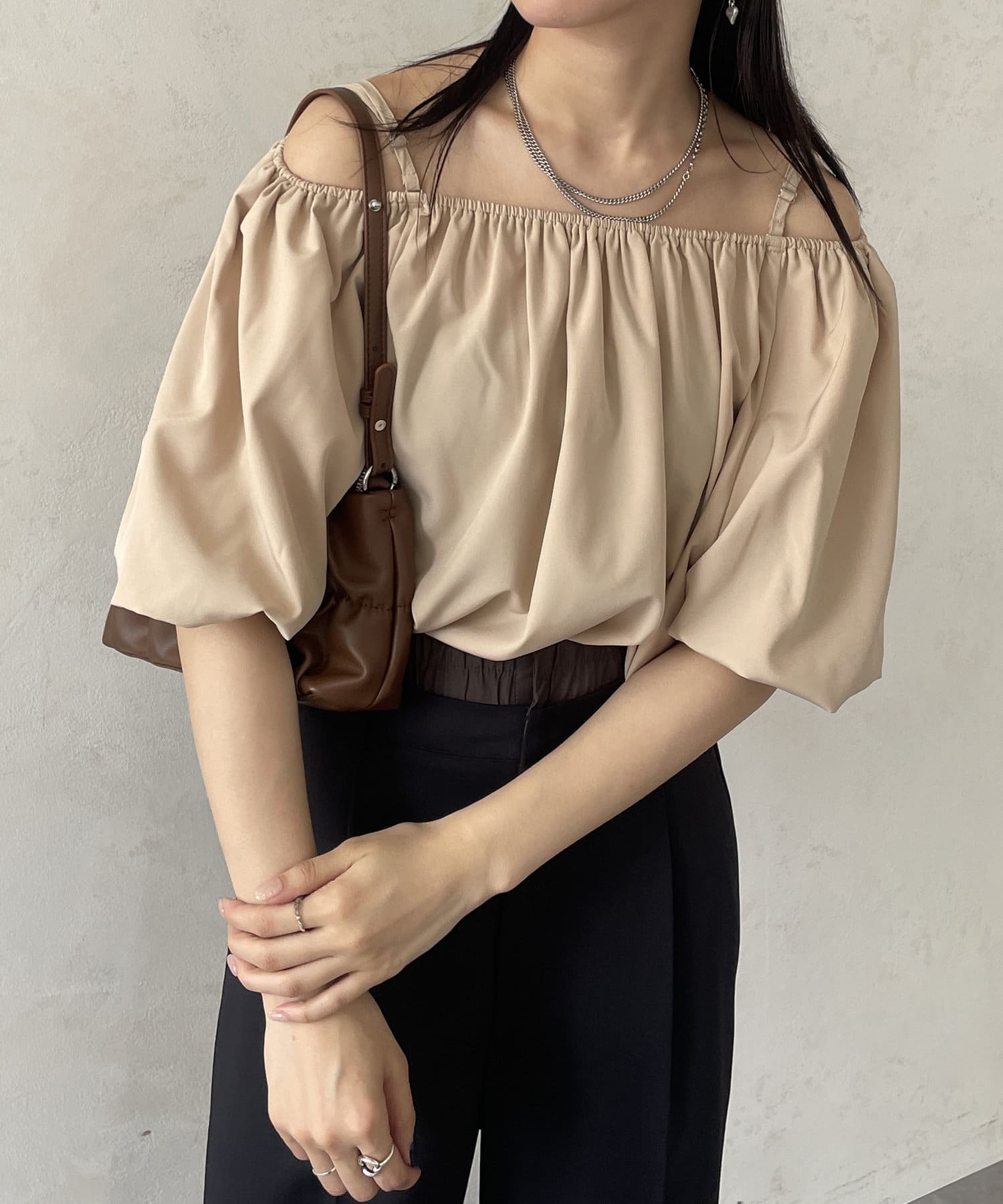 オフショルギャザーブラウス