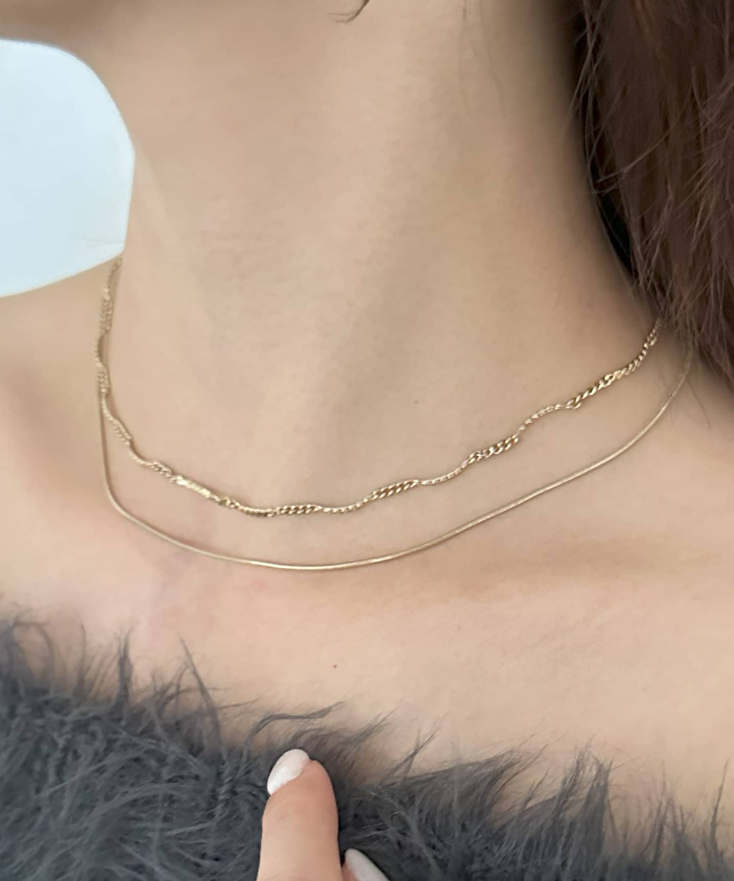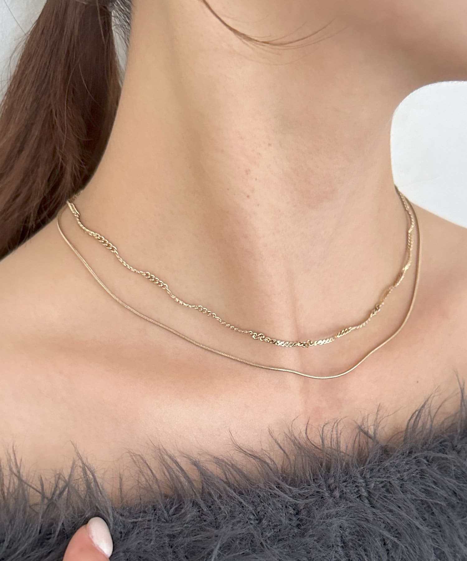 ・2種類の異なるチェーンを組み合わせたデザインネックレス。