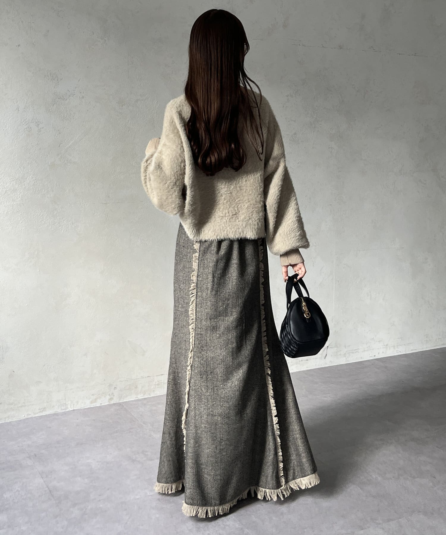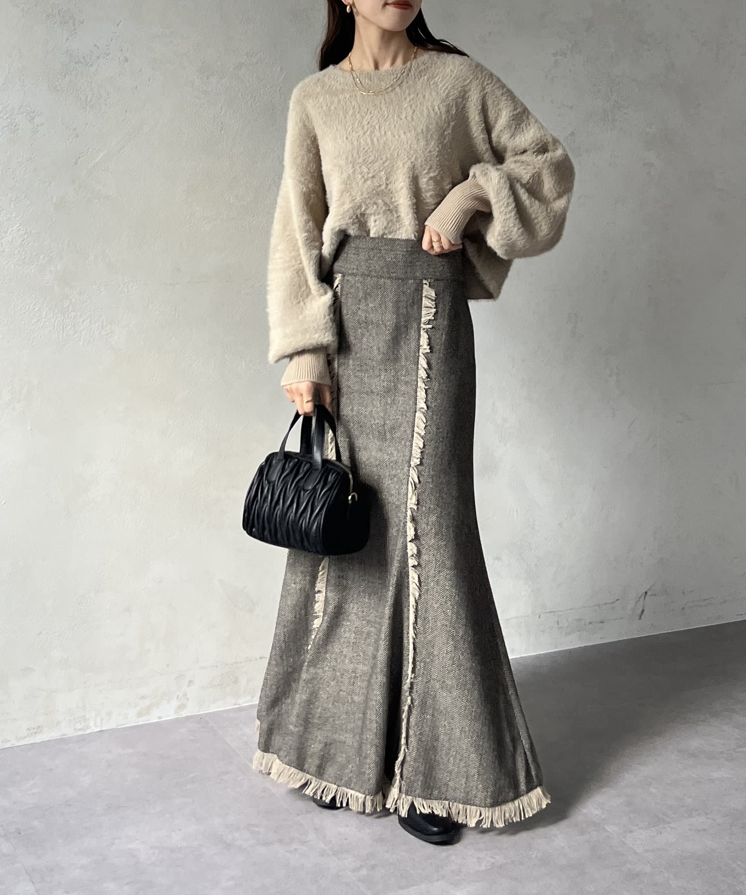 マーメイドスカートでフェミニンにも合わせられる万能トップスです。