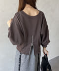 TOP > Thevon. > レディース > トップス > Tシャツ/カットソー > 裾ジップラメ刺繍2WAY裏毛プルオーバー