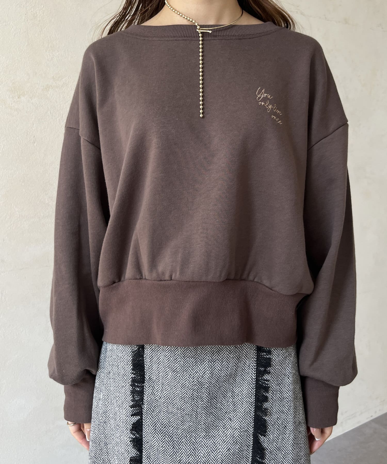 裾ジップラメ刺繍2WAY裏毛プルオーバー