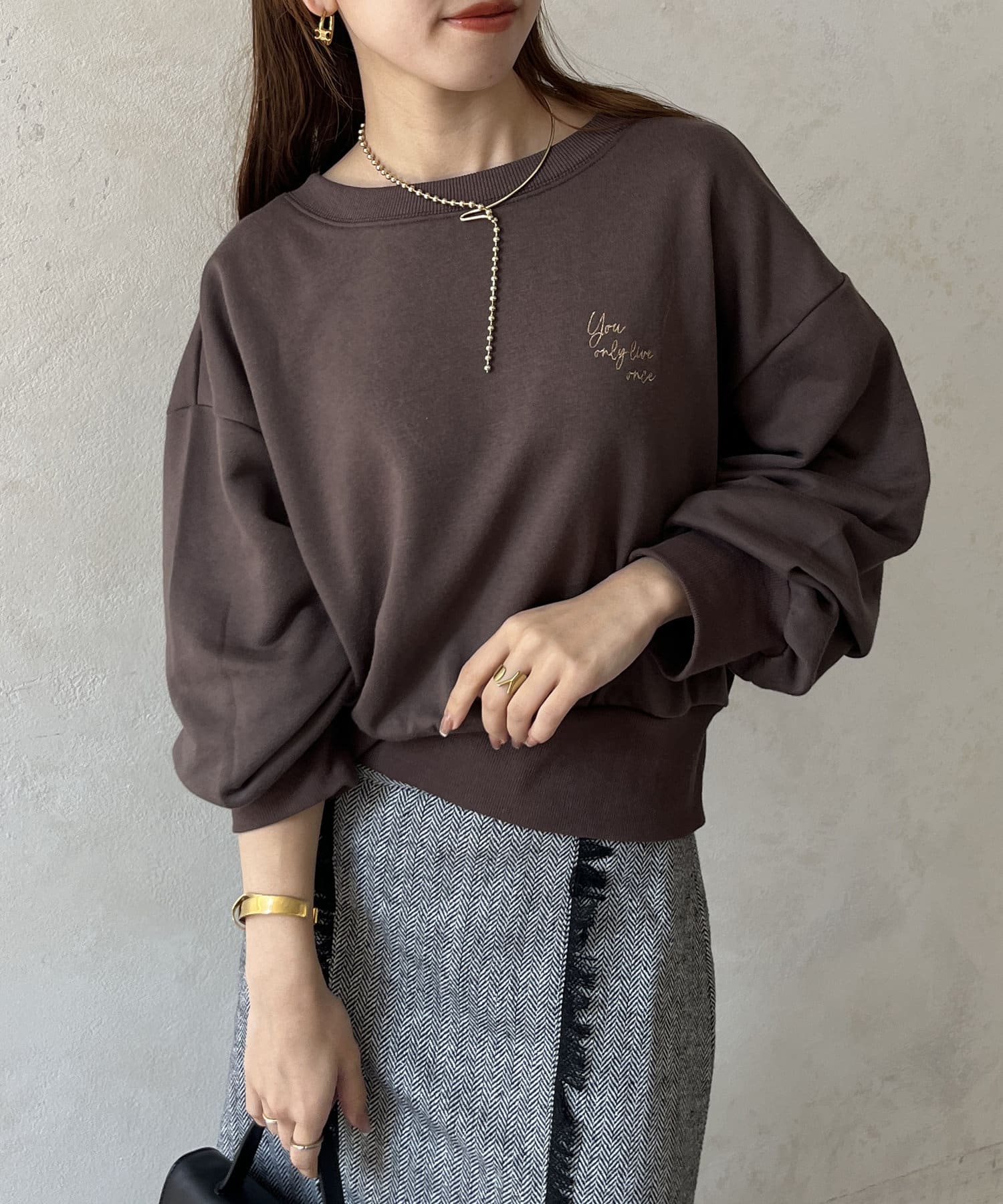 ・胸元のラメ刺繍がワンポイントに
