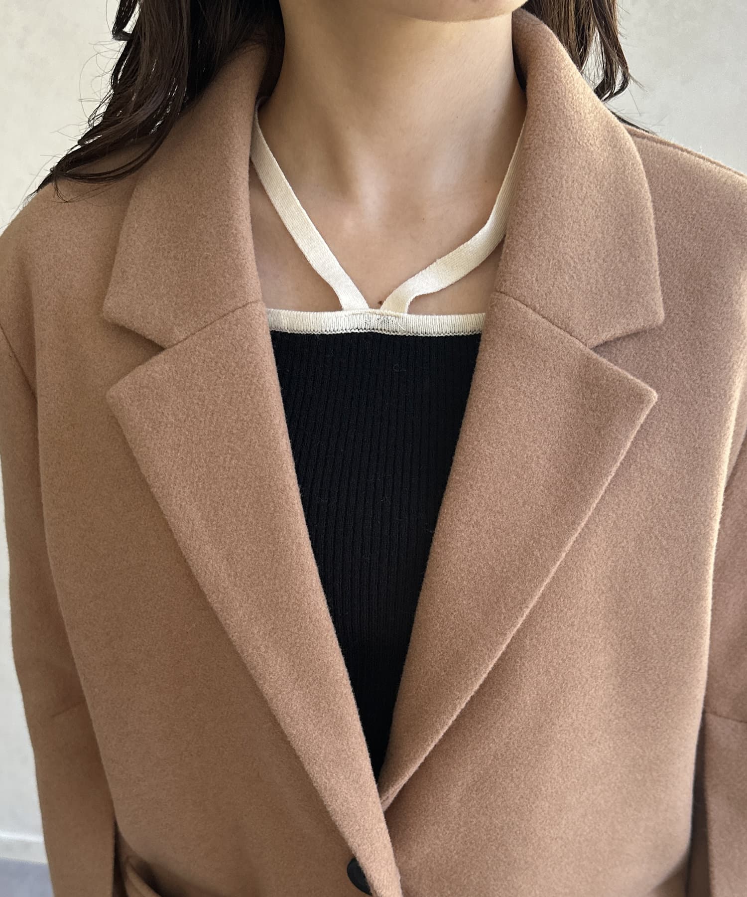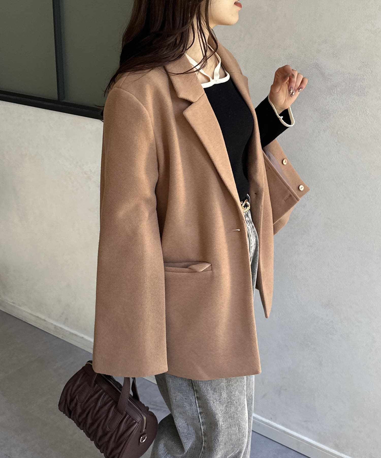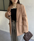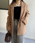袖スリットフェイクウールテーラージャケットベージュ
