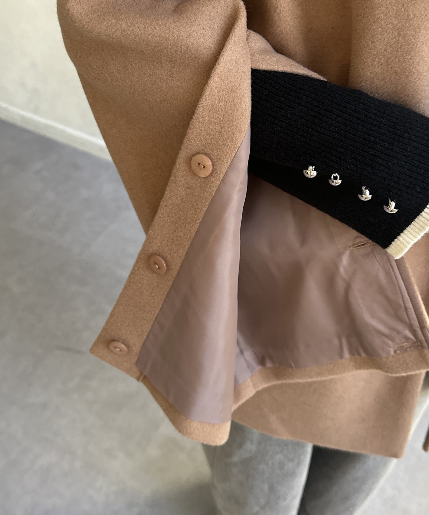 コートで袖にスリットがあるので抜け感があっていいです。閉めてもかわいいです。