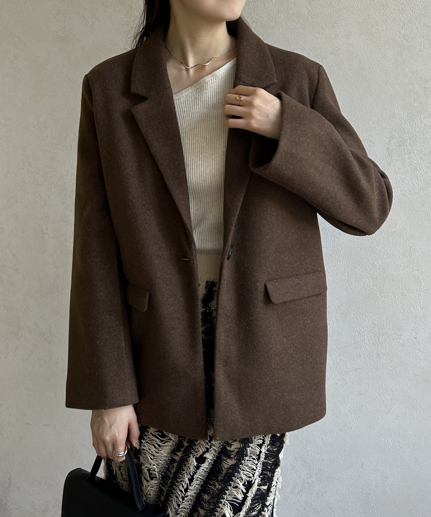 手元に抜け感を出してくれるテーラードジャケット