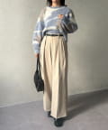 ・ハイウエストのボトムスに前だけインするとスタイルアップ効果も◎