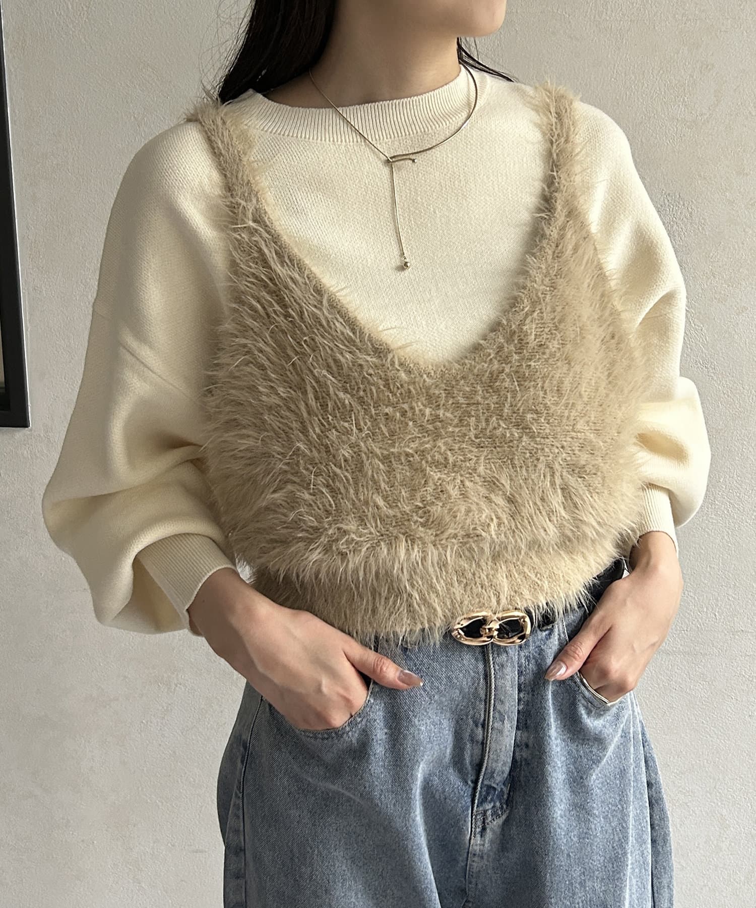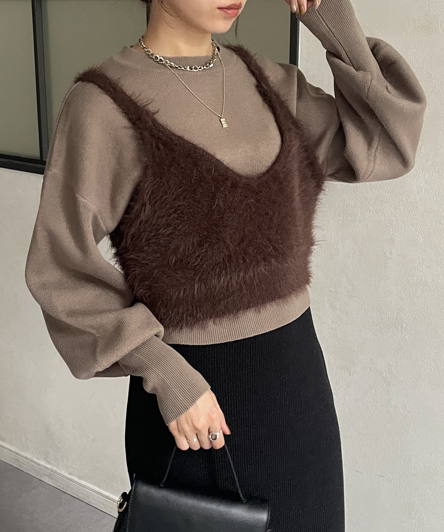 シャギービスチェセットニット