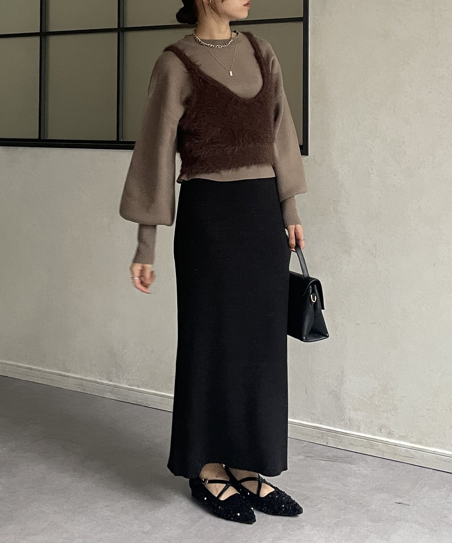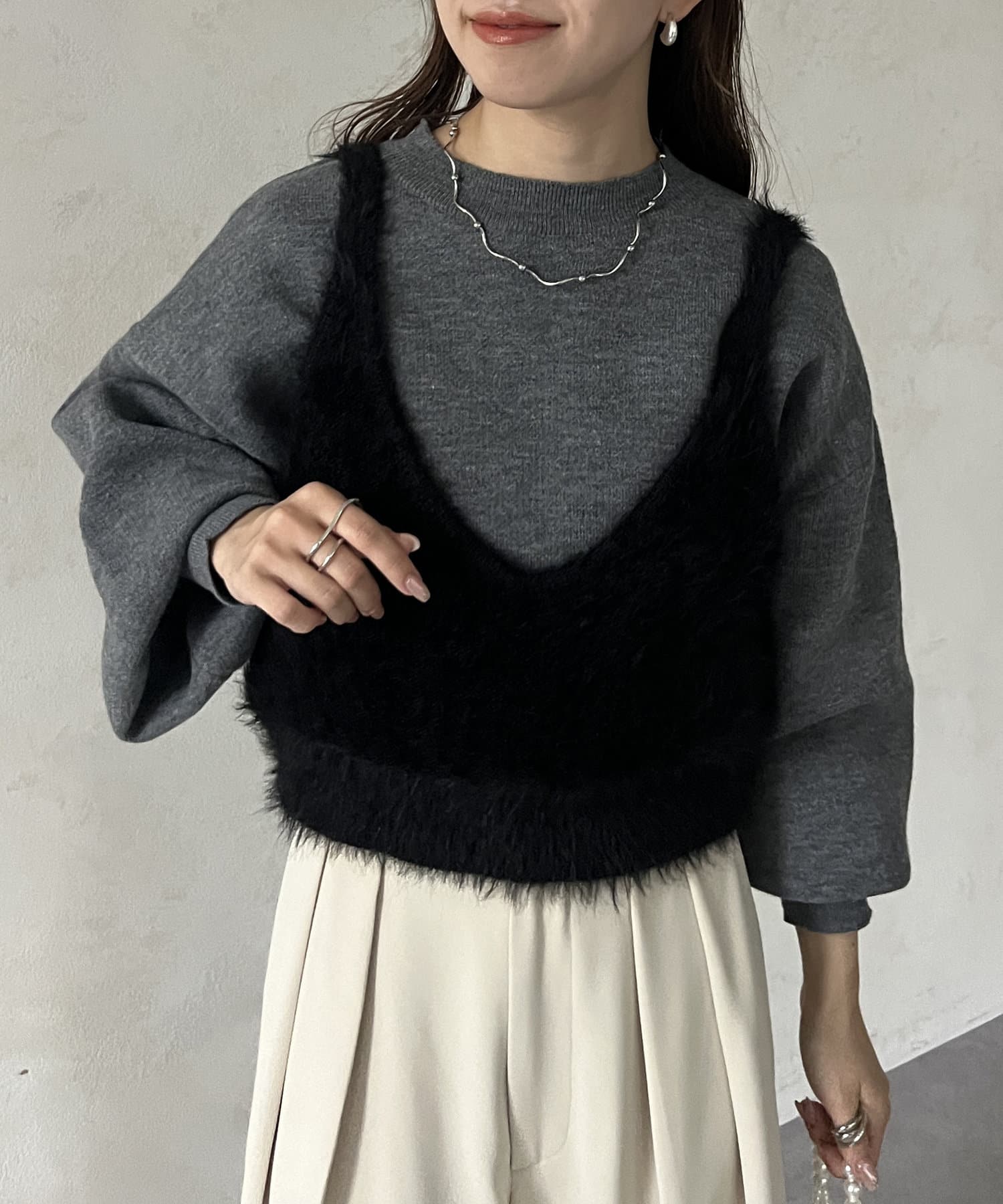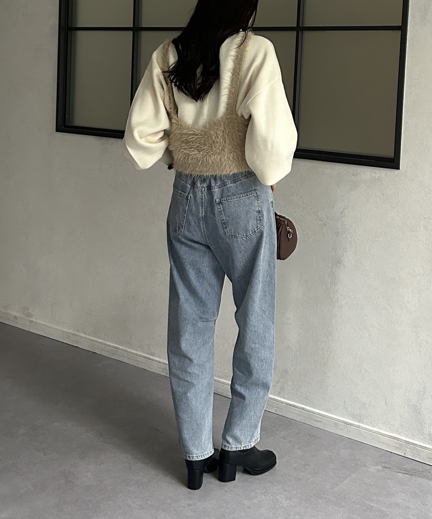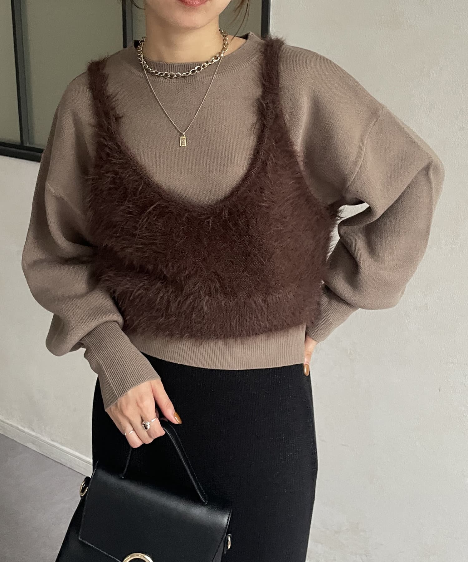 ・ビスチェはふわふわのシャギー素材を使用