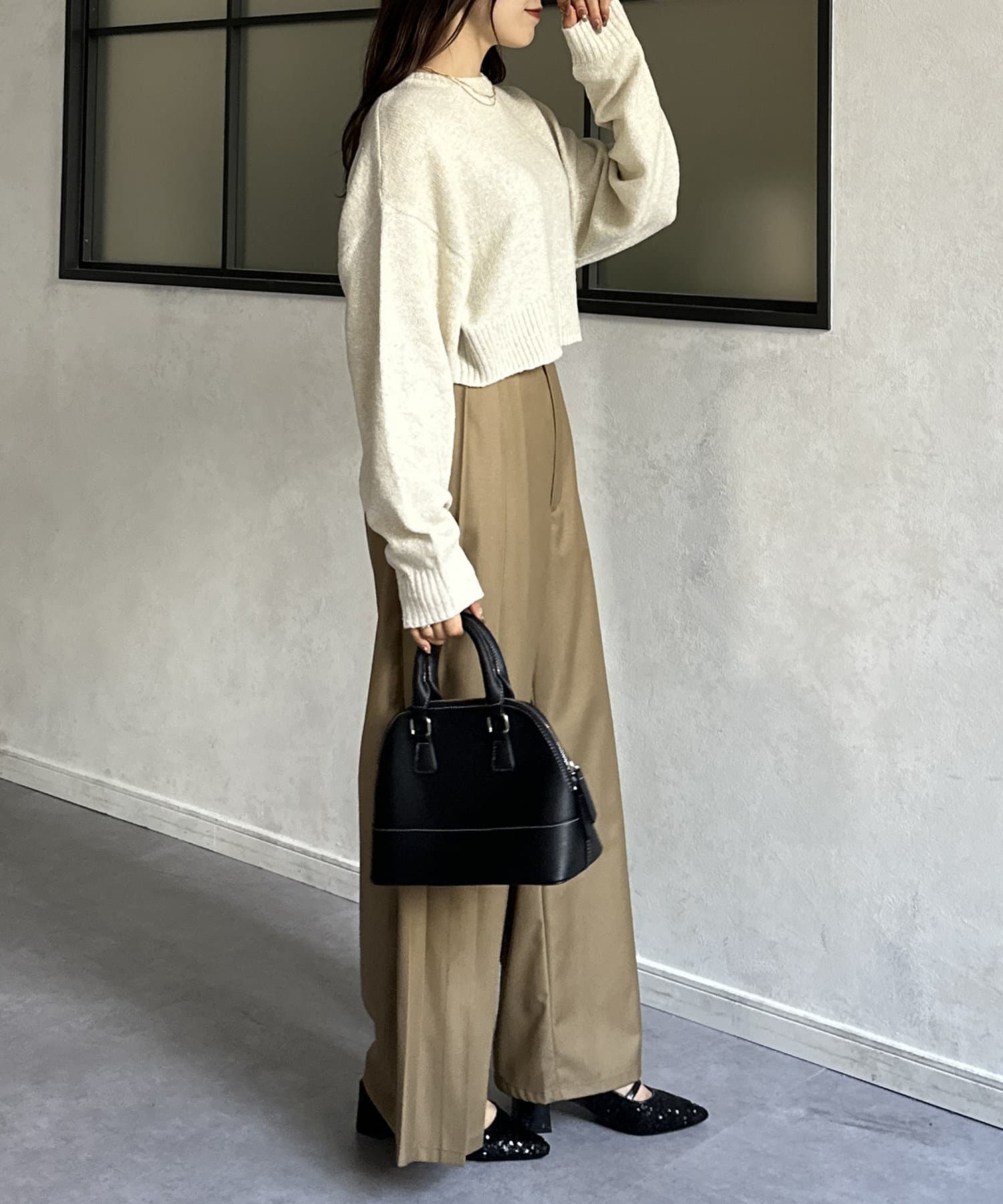 ・ショート丈のトップスはハイウエストのボトムスと相性抜群◎