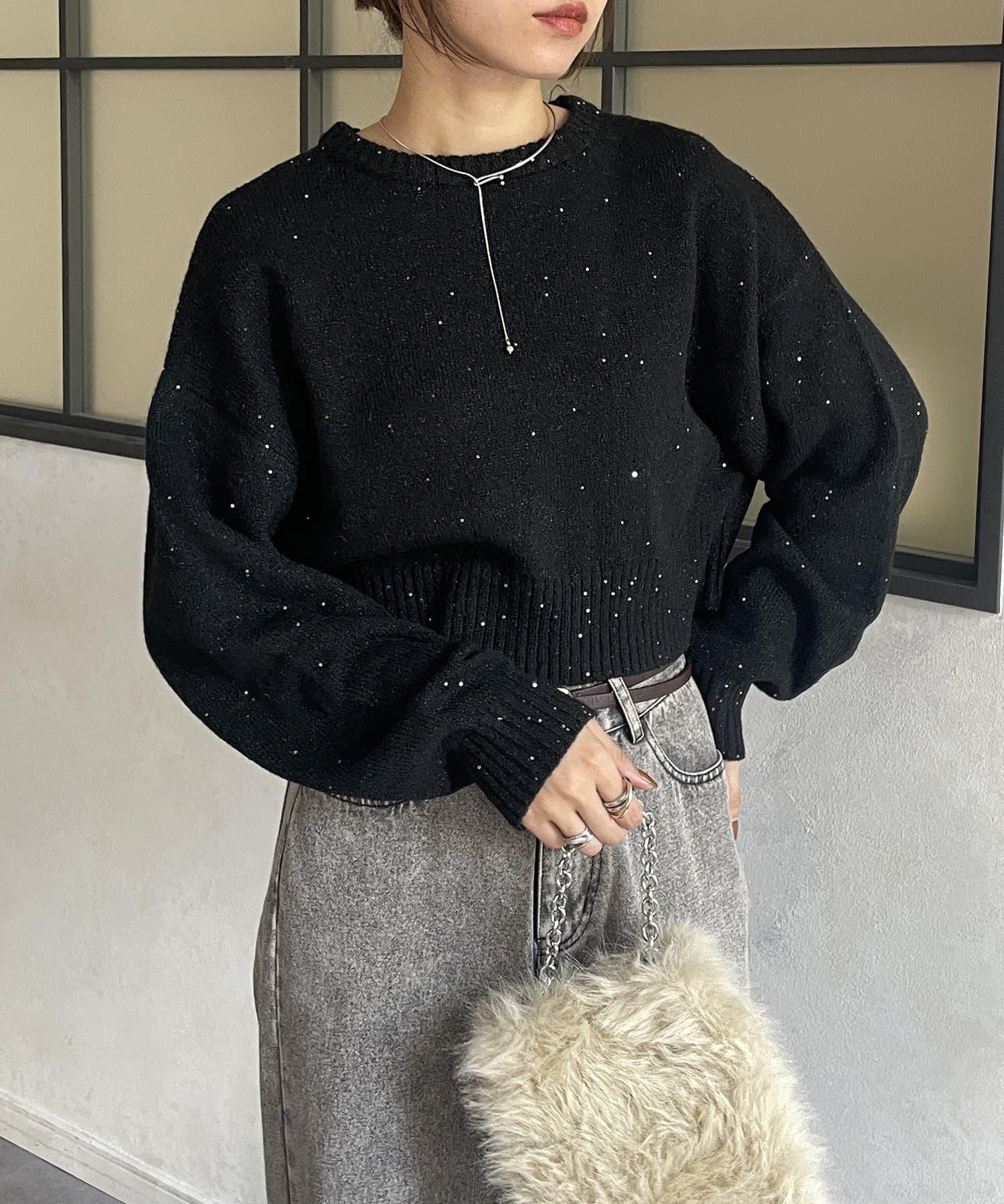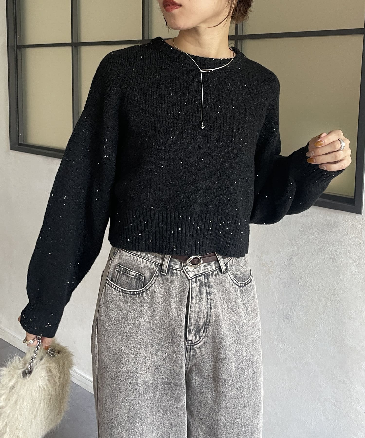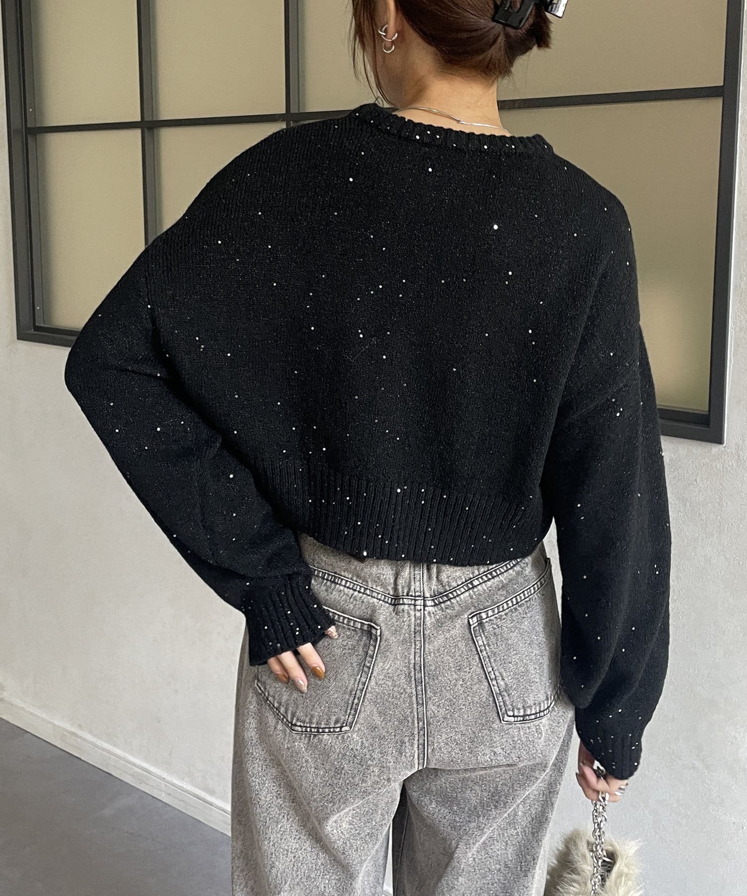 スパンコールショートニット