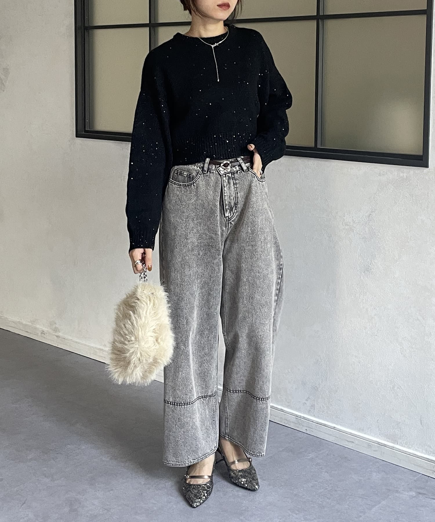 ハイウエストワイドデニム(ブラック)合わせが可愛すぎてヘビロテしそう。