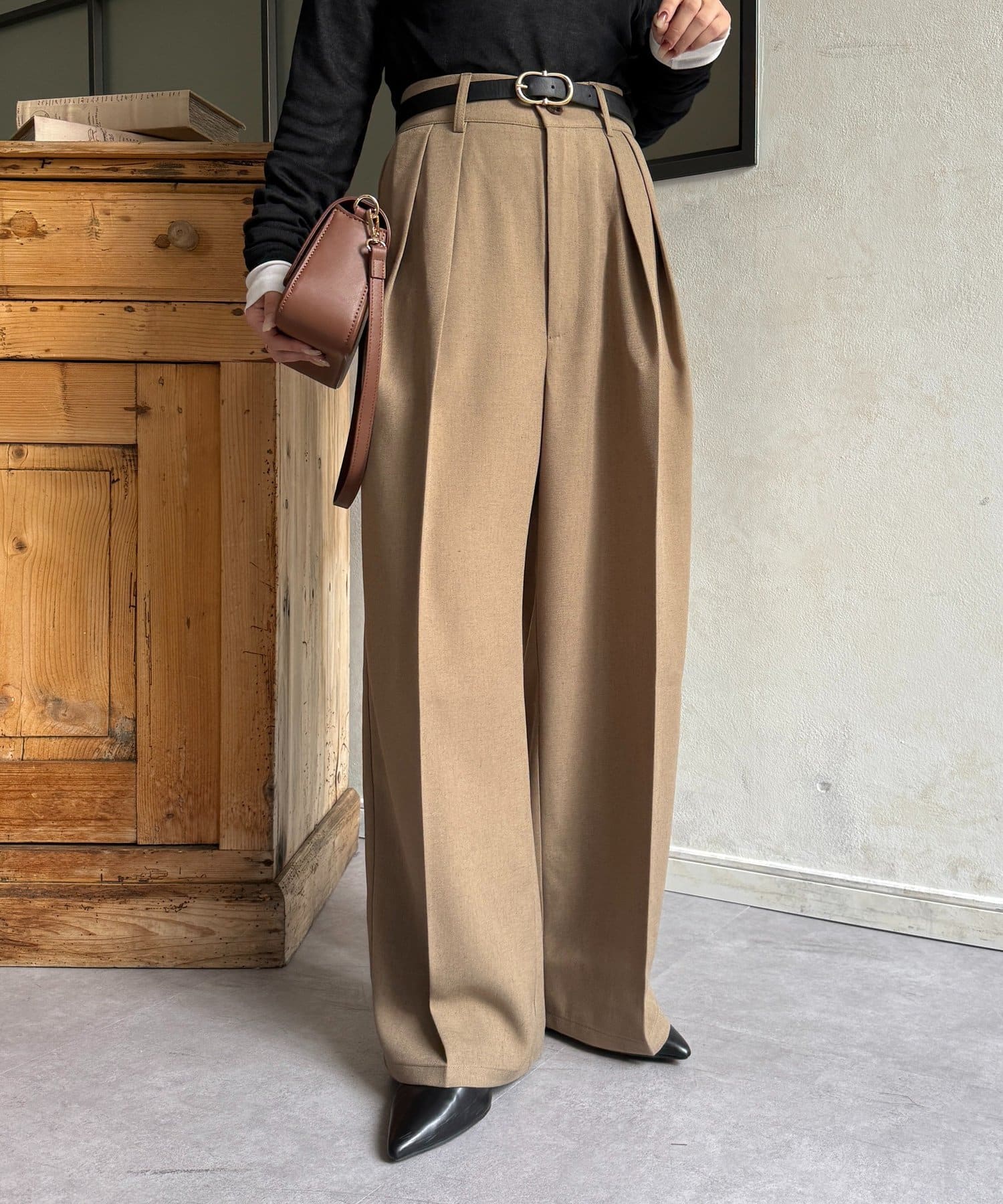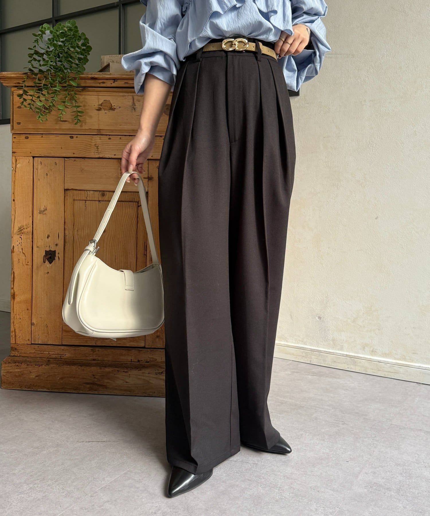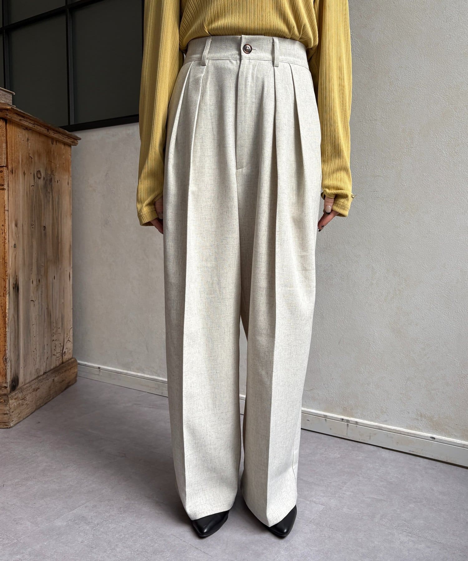 ゆるっと落ち感のあるツータックパンツ