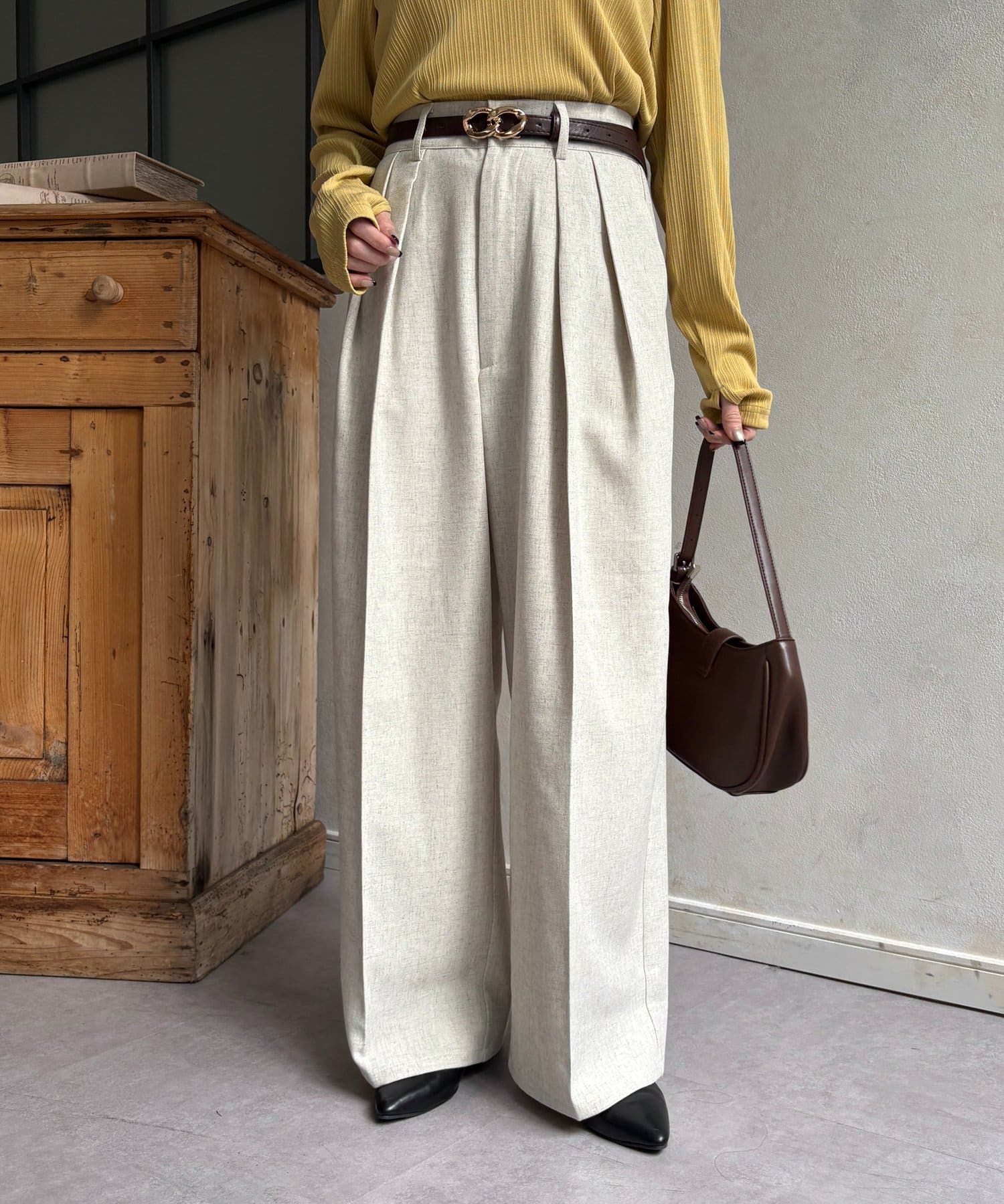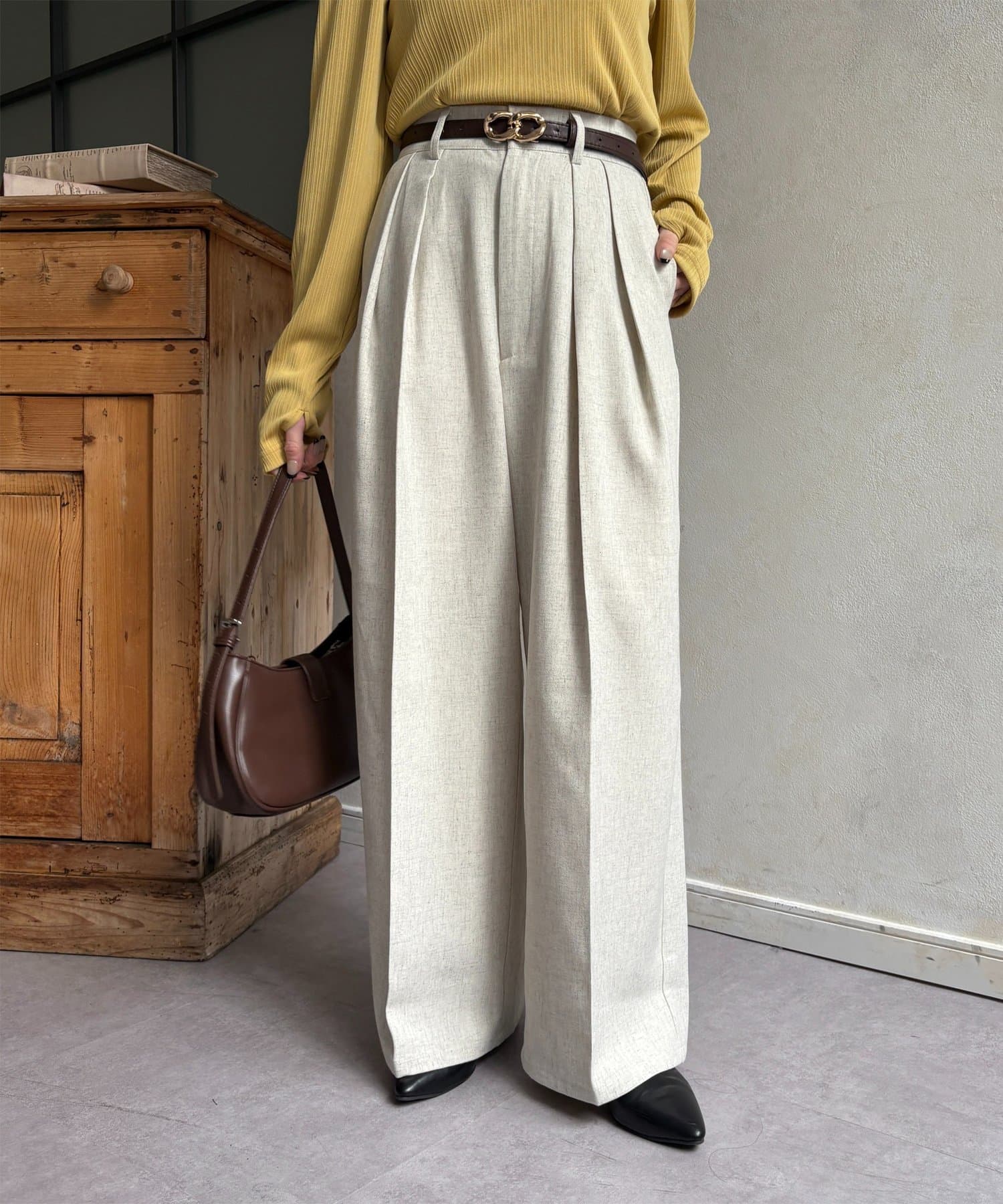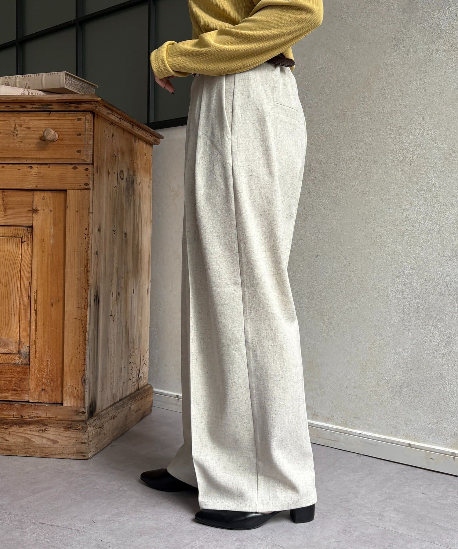 ゆるっと落ち感のあるツータックパンツ