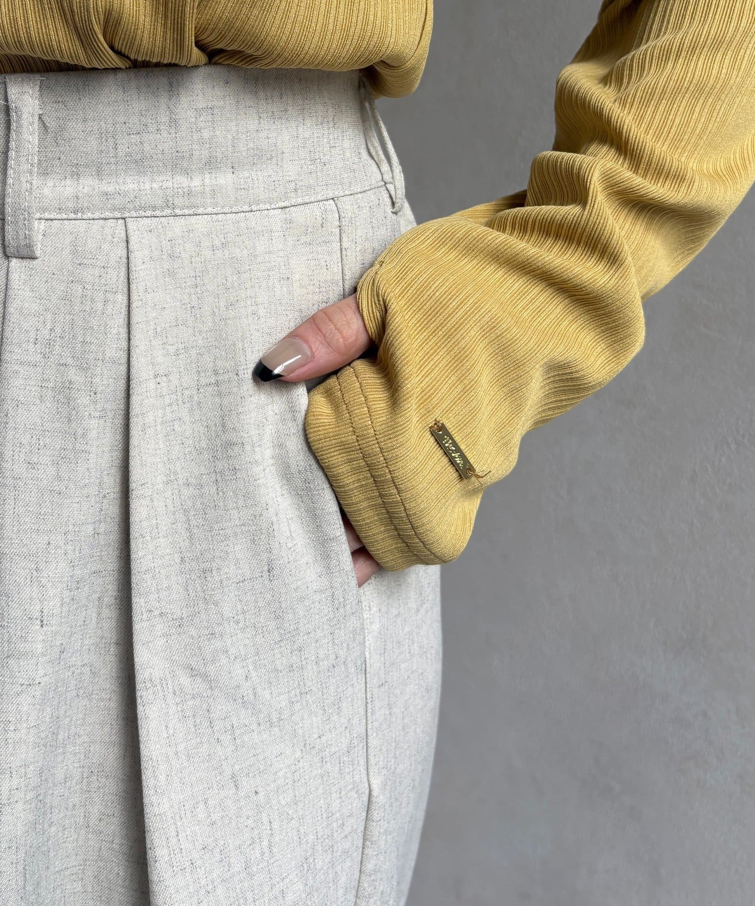 ニットを合わせるとバランスよく着こなしていただけます。