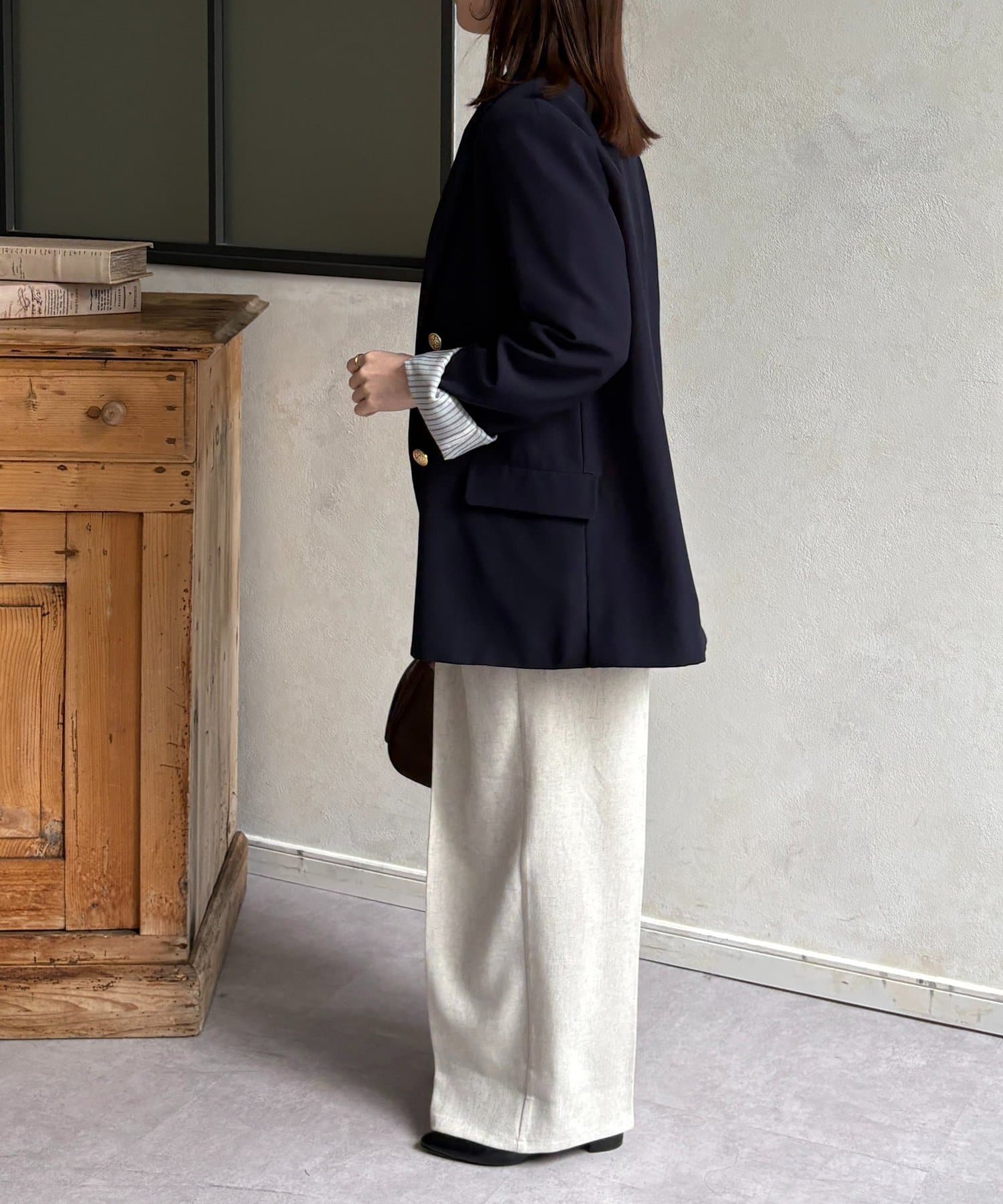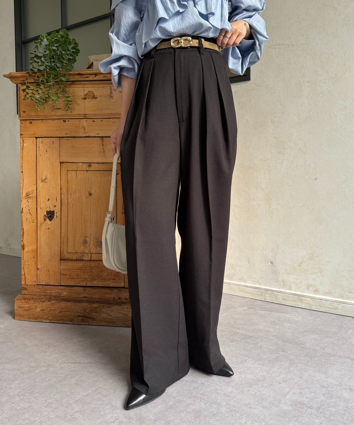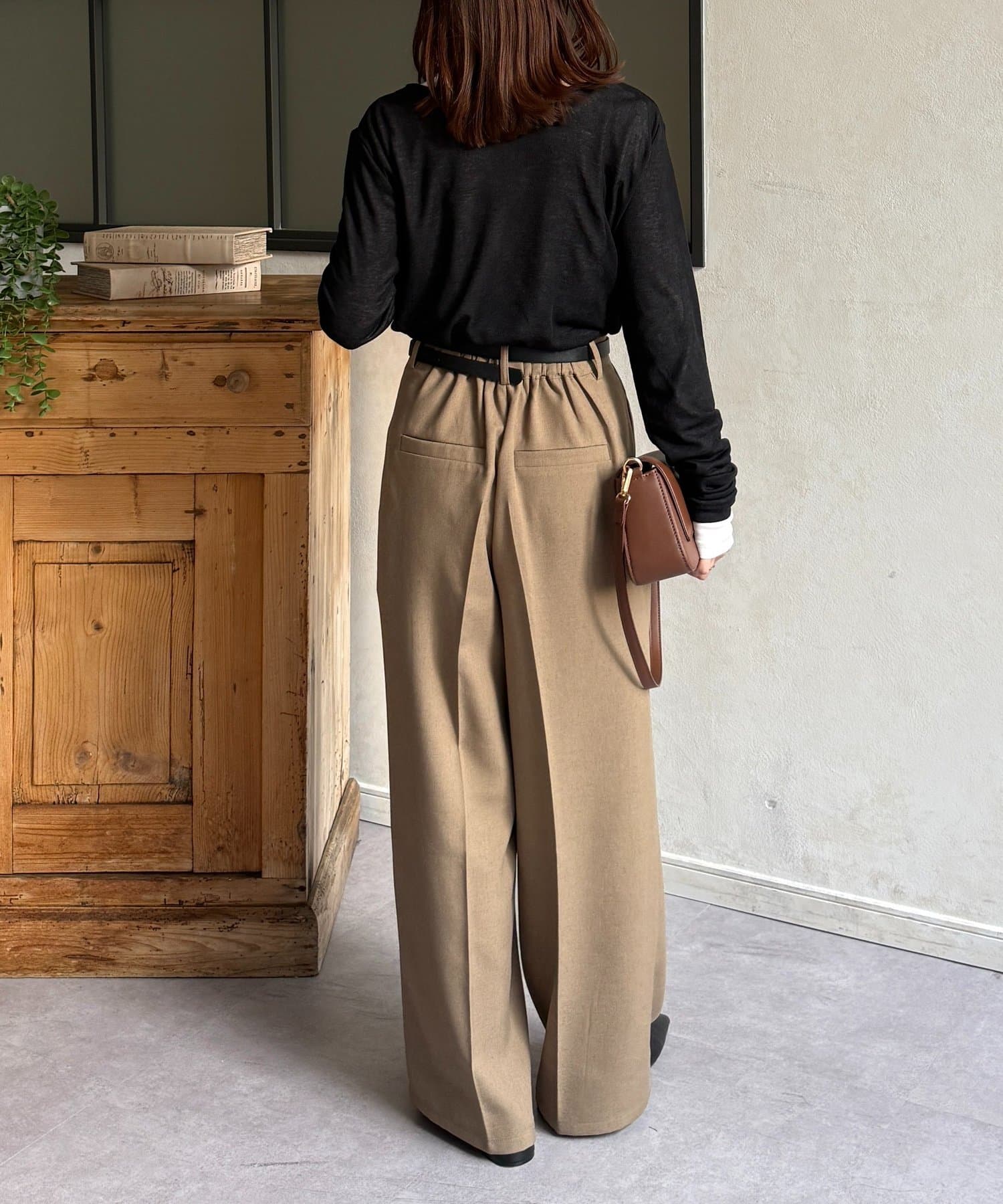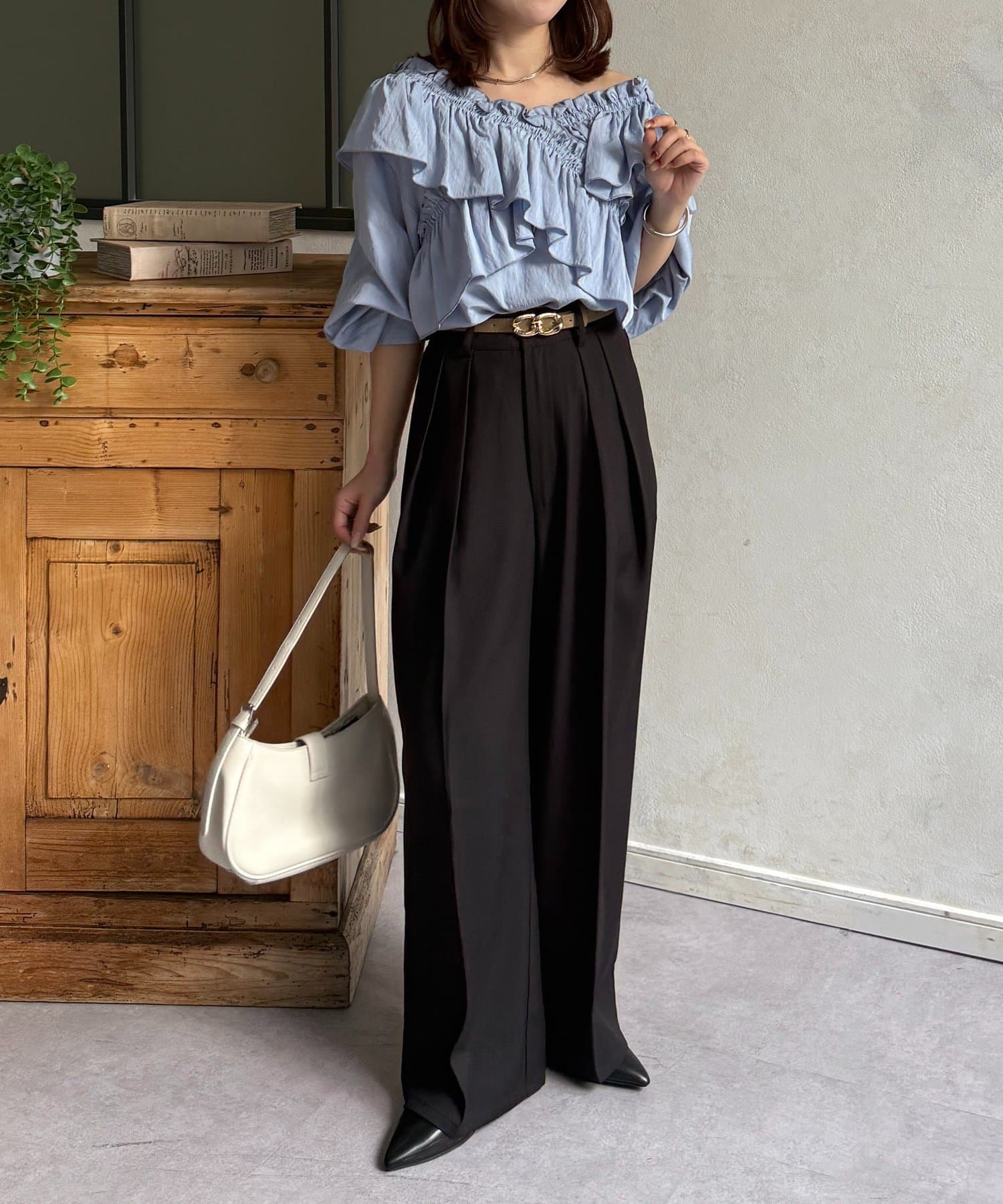 ・ボリューム感のあるパンツなので、トップスはタイトめな