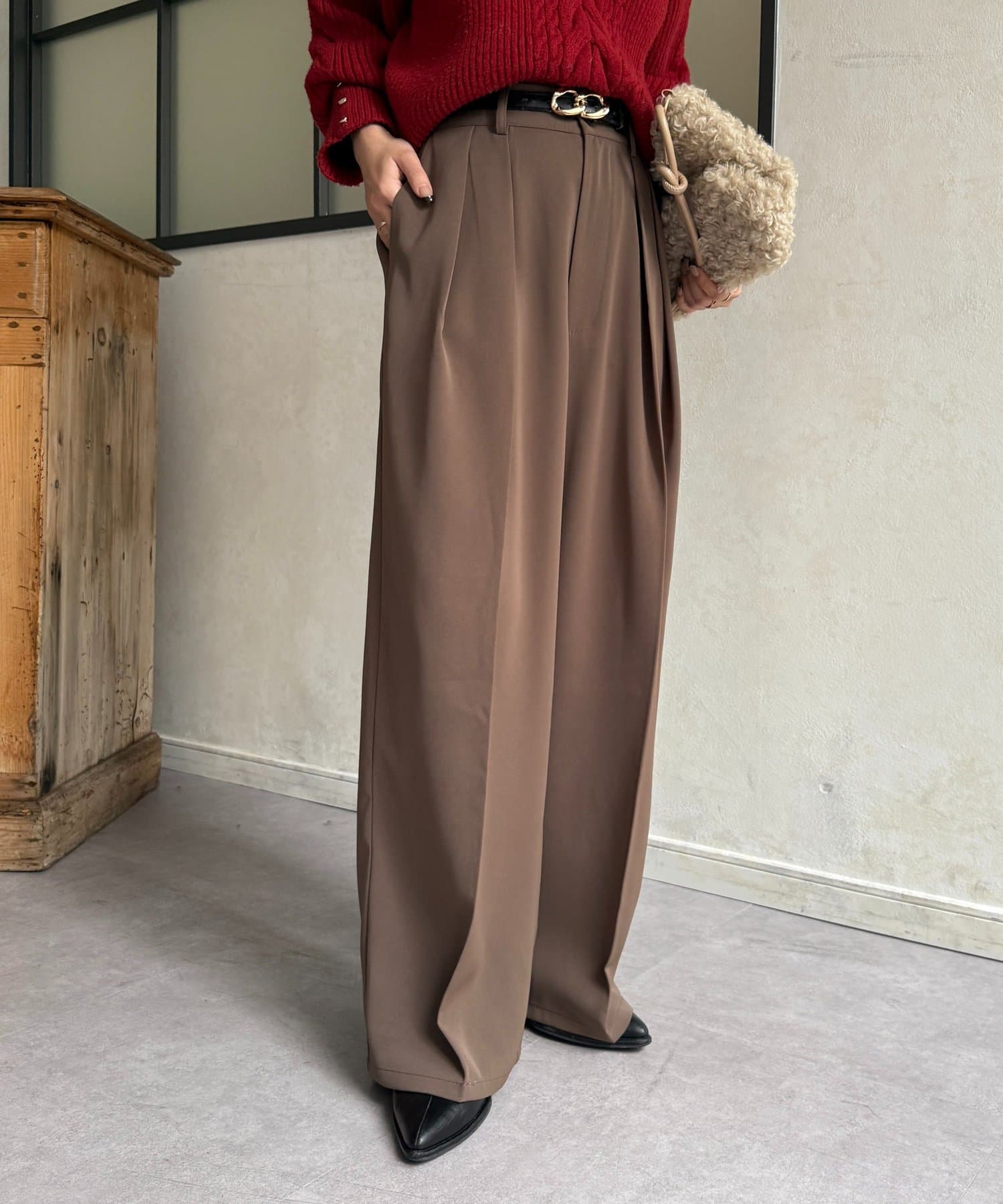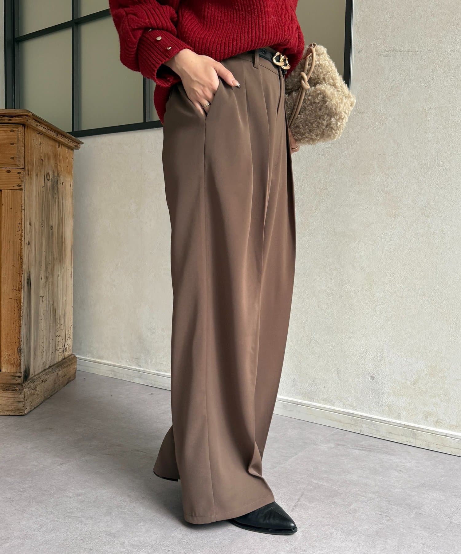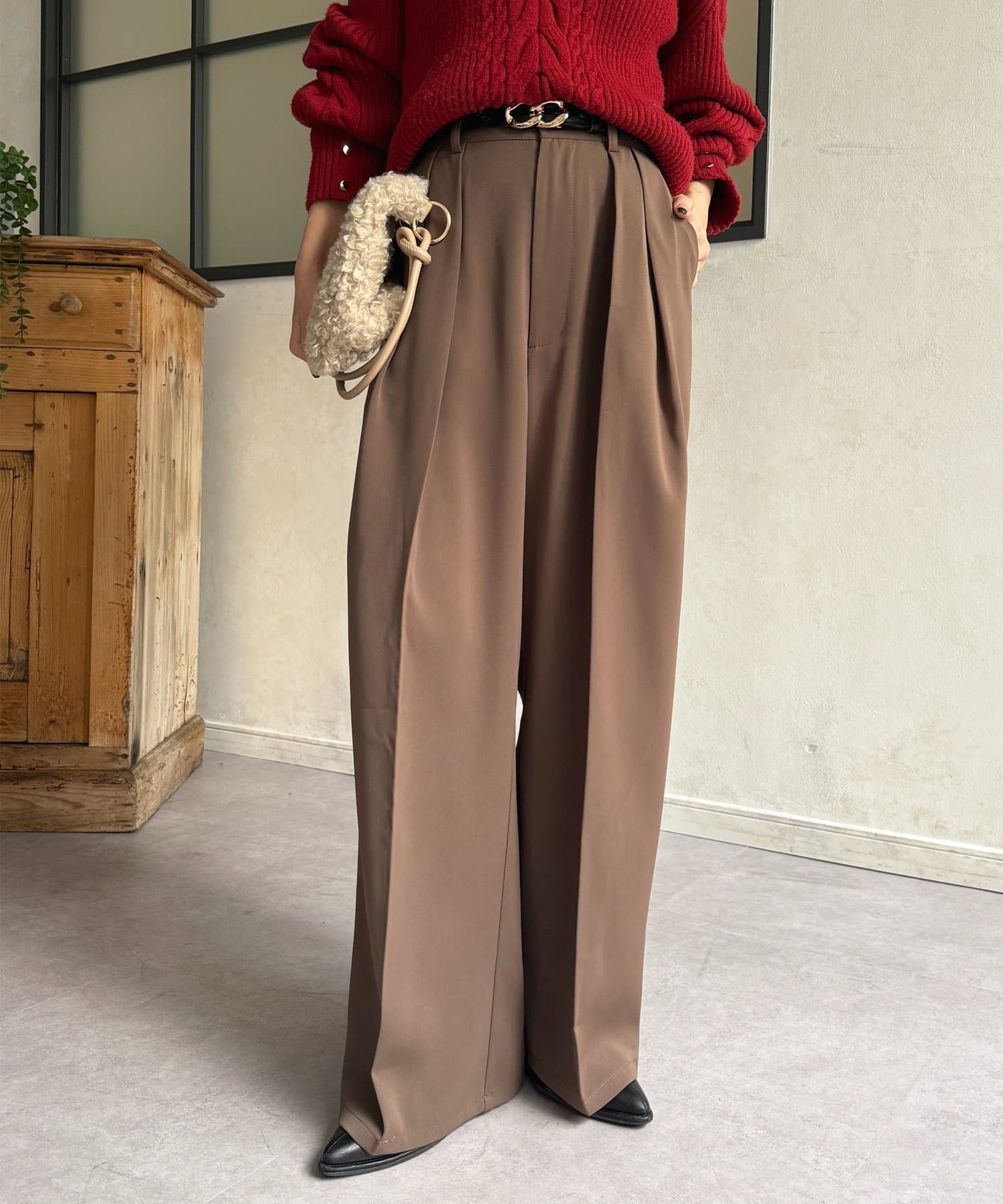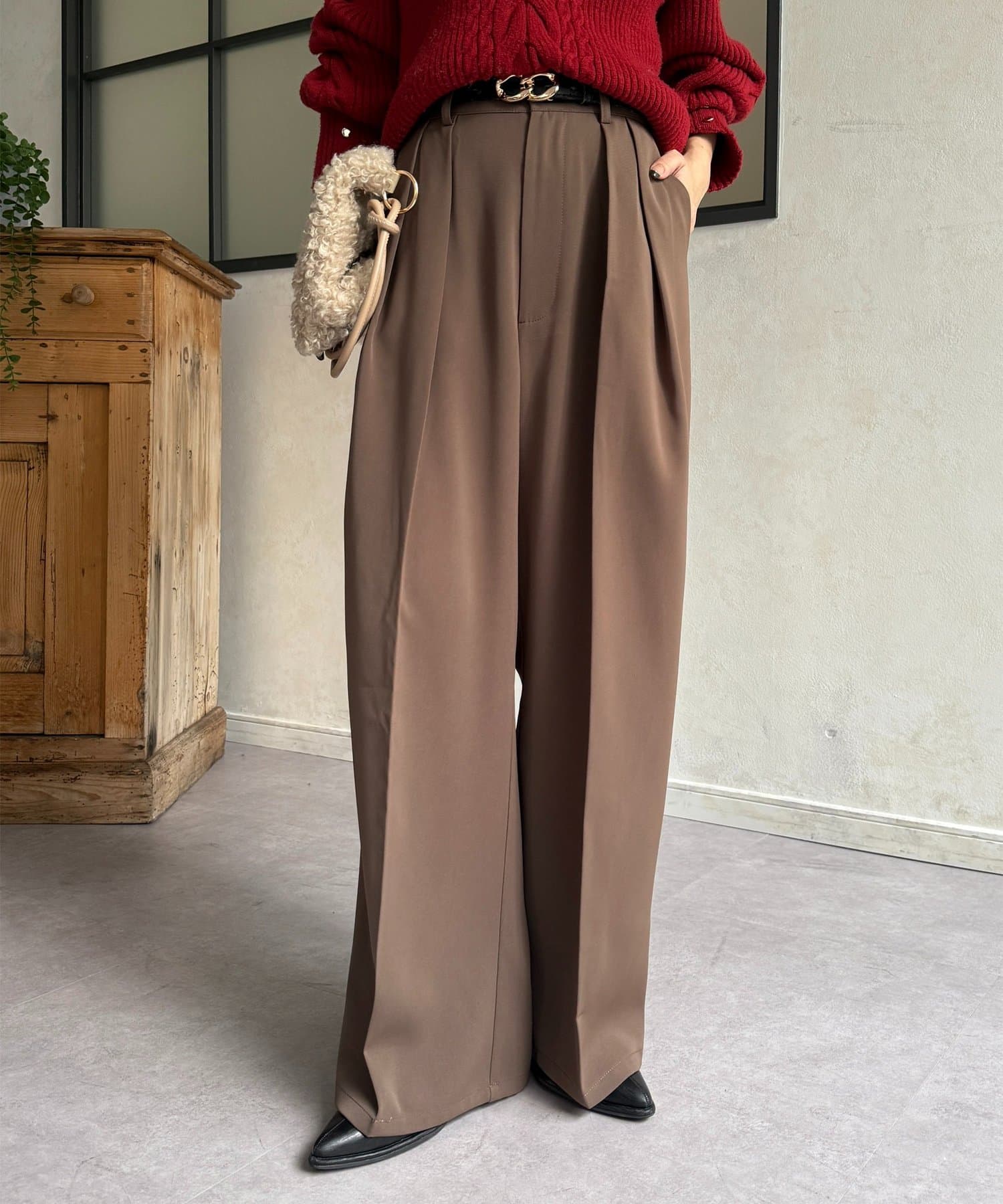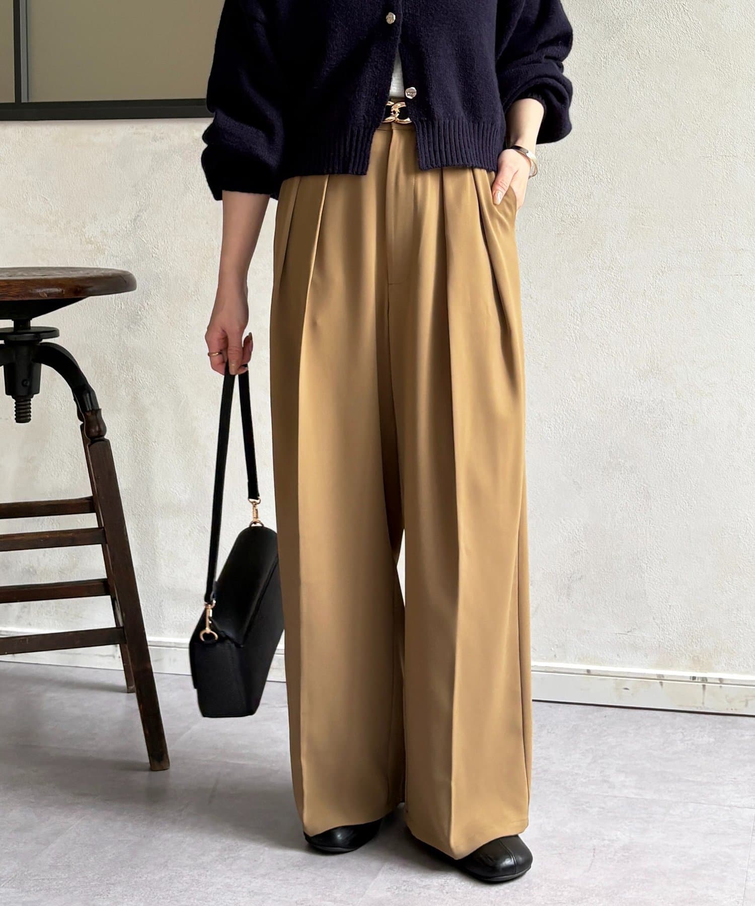 ゆるっと落ち感のあるツータックパンツ