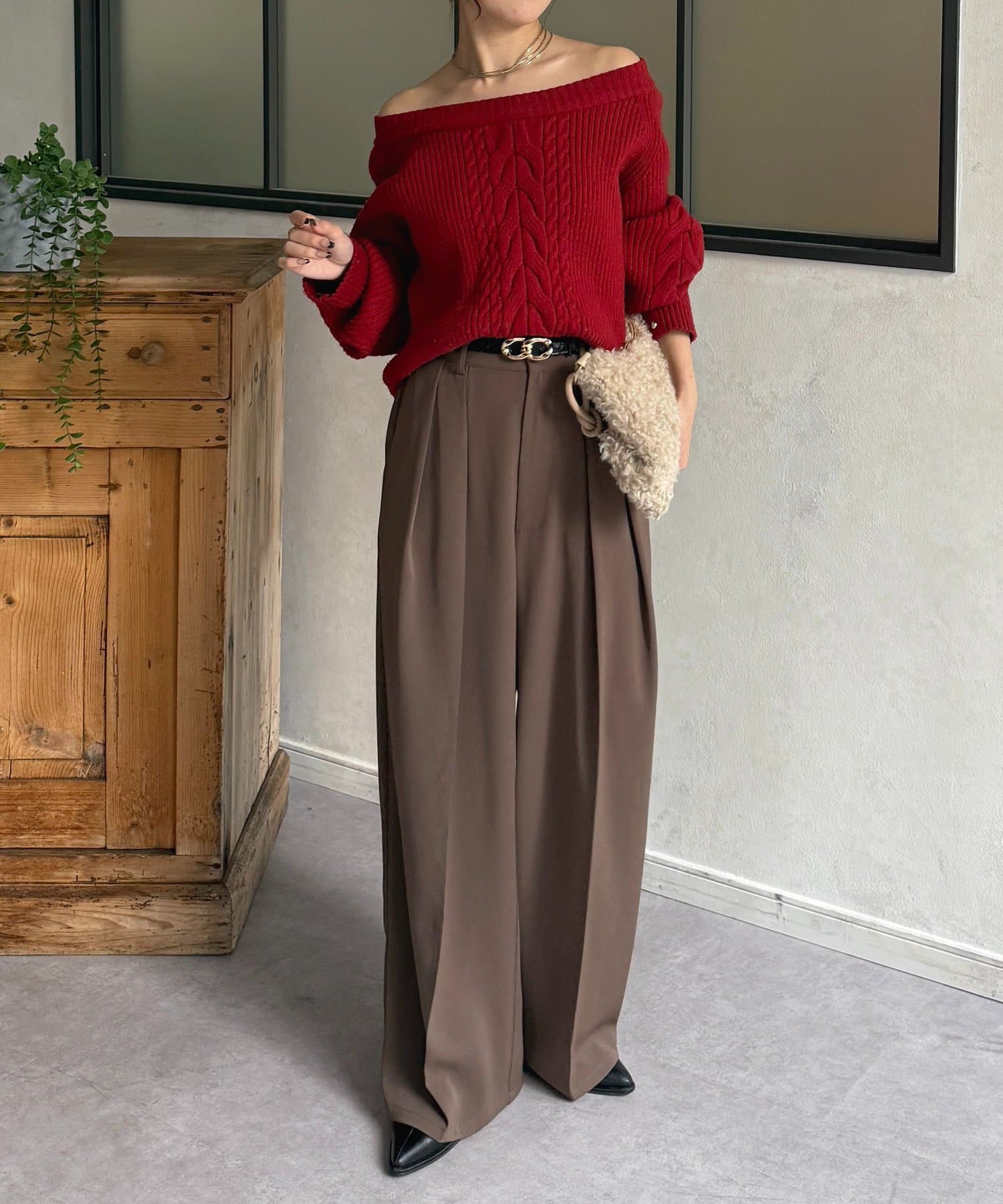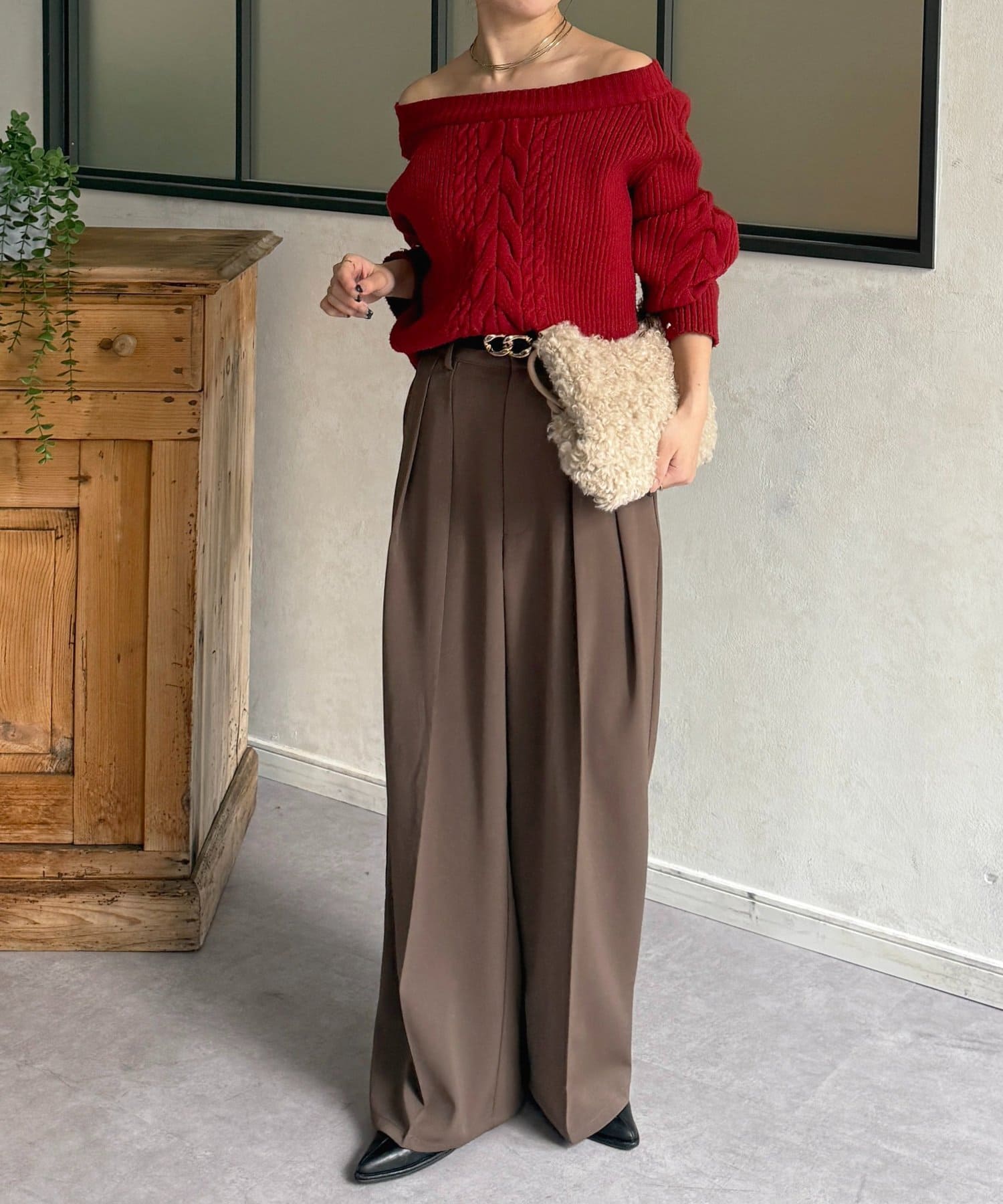 ニットを合わせるとバランスよく着こなしていただけます。