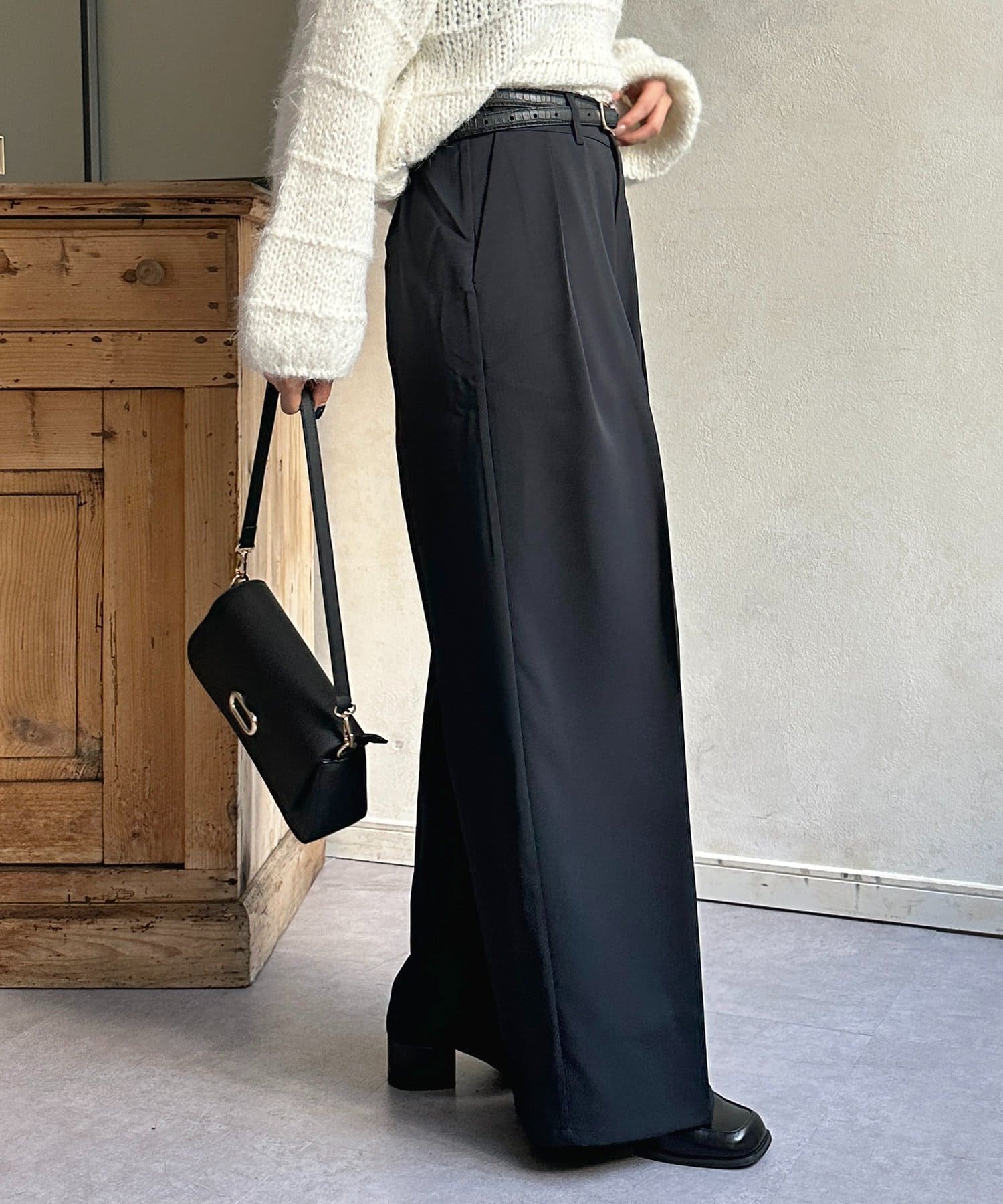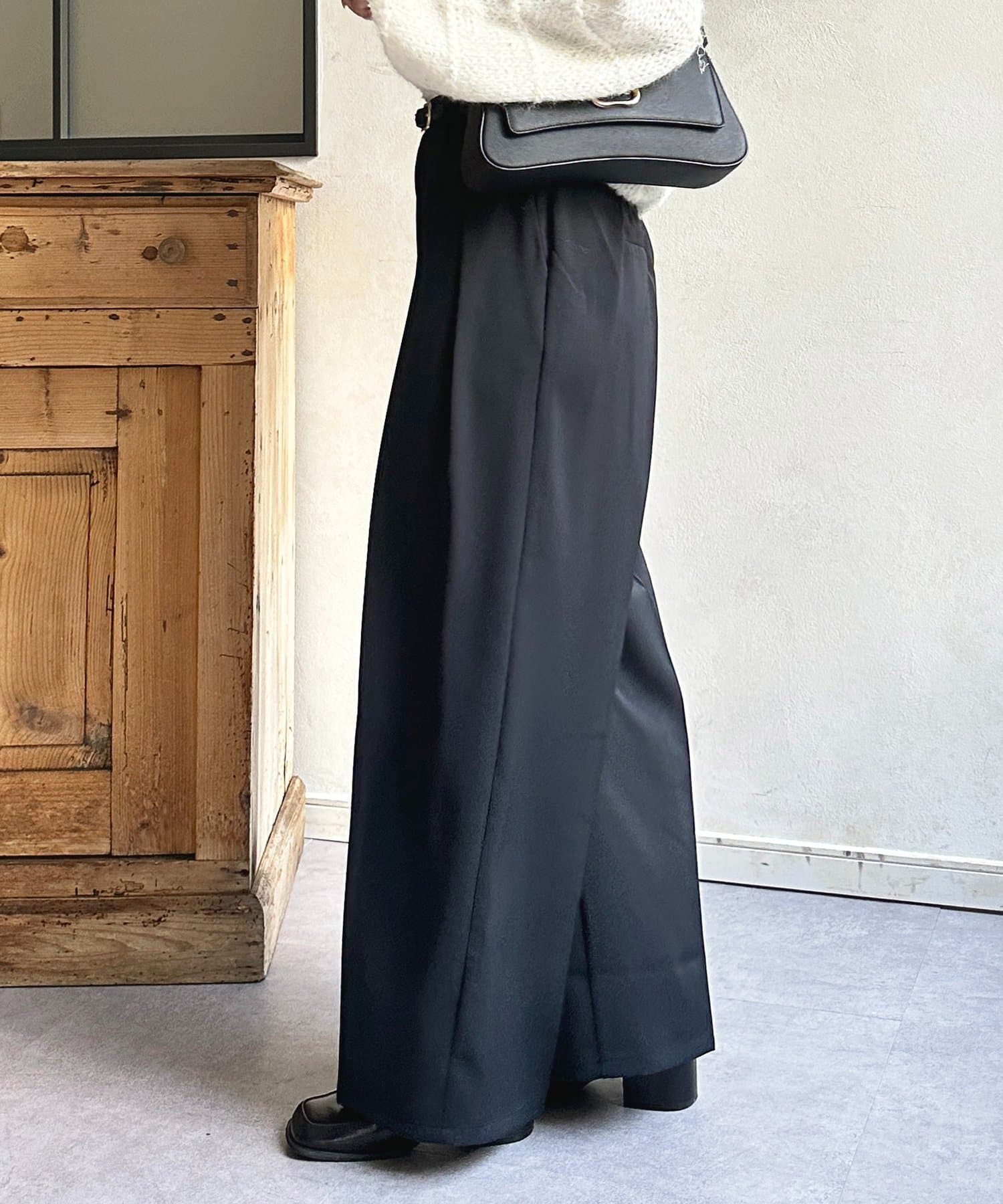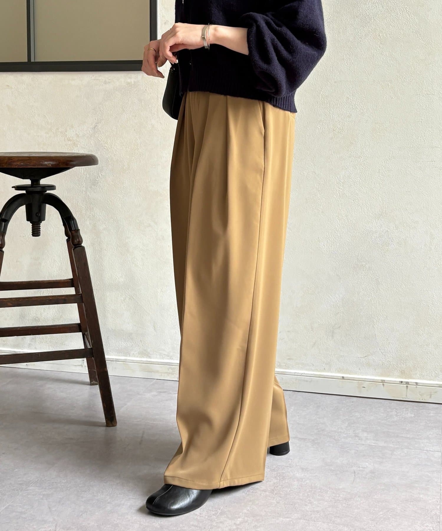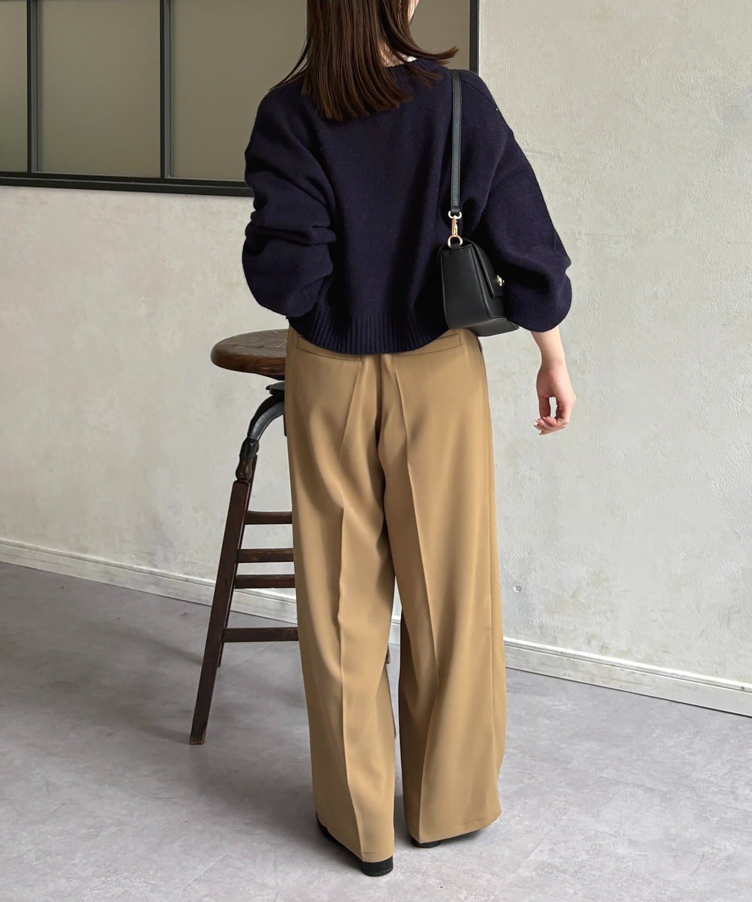 ・ボリューム感のあるパンツなので、トップスはタイトめな